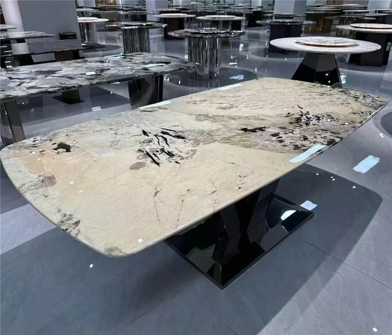 輸入輸出の高級感!輸入天然大理石のエレガントなダイニングテーブル&チェアセット。現代的なデザインで、別荘や家庭にぴったりのラグジュアリーな雰囲気を演出します。贅沢なひとときをお楽しみください!