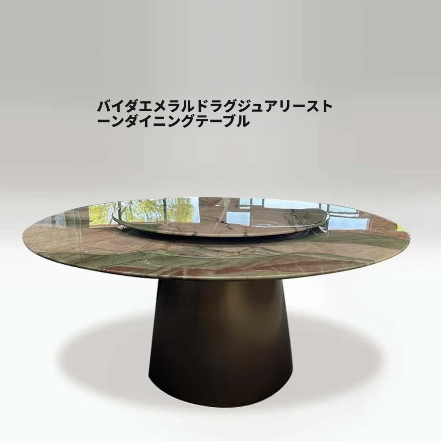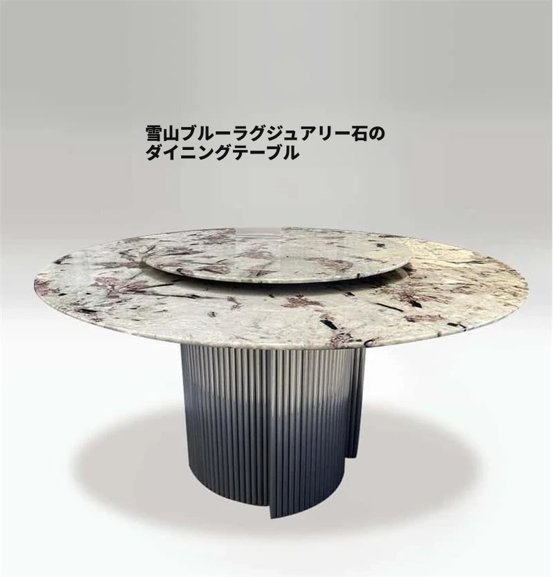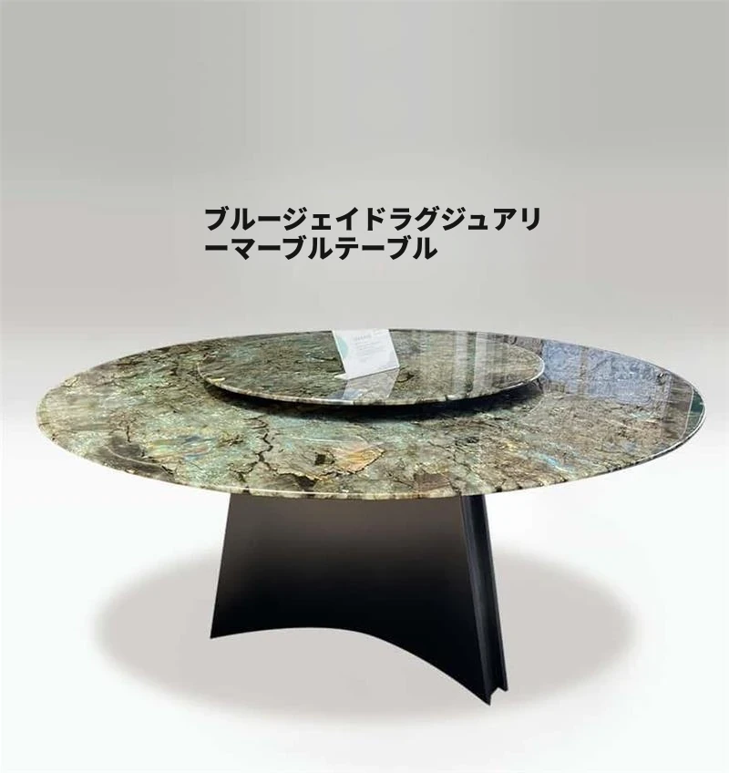 高級ホテルラウンジ向け 輸入天然大理石ラウンドダイニングテーブル 軽やかなブルージェードの豪華なデザイン モダンでシンプルな高級ヴィラに最適!