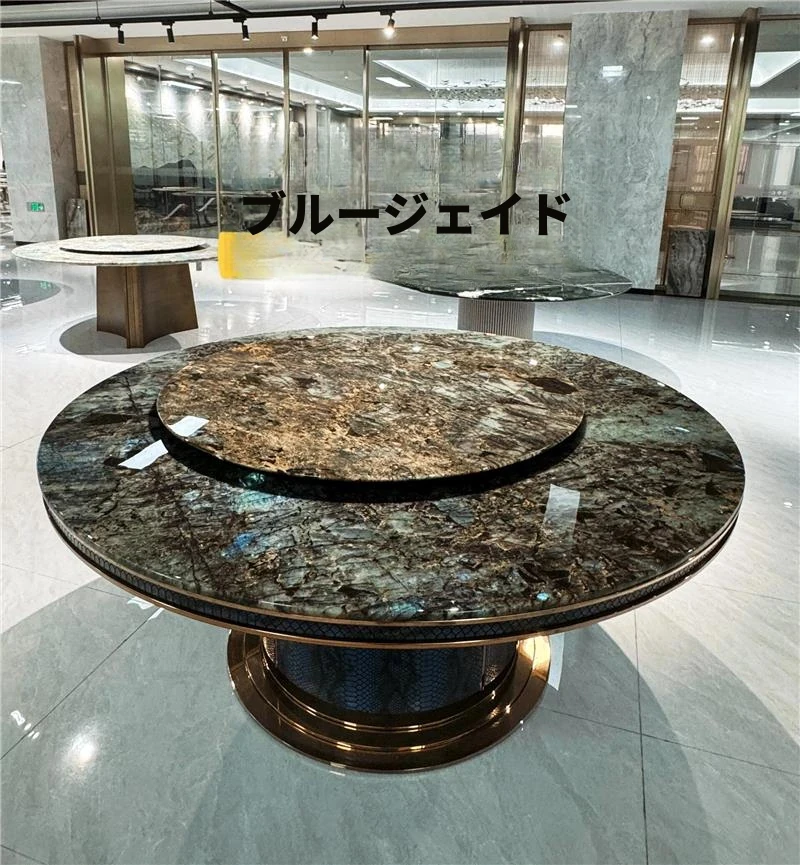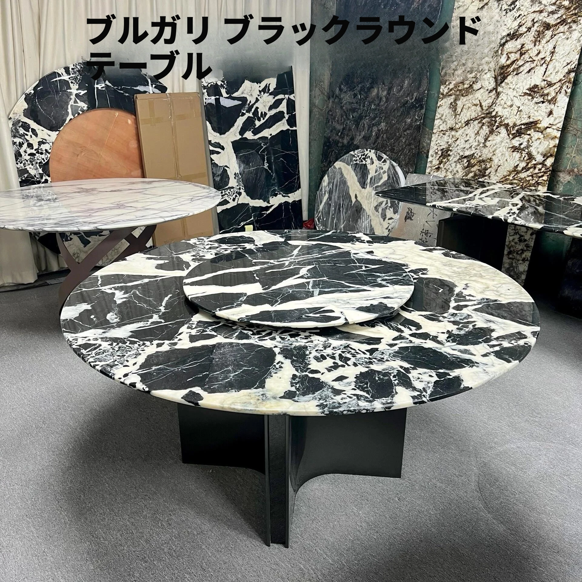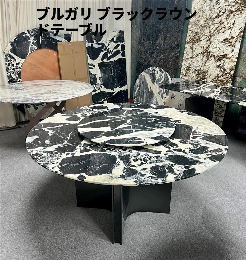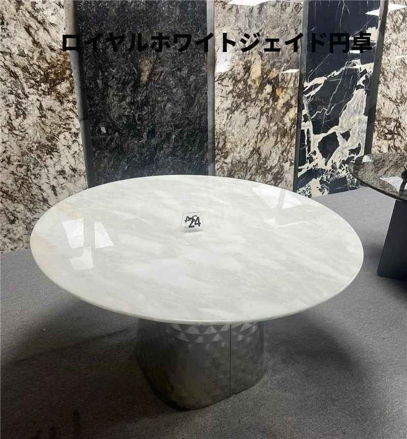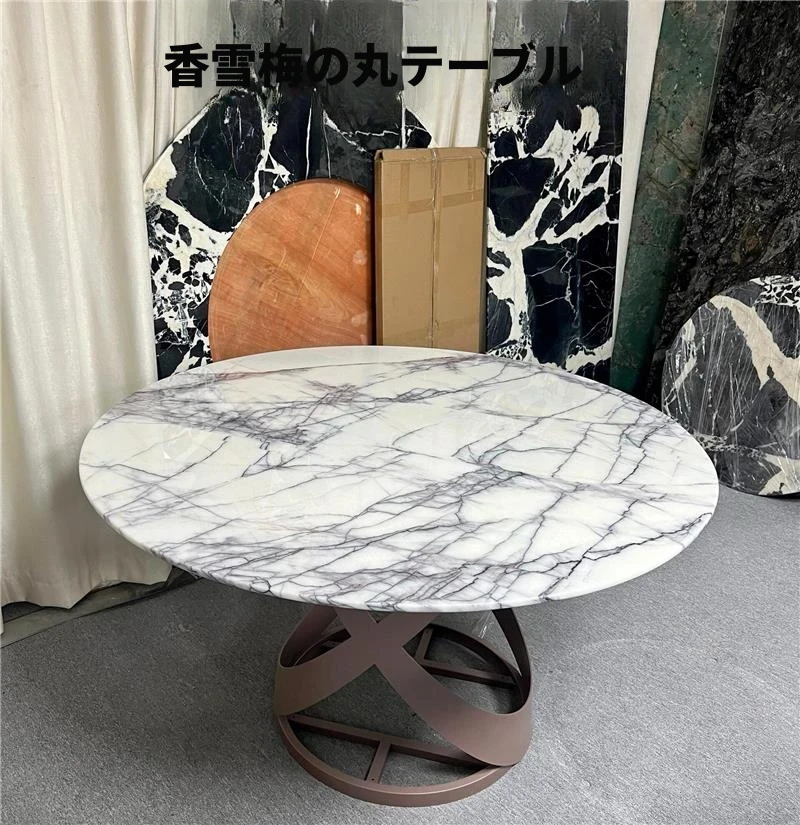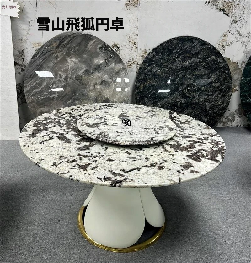 輸入天然大理石のラウンドダイニングテーブル - ラグジュアリーな雪山飛狐デザイン、モダンな別荘に最適な大サイズ家庭用テーブル!上質な素材と洗練されたスタイルで、特別な食事のひとときを演出します。