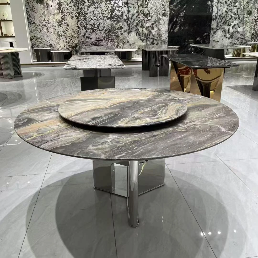 高級イタリアンデザインの天然大理石ダイニングテーブル - モダンなラグジュアリー感溢れるシンプルな円形テーブル、豪邸や別荘にぴったりの洗練された一品!
