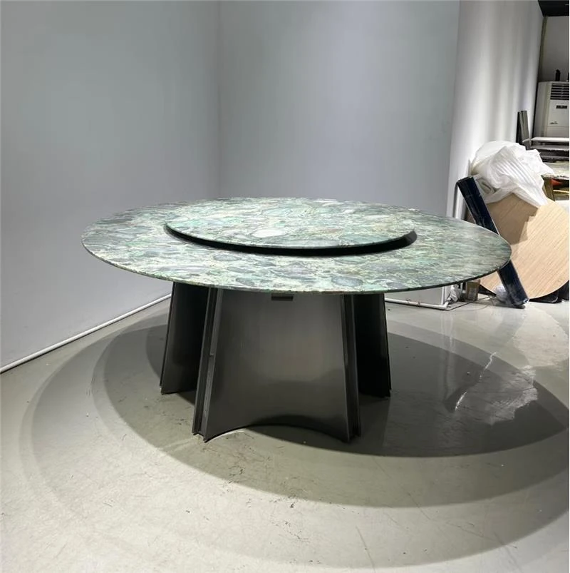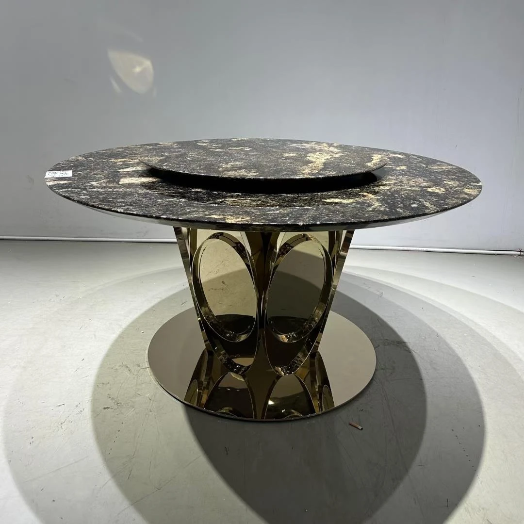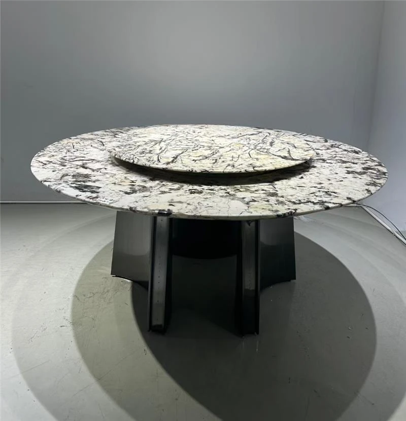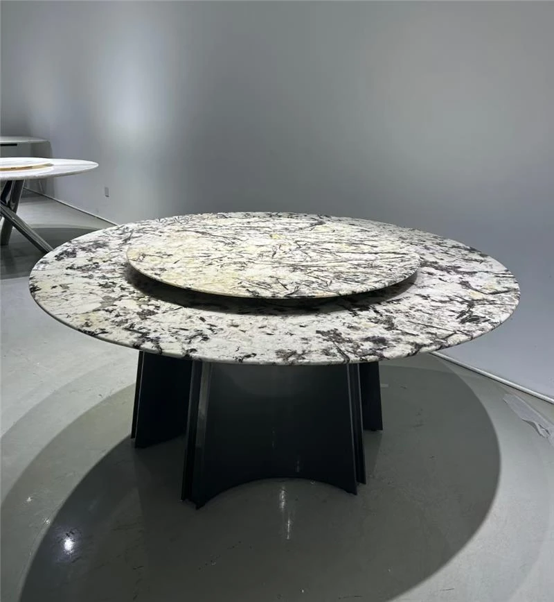 豪華イタリアンスタイルの天然大理石使用!モダンで洗練された高級ラウンドダイニングテーブル、回転式プレート付きで使い勝手抜群!あなたの空間を一層引き立てるアイテムです。