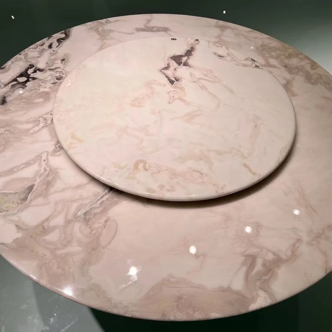 高級イタリアンスタイルの天然大理石ダイニングテーブル - モダンなミニマリストデザイン、別荘にもぴったりなラグジュアリーな円形テーブル!あなたの食卓を一新する特別な一品。