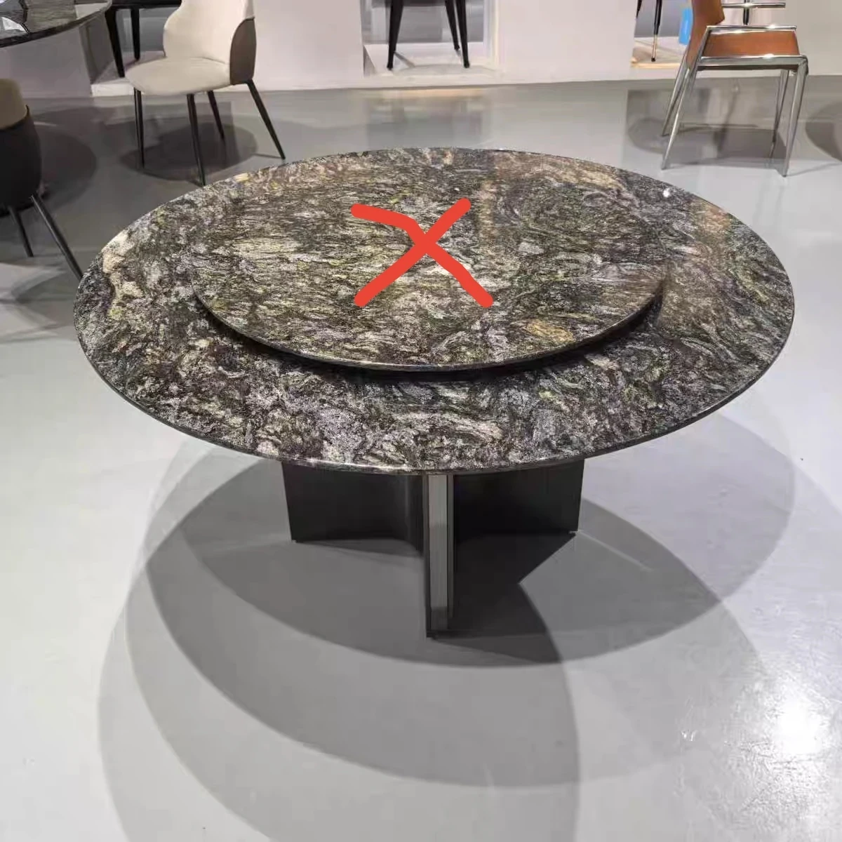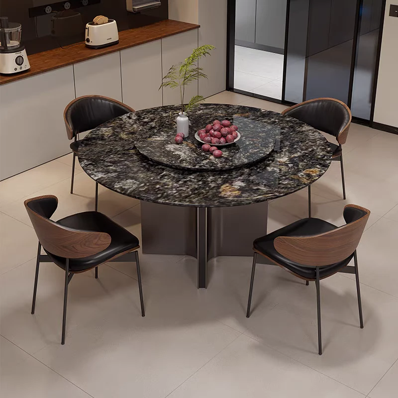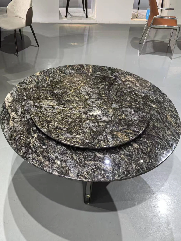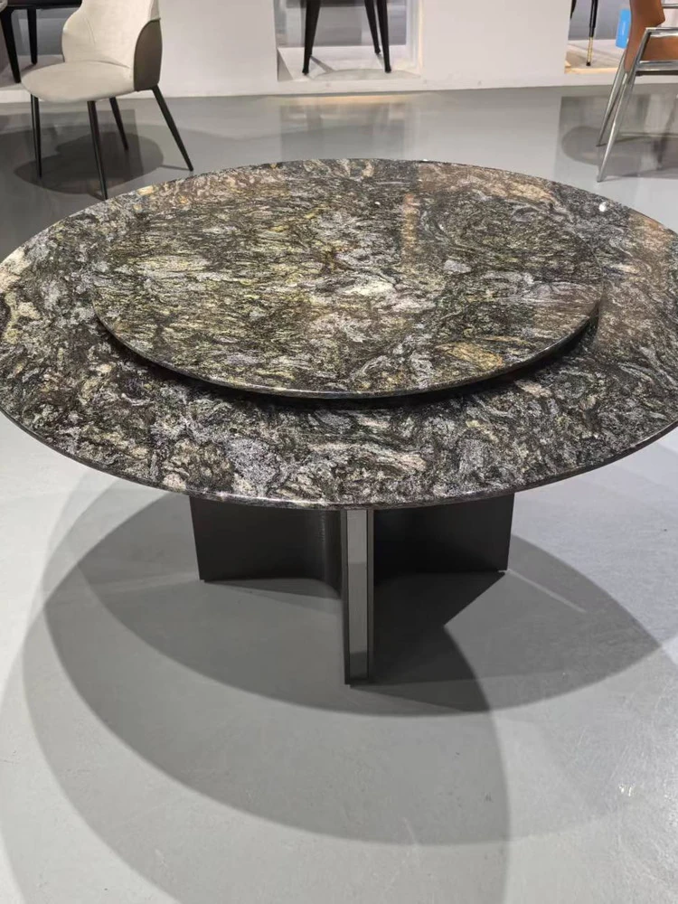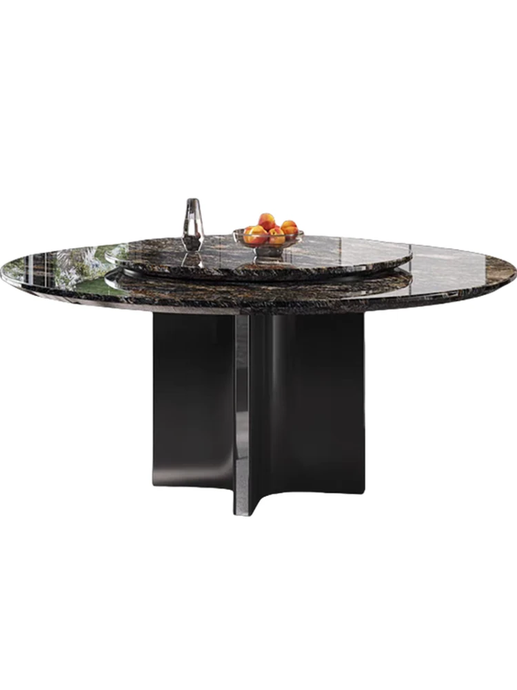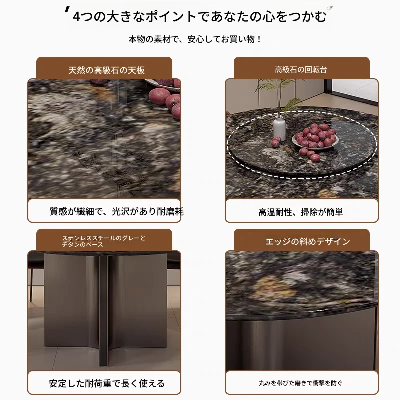 高級イタリアンミニマリズム プラチナダイヤモンド天然石ラウンドダイニングテーブル - モダンでシンプルな高級感漂うブラックラウンドテーブル。洗練されたデザインで、特別なひとときを演出します。