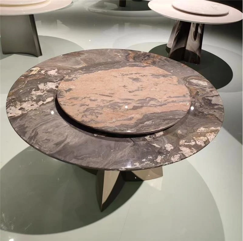 豪華イタリアン・ラグジュアリー食卓セット!ヴィラや広々としたフラットにぴったりな大理石製の高級ラウンドテーブル。洗練されたデザインで、特別なひとときを演出します。