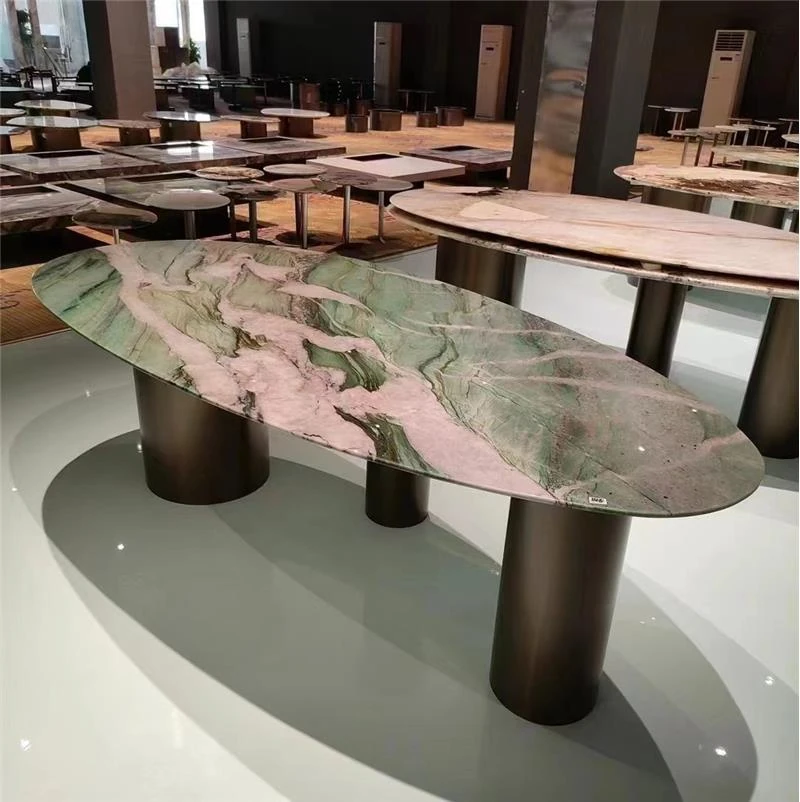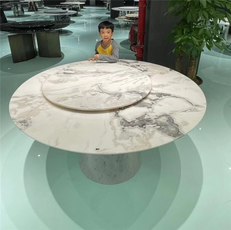 豪華イタリアンスタイルの軽奢華ダイニングテーブル&チェアセット - ヴィラや広々とした空間にぴったりの大理石ラウンドテーブル、デザイナーズ高級家具で特別なひとときを演出!