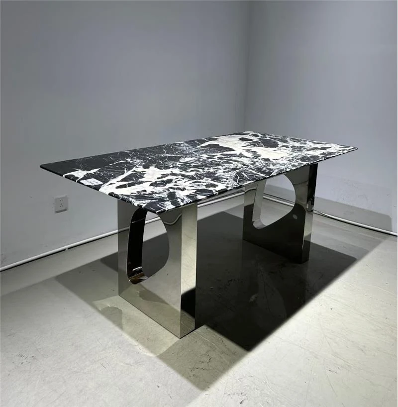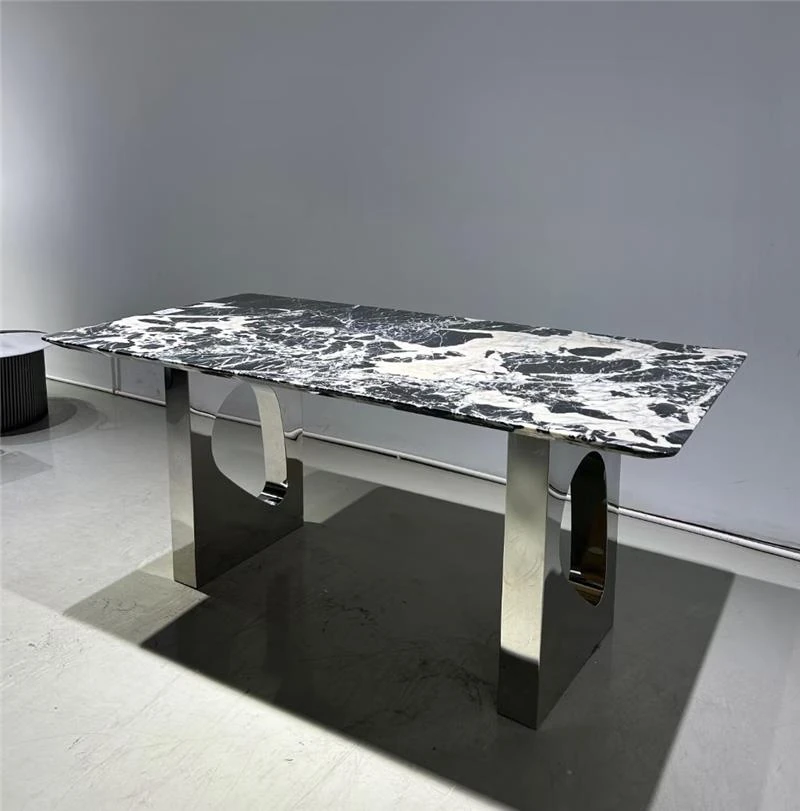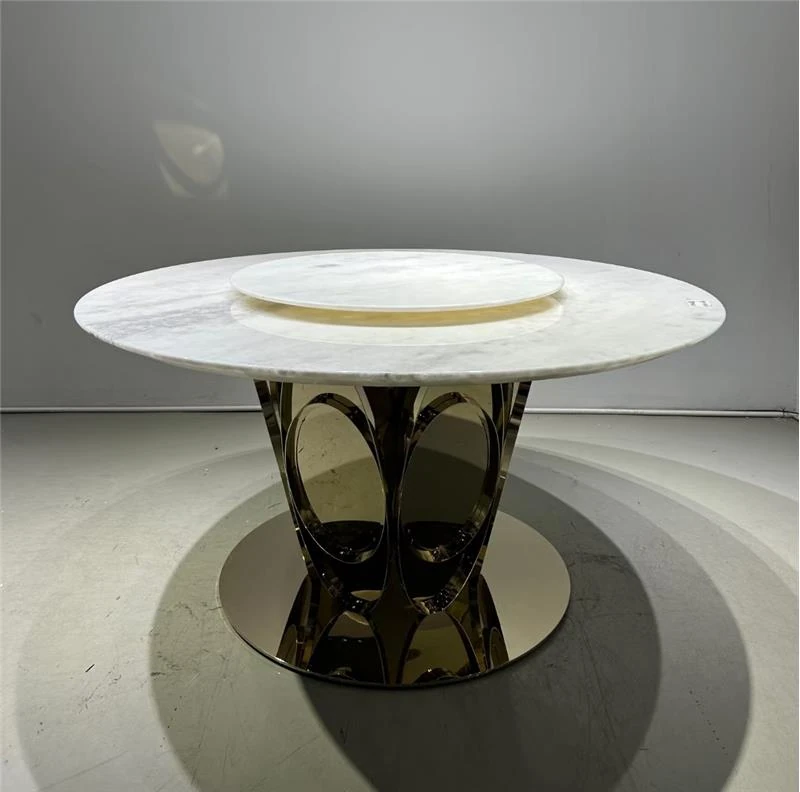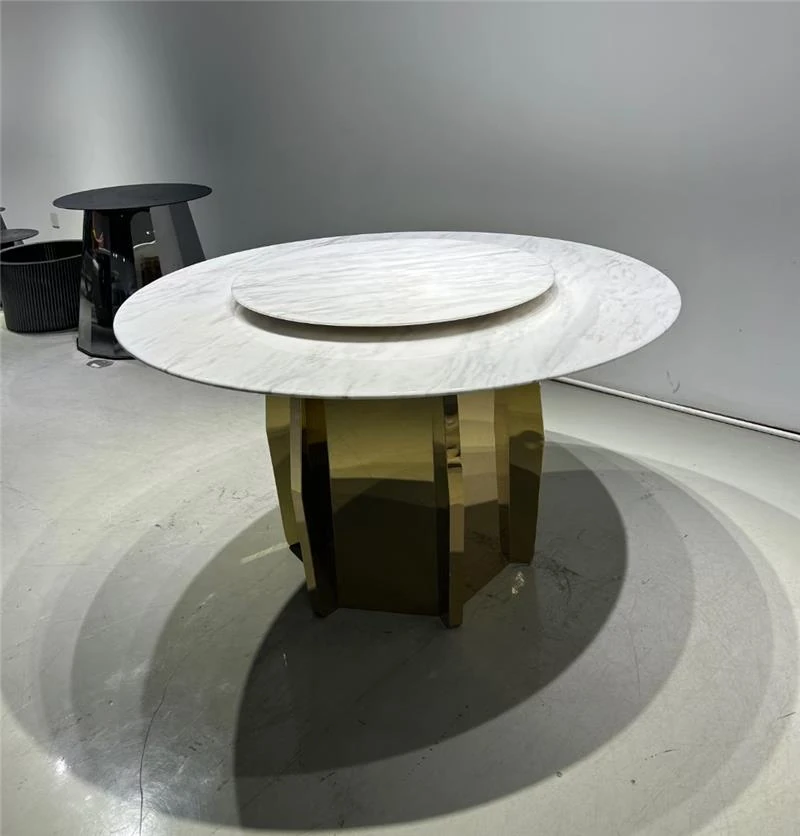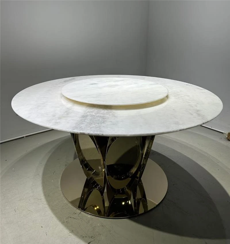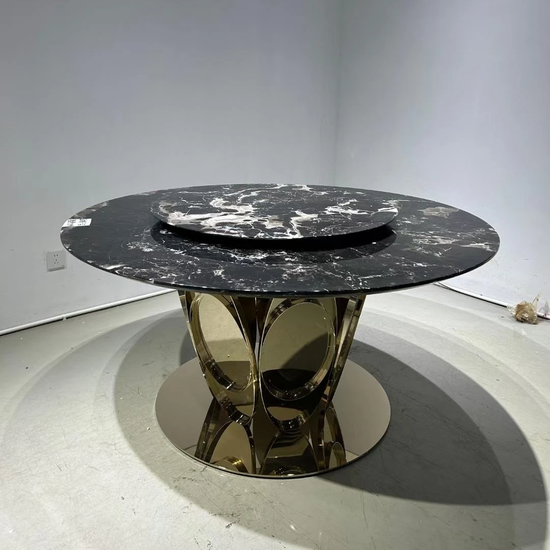 高級イタリアンデザインのダイニングテーブル&チェアセット - 大理石仕上げのラウンドテーブルで、ホテルのような贅沢空間をあなたのヴィラや広々とした家に。上質な食事体験を提供します!