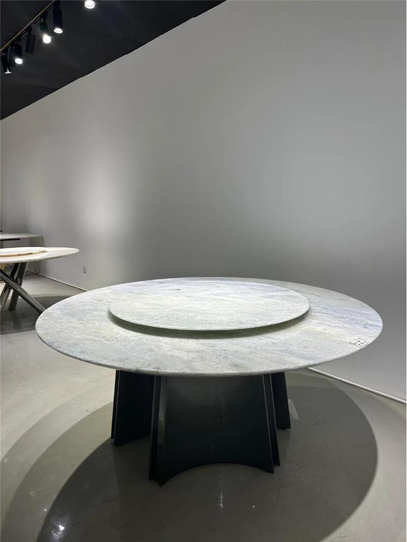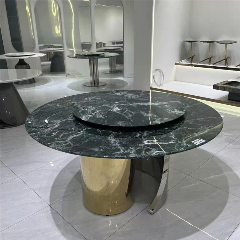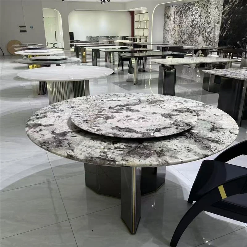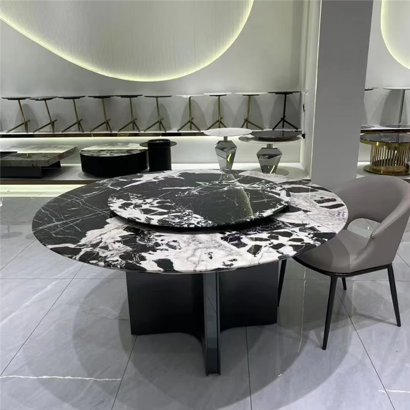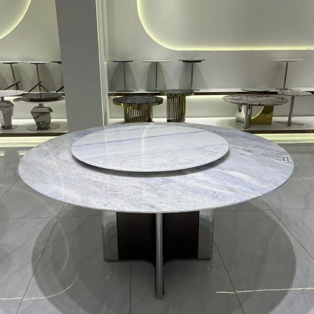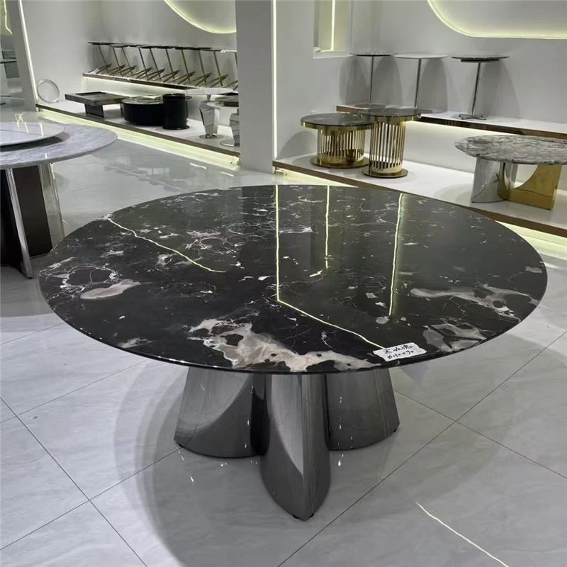 高級イタリアンスタイルの天然大理石ダイニングテーブル - モダンなシンプルデザイン、別荘にぴったりなラグジュアリーな円形テーブル。上質な素材で特別な食卓を演出。