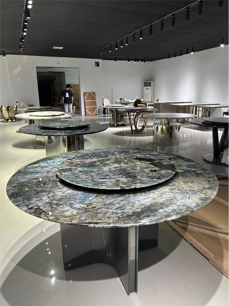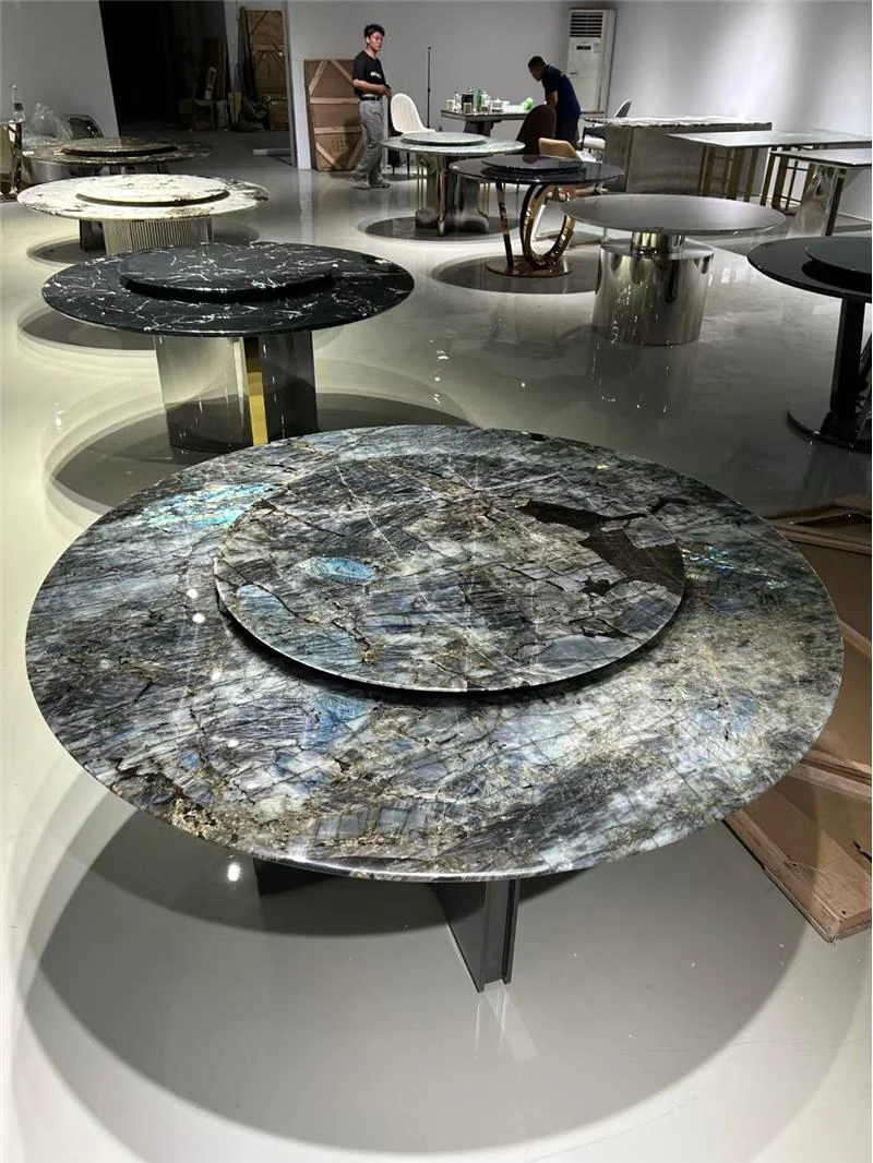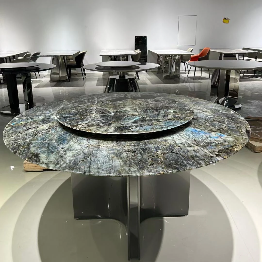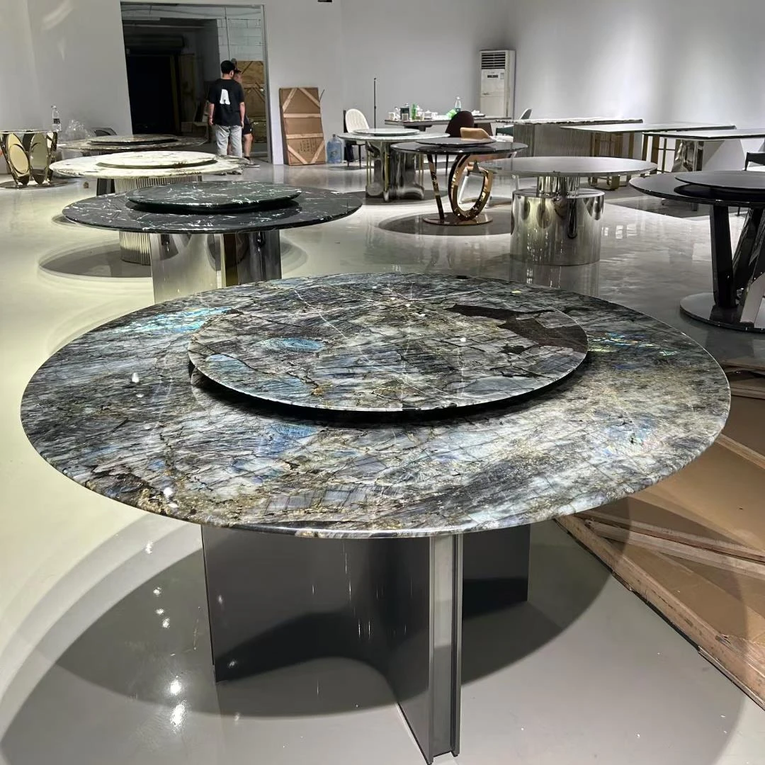 高級イタリアンスタイルの天然大理石ダイニングテーブル - モダンなシンプルデザイン、別荘にぴったりなラグジュアリーな円形テーブル。上質な素材で特別な食卓を演出。