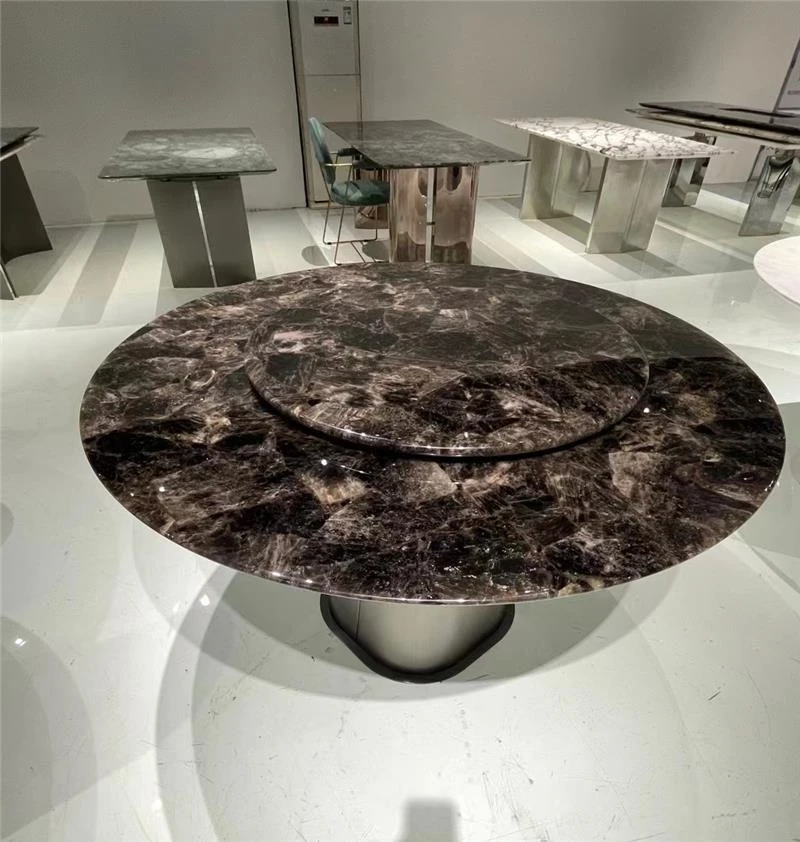 ホテルスタイルのイタリアンラグジュアリー ダイニングテーブル&チェアセット - ヴィラや広々とした住居にぴったりな大理石製の高級ラウンドテーブルで、優雅な食事体験をお楽しみください。