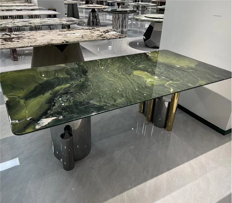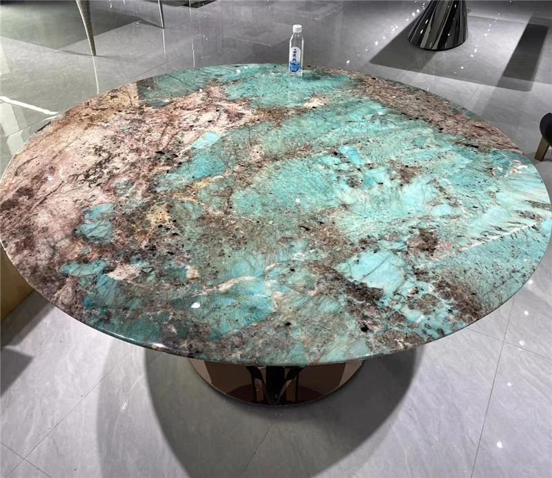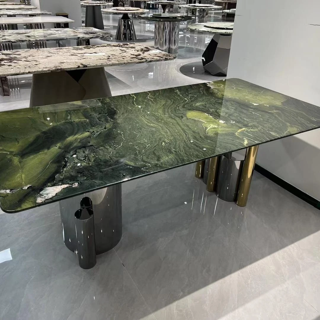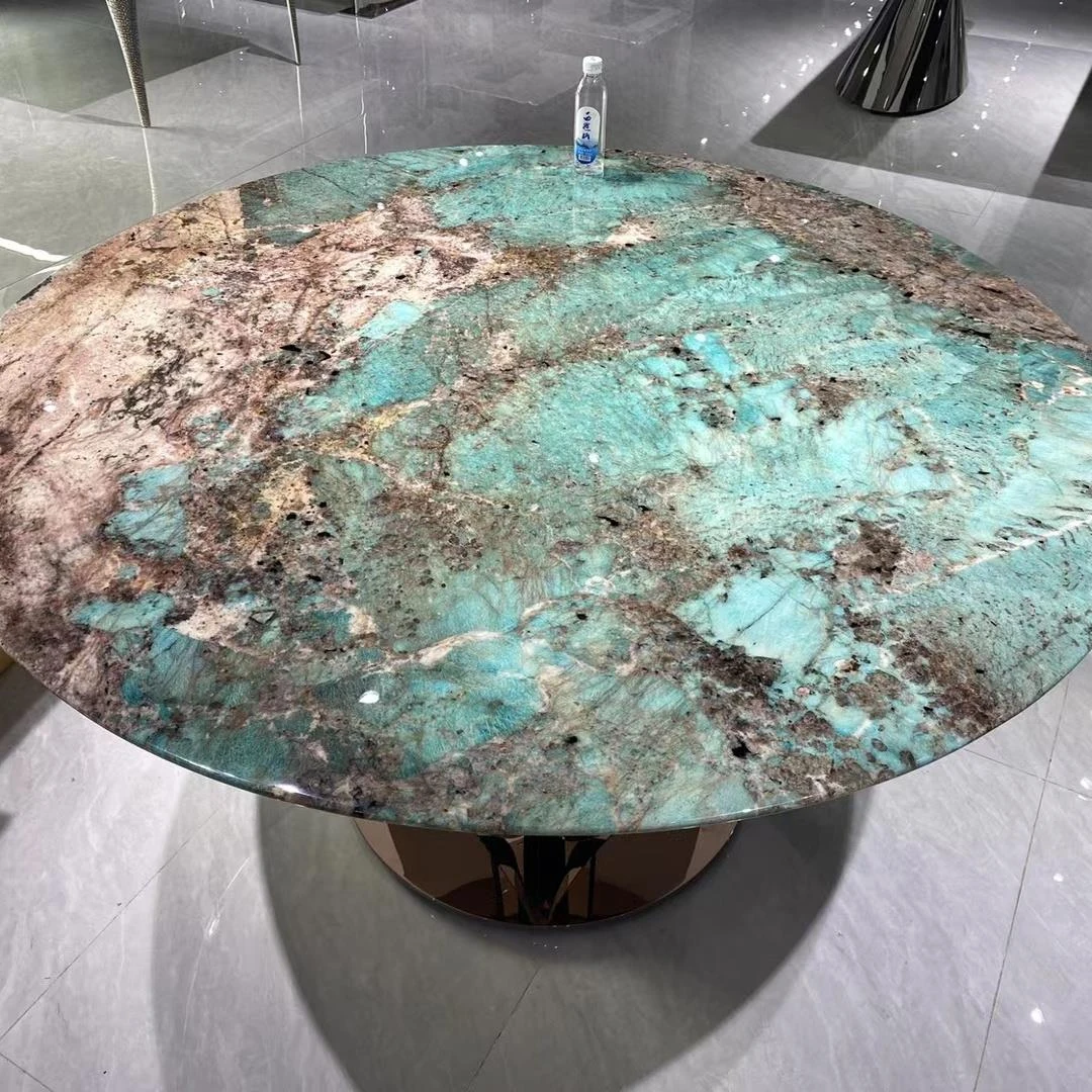 高級天然大理石ラウンドダイニングテーブル - 贅沢なイタリアンデザイン、回転式プレート付き、広々としたヴィラや大きな家に最適!あなたの食卓を特別な空間に変えます。