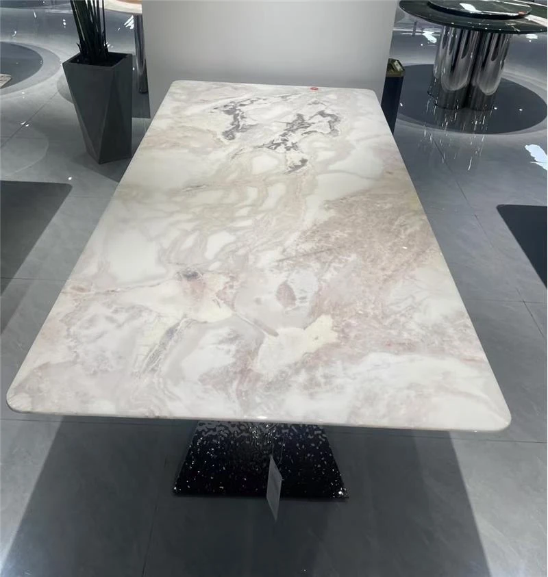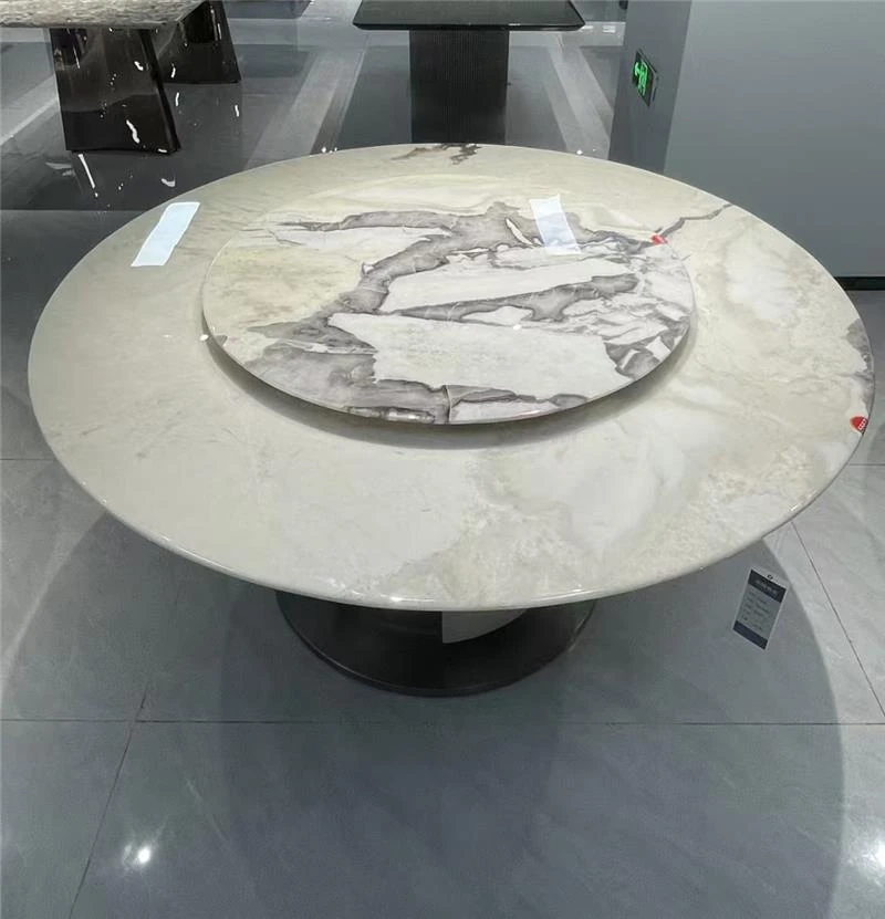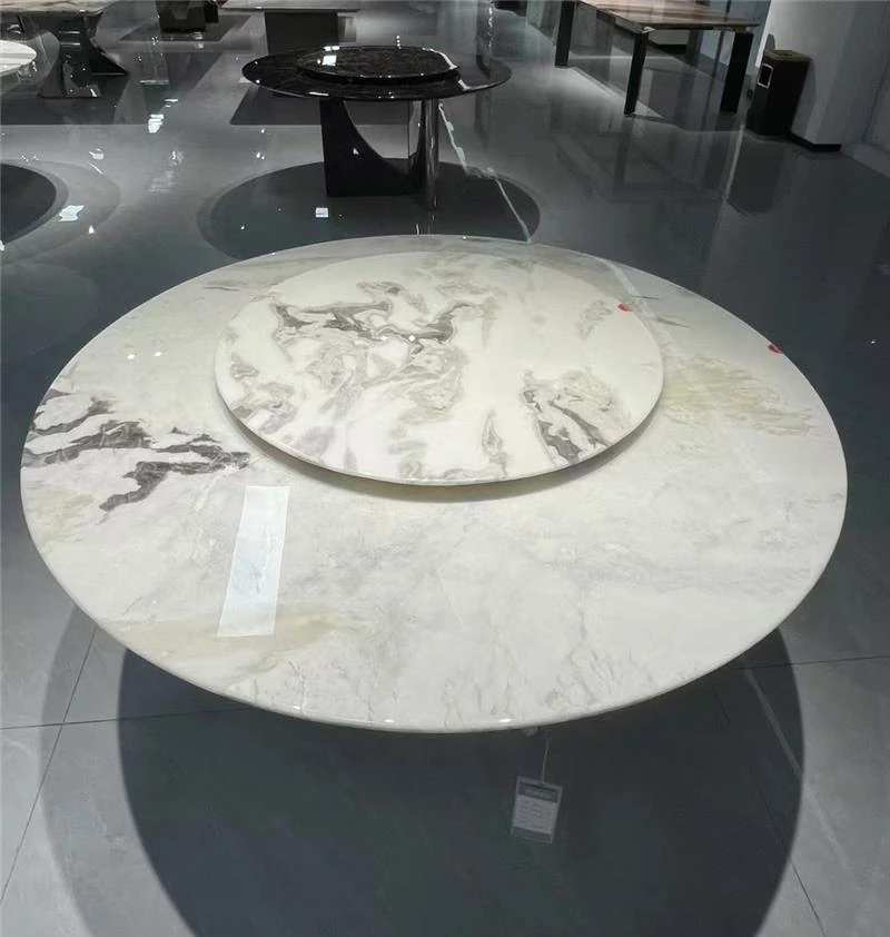 高級天然大理石ダイニングテーブル - イタリアンスタイルのラグジュアリー、回転プレート付きで大邸宅やヴィラに最適!家庭での特別な食事体験を提供します。