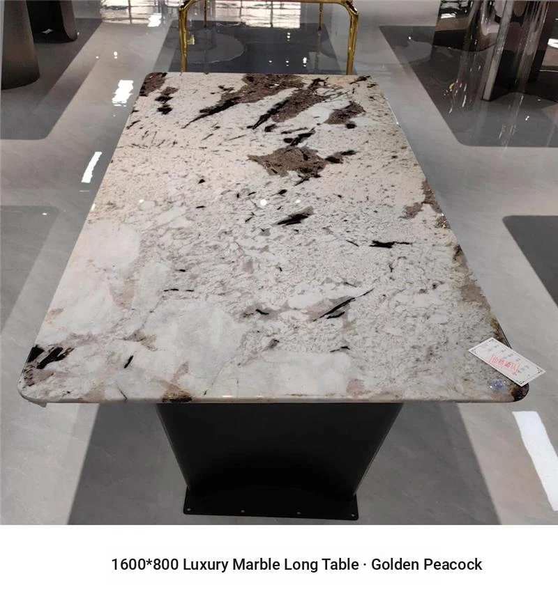 Luxury Natural Marble Dining Table for Living Room – Elegant Peacock Gold Design, Perfect for Villas and Spacious Homes, Ideal for Upscale Dining Experiences.