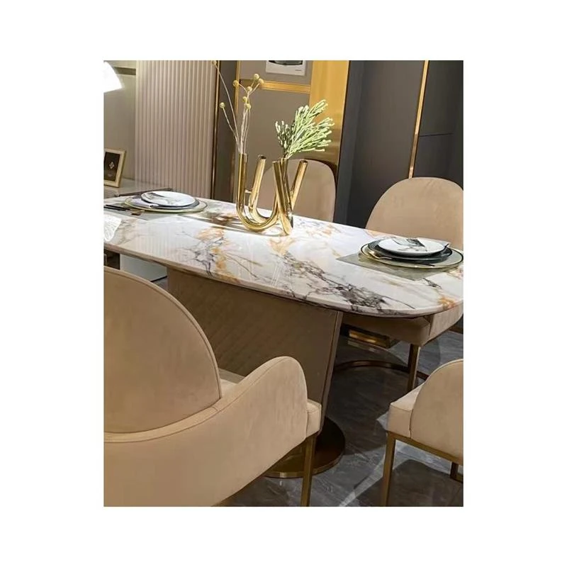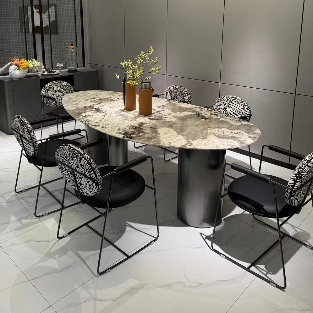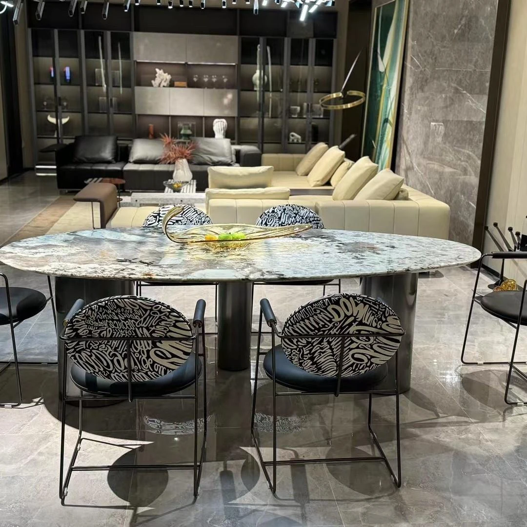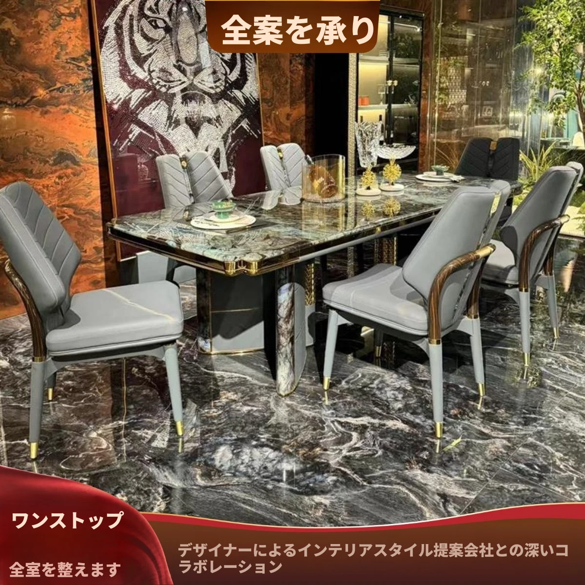 ラグジュアリーな天然大理石のダイニングテーブル - モダンでシンプルなデザイン、別荘や高級マンションにぴったりの長テーブル。家族や友人との特別な時間を演出します。