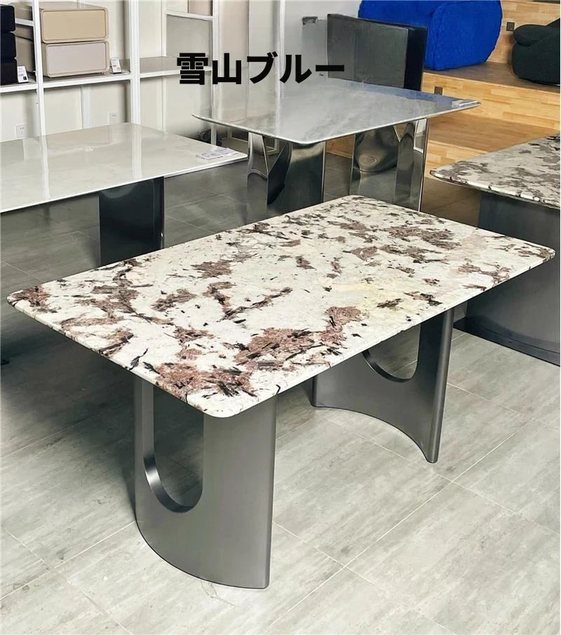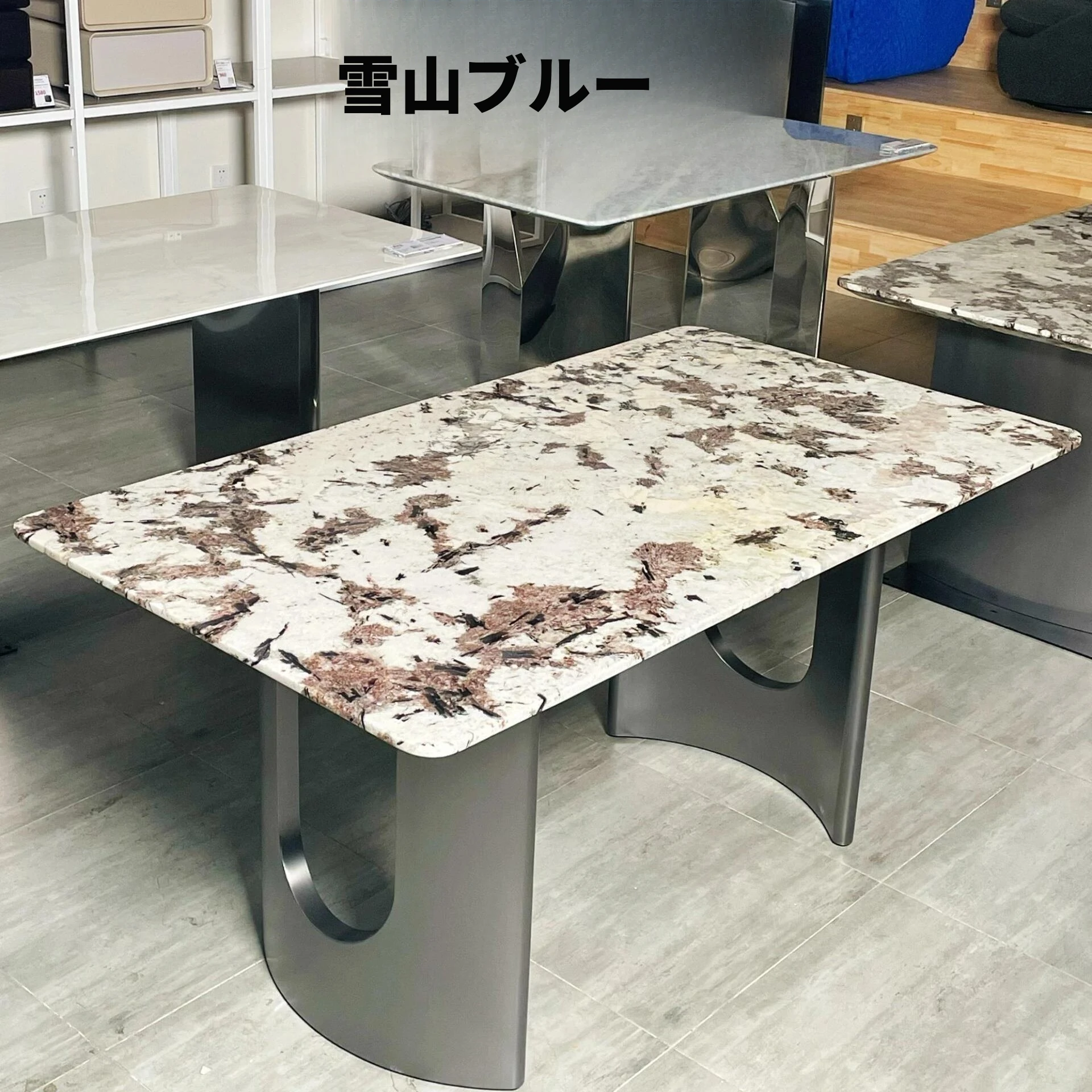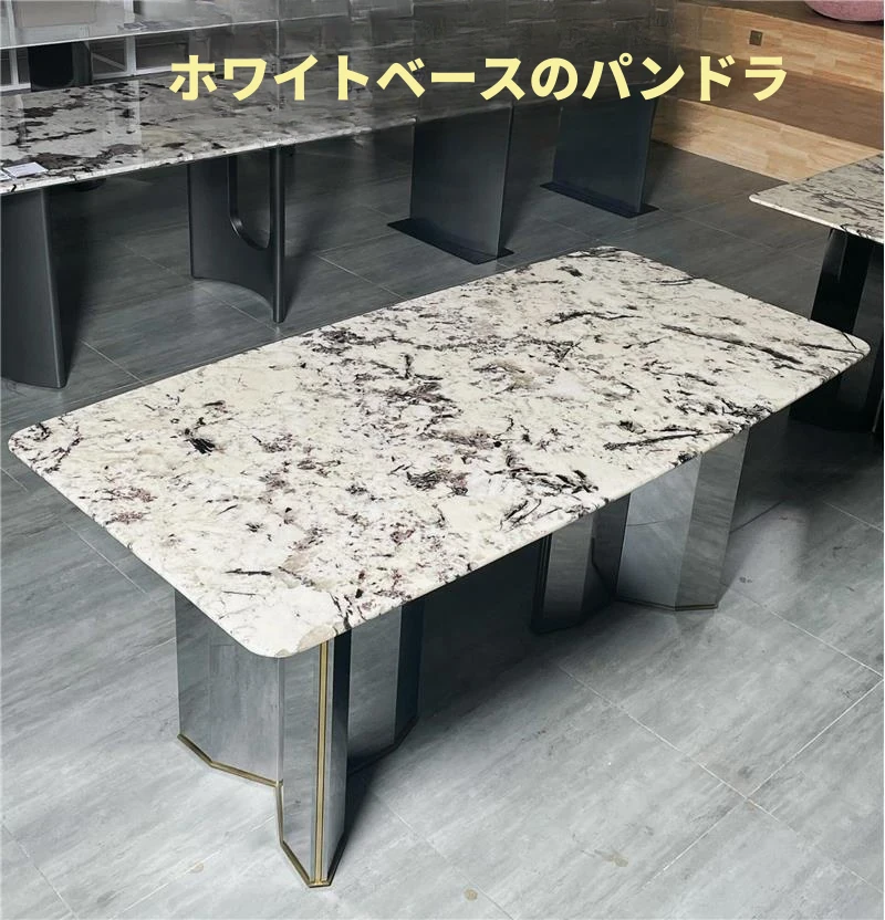 軽やかな贅沢感を演出する天然大理石の長方形ダイニングテーブル。輸入の高級石材を使用した、白を基調とした美しいパンドラヴィラスタイルの家庭用テーブル。洗練された空間を作り出します!