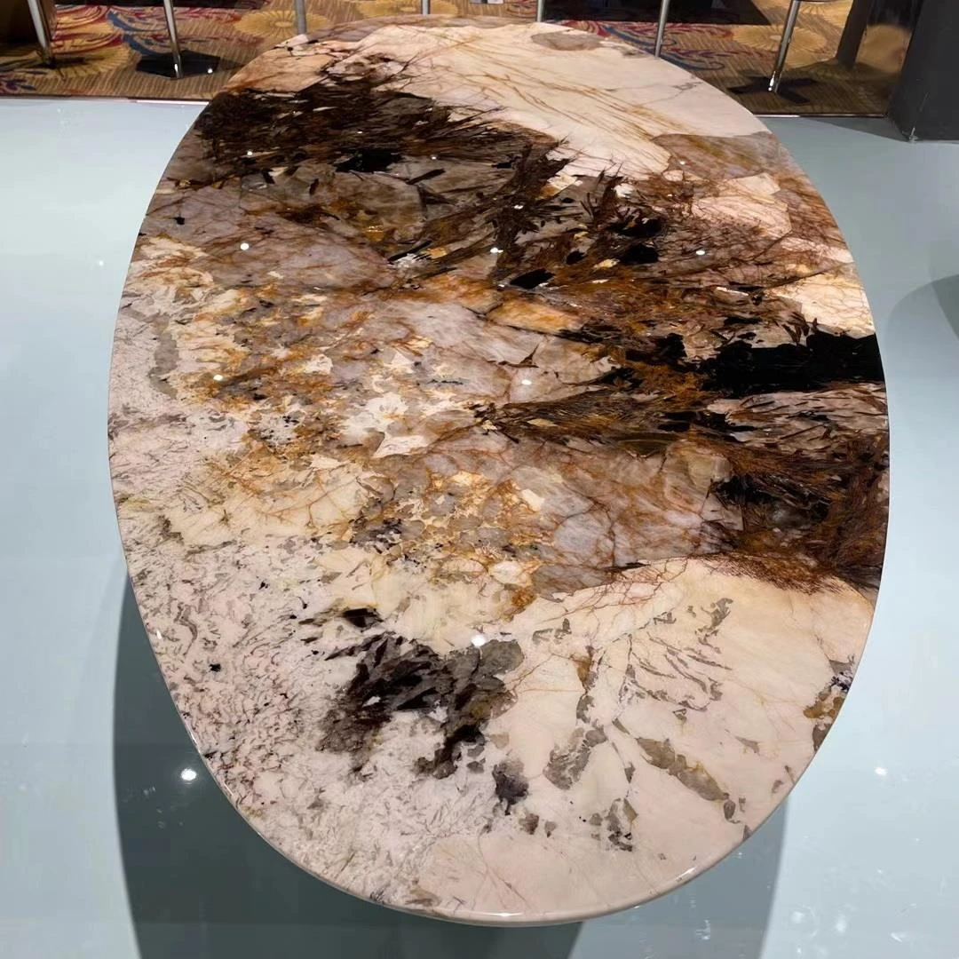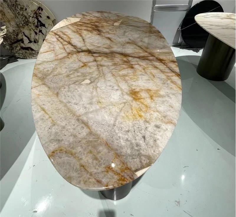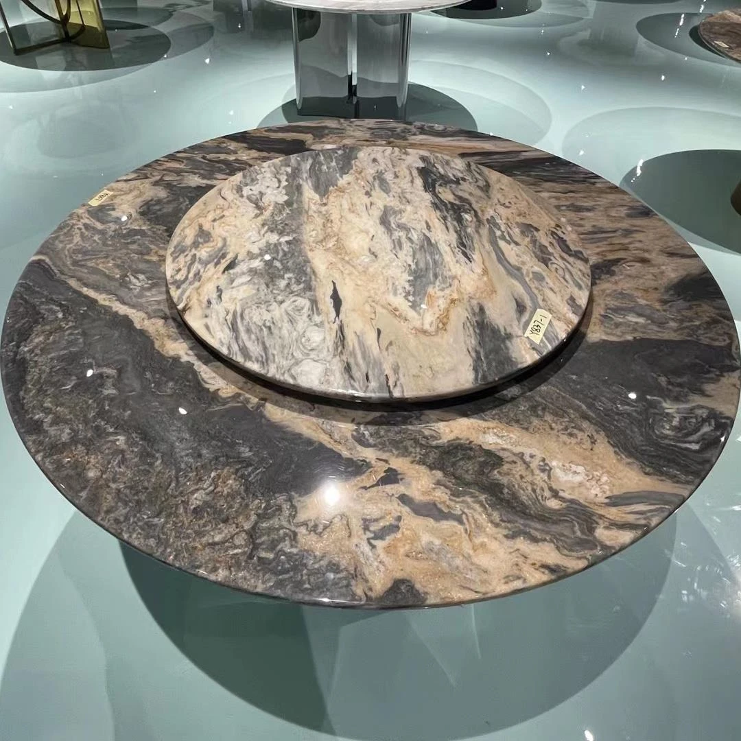 ラグジュアリーな天然大理石製の円形ダイニングテーブル - モダンでシンプルなデザイン、上質な食事空間を演出!高級感溢れるラウンドテーブルで、特別なひとときをお楽しみください。