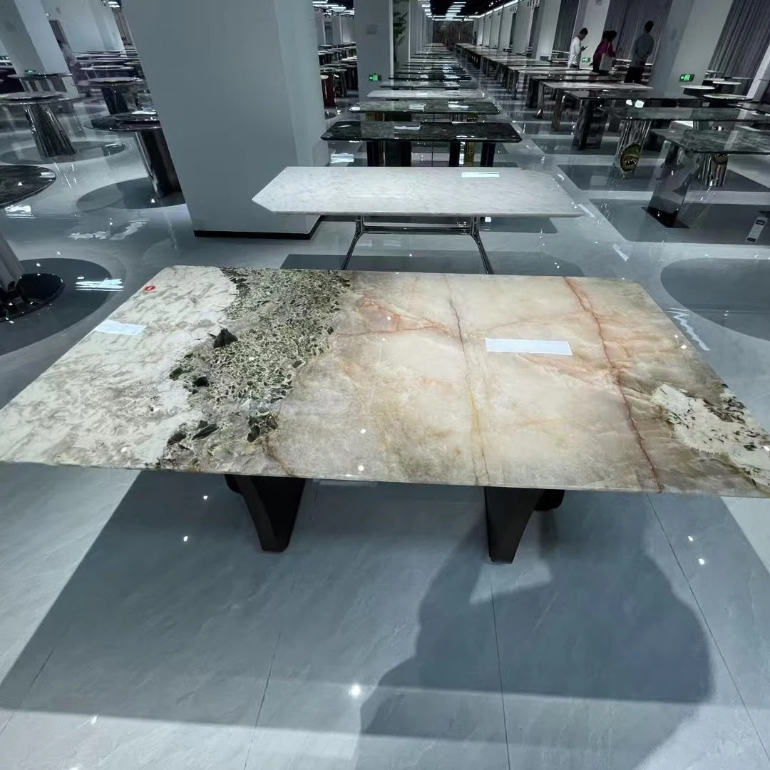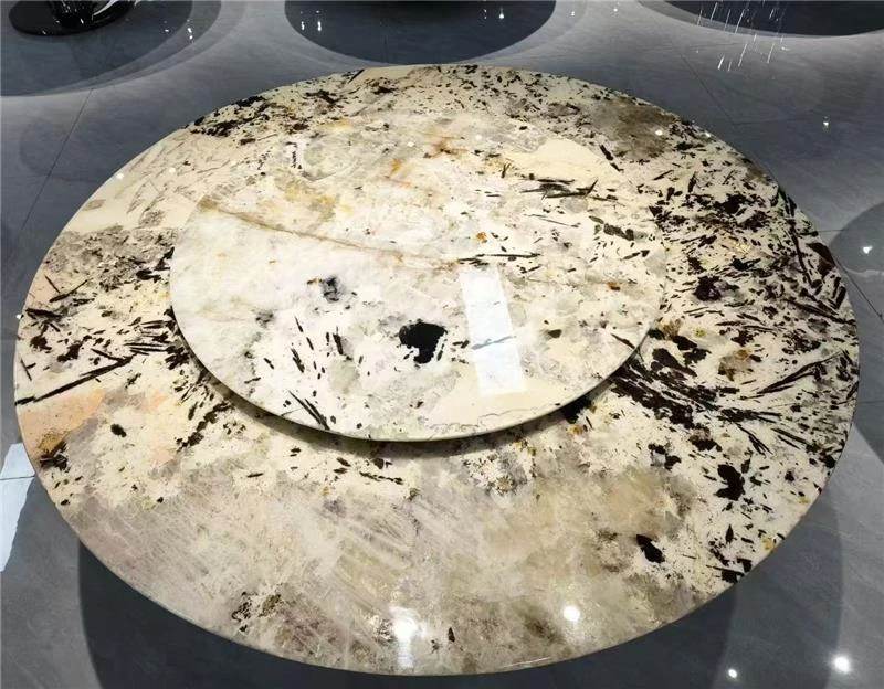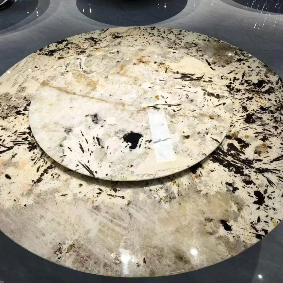 ラグジュアリー天然大理石ダイニングテーブル - モダンでシンプルなデザイン、上質なラウンドテーブルで特別な食事体験を。高級感溢れる家族向けの円形テーブル。
