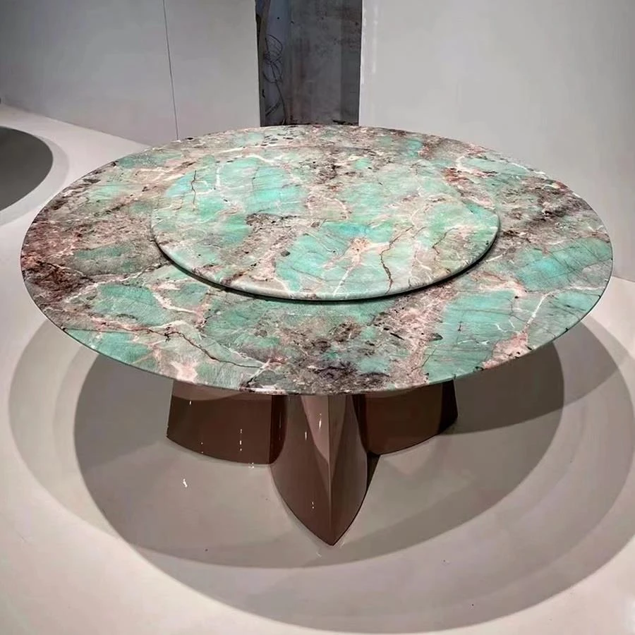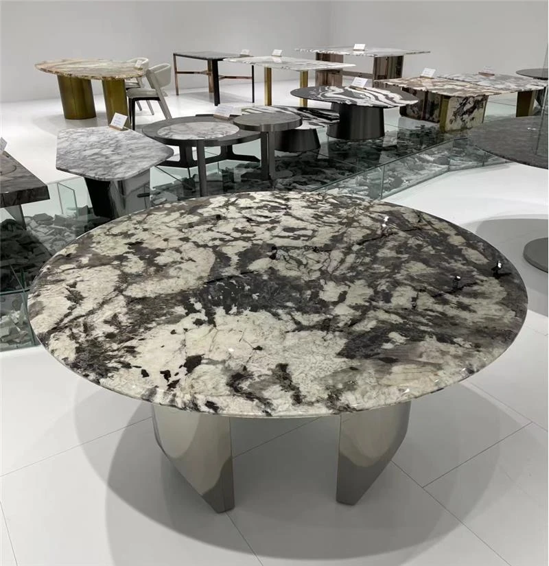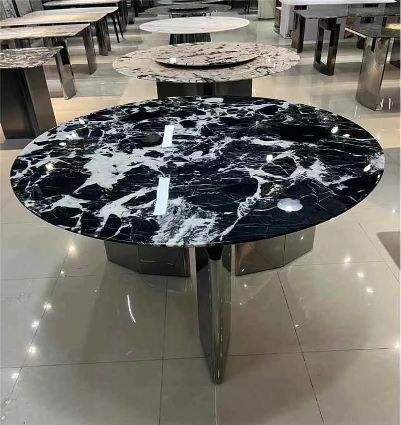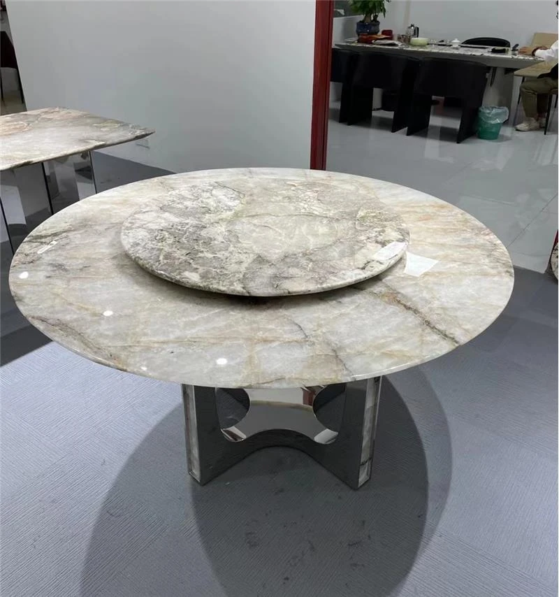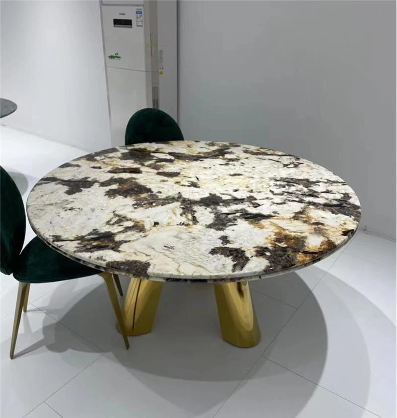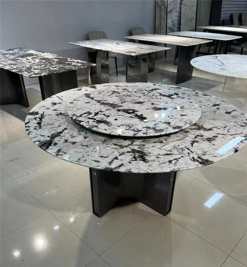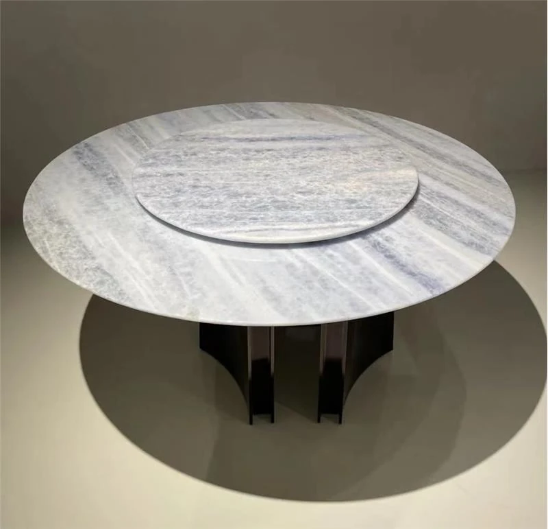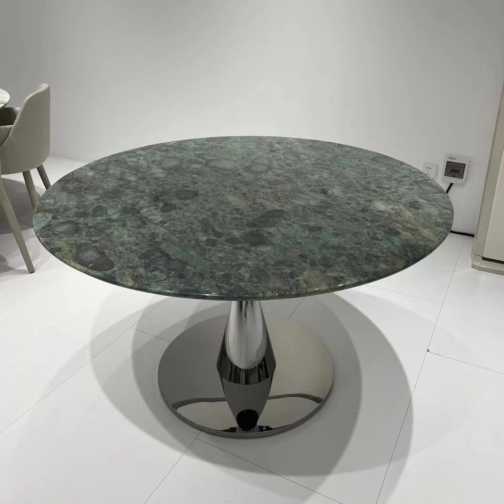 ラグジュアリーな天然大理石製のラウンドダイニングテーブル - モダンでシンプルなデザイン、高級感あふれる家用円卓。食事の時間を特別なひとときに変える、上質なインテリアを手に入れましょう。