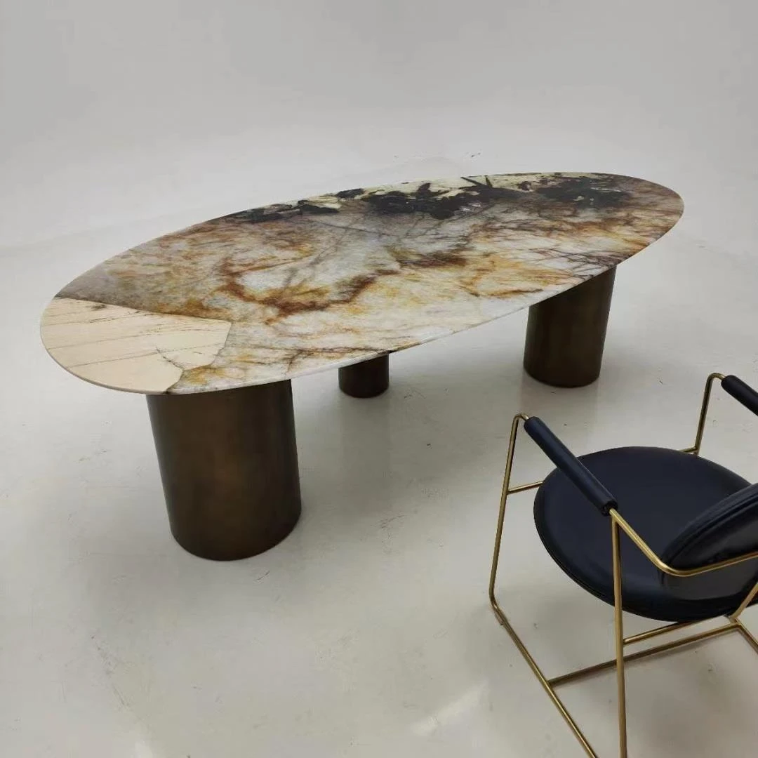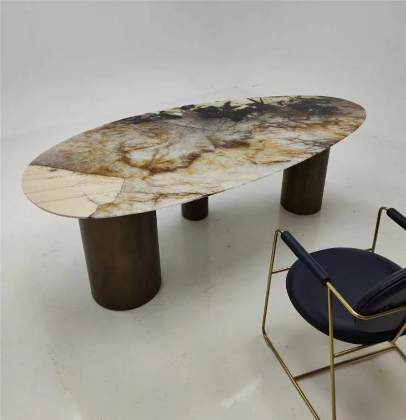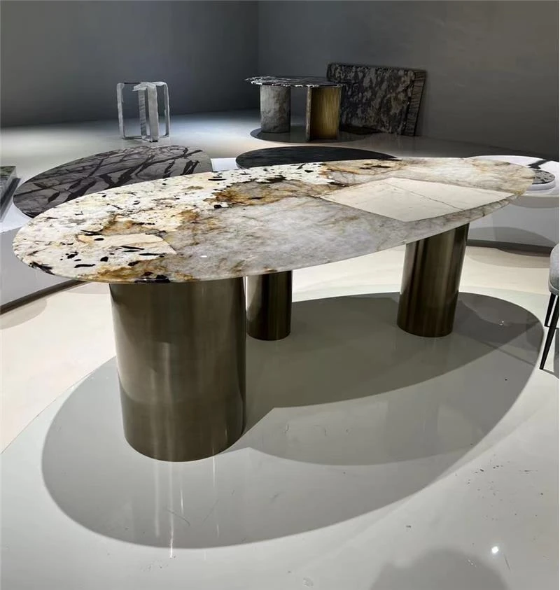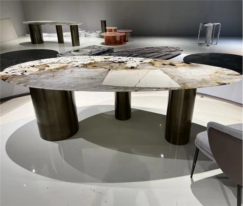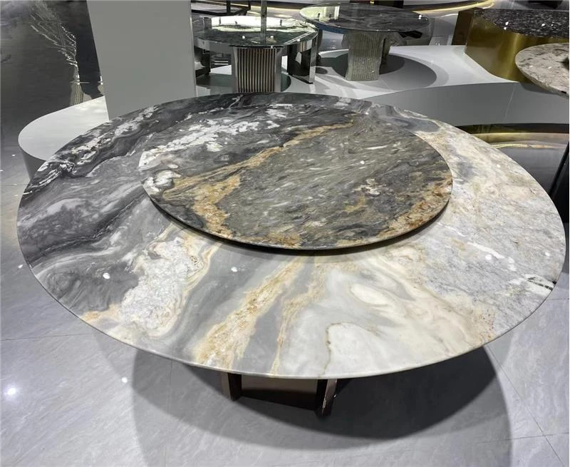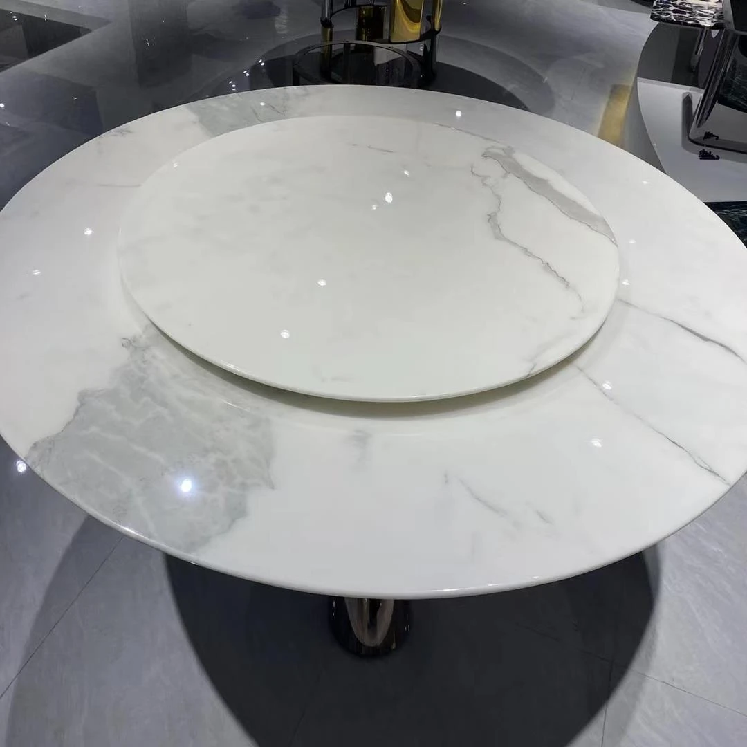 ラグジュアリー石材ホテル天然大理石ラウンドダイニングテーブル - イタリアンスタイルの軽やかな高級感、広々とした別荘や大きな家族にぴったりの回転式食卓。贅沢な食事体験をあなたの家に!