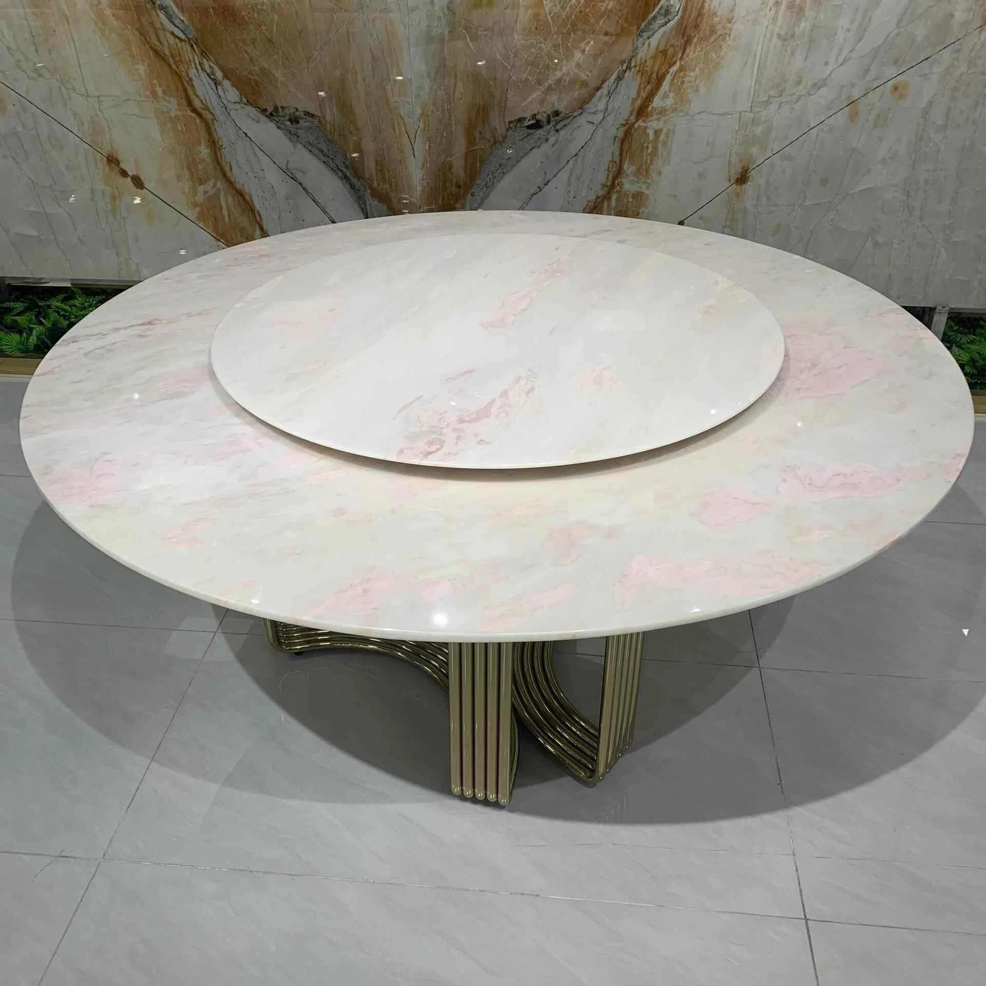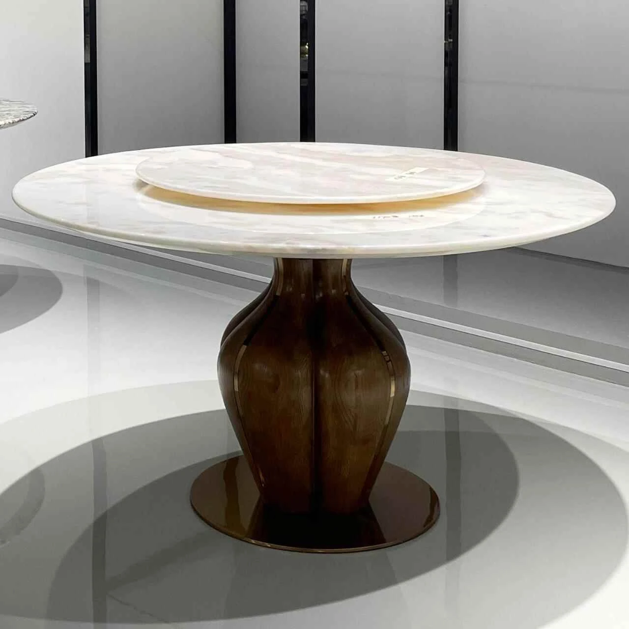 天然大理石製ラウンドダイニングテーブル|高級ホテルや豪邸に最適|モダンなリビングにぴったりの洗練されたデザイン|高級感あふれる空間を演出するための理想的な選択!