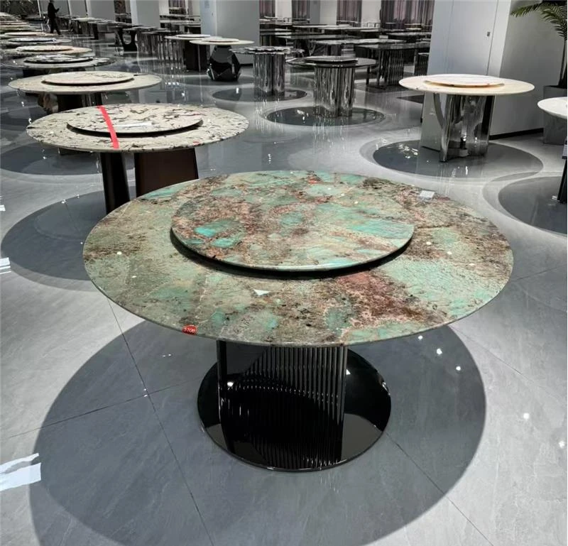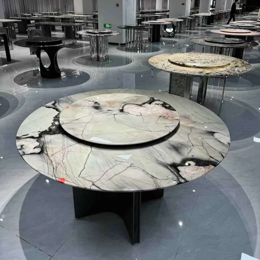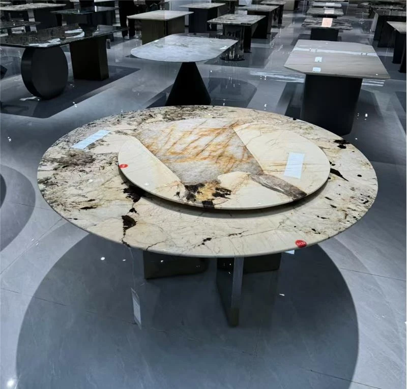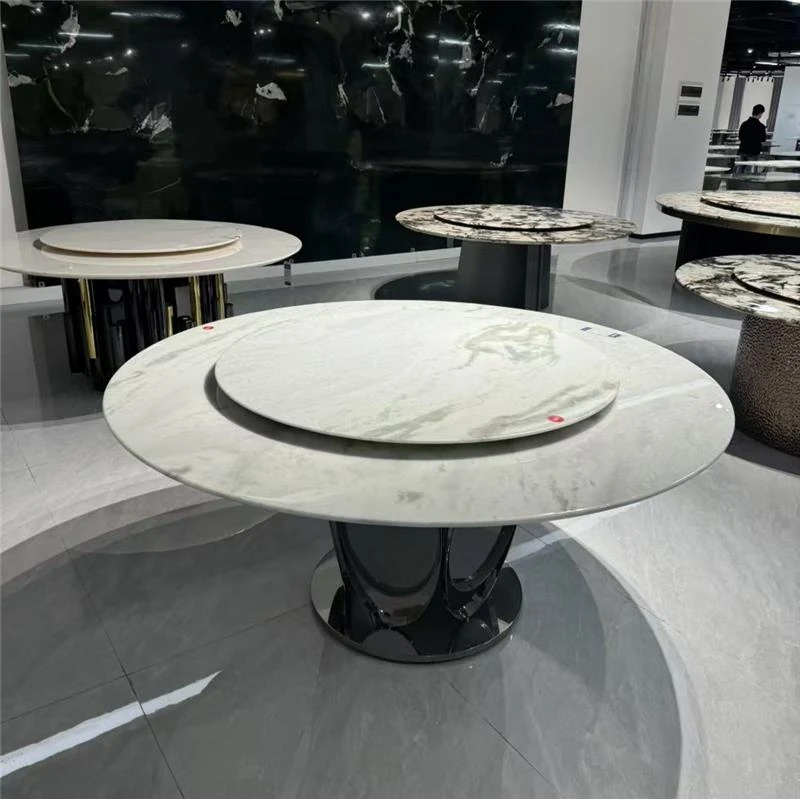 天然大理石ラウンドダイニングテーブル - 高級ホテルや豪邸に最適!モダンなリビングルームにぴったりの上質な軽奢スタイル、広々としたラグジュアリーな空間を演出します。完璧なインテリアアクセントをお楽しみください!