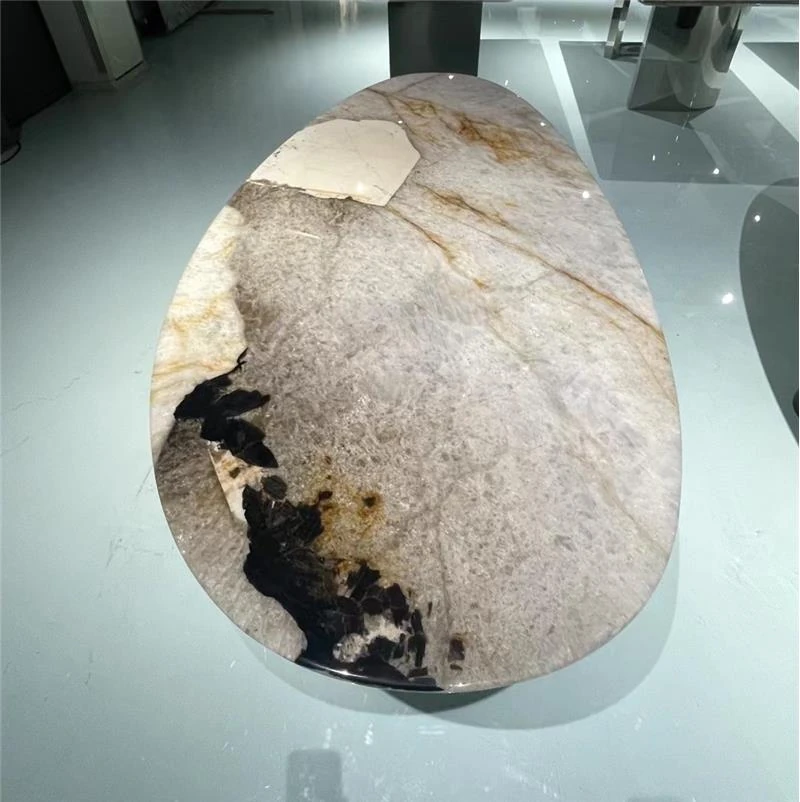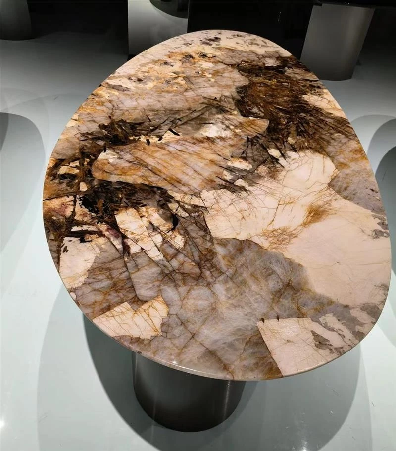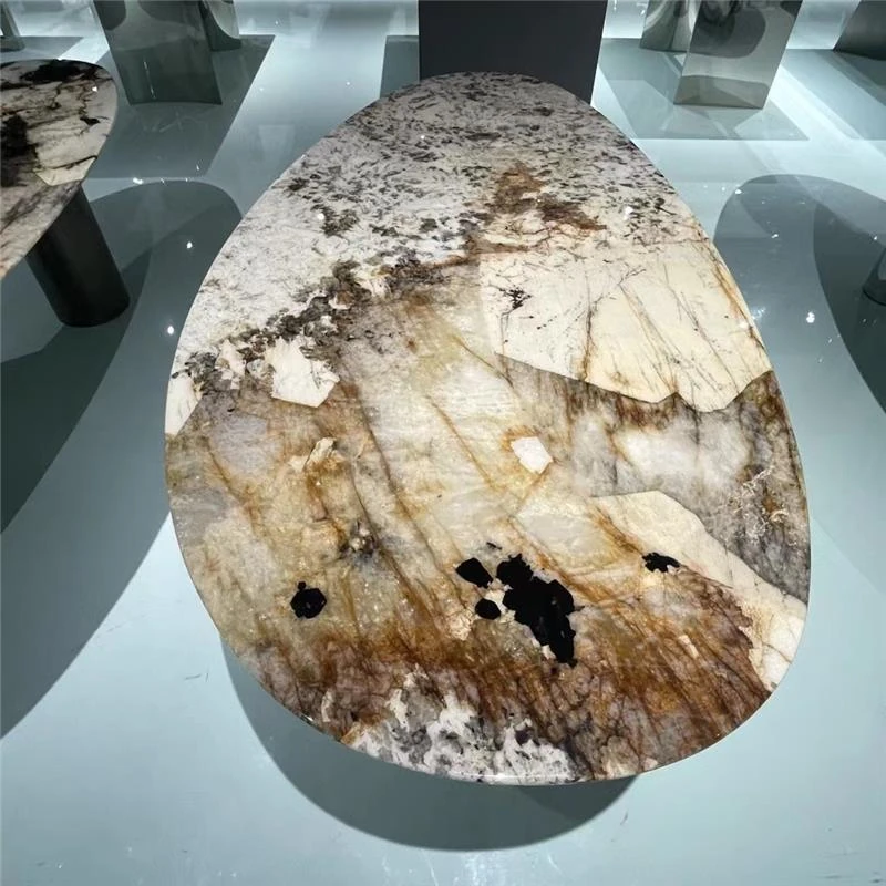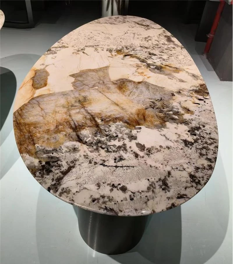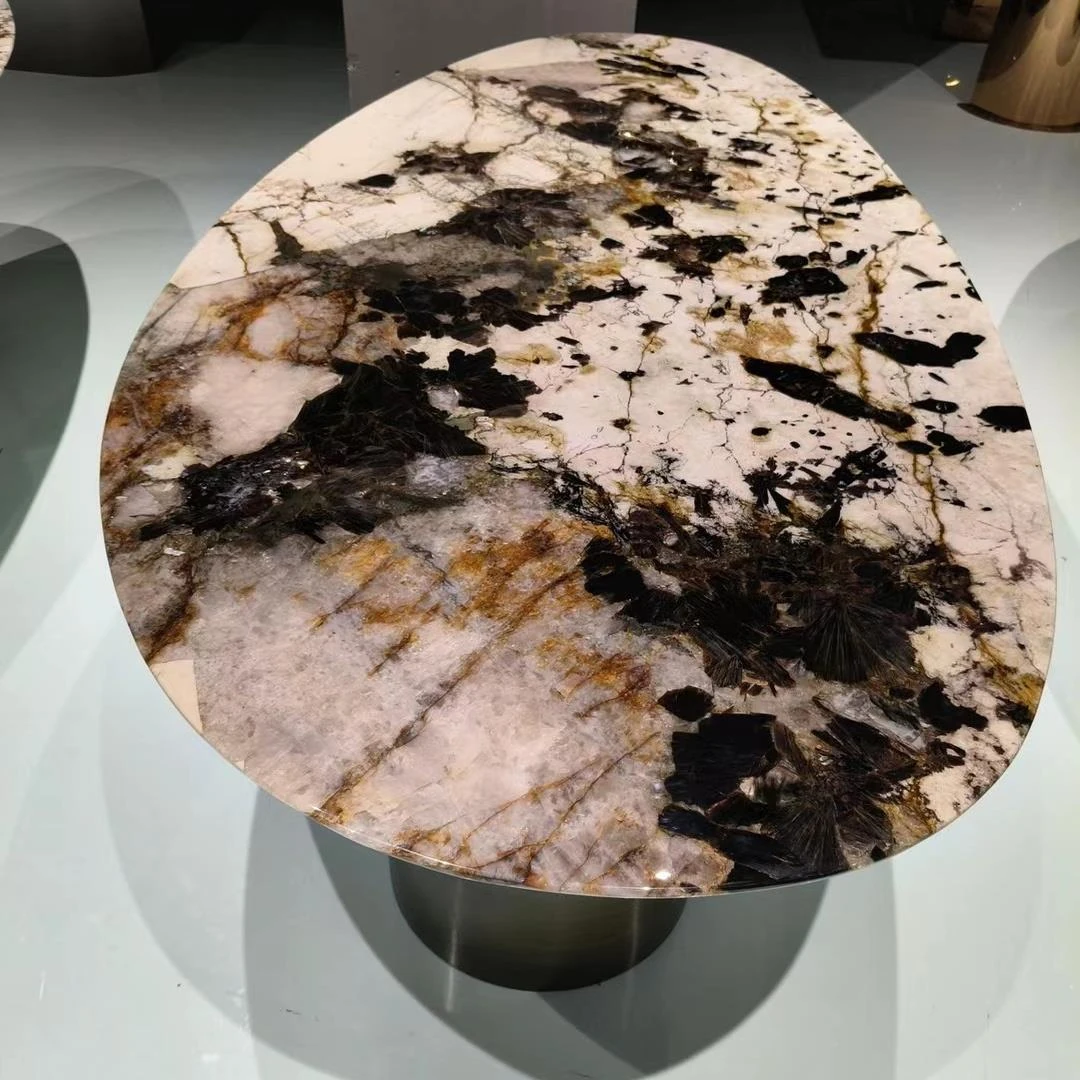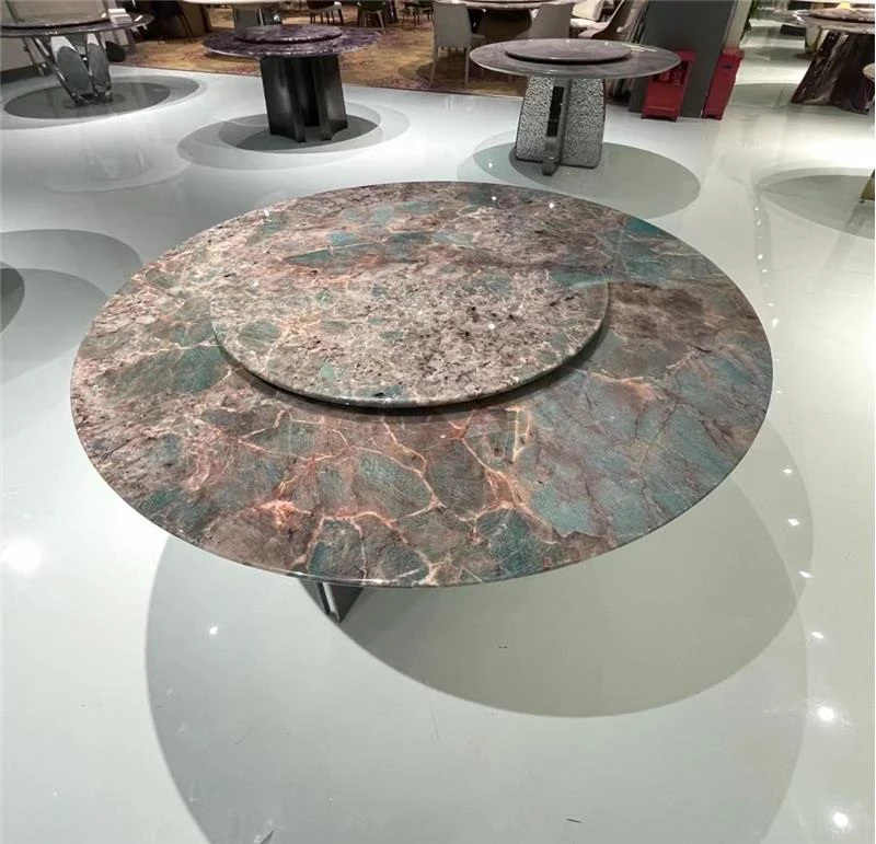 天然大理石ラウンドダイニングテーブル - 高級ホテルや豪邸に最適!モダンなリビングルームにぴったりな、上質な軽奢スタイルのインテリア全案!