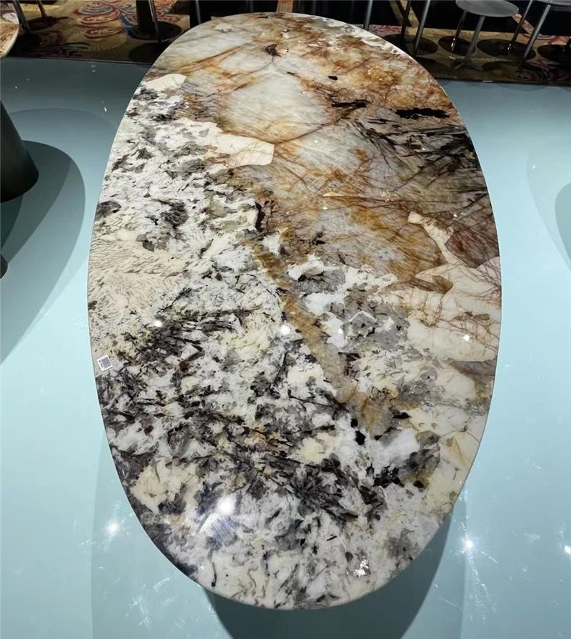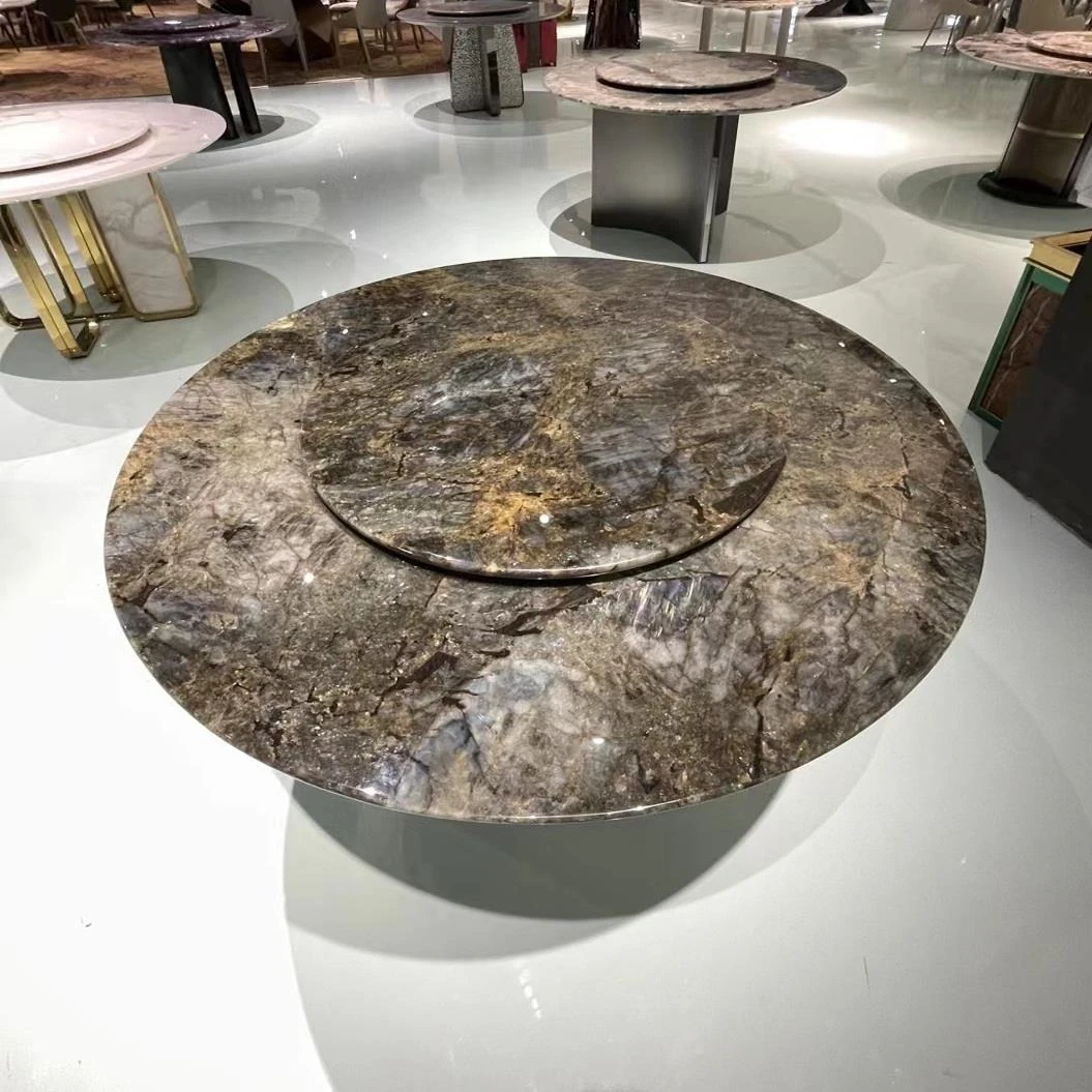 天然大理石ラウンドダイニングテーブル - モダンでラグジュアリーなリビングにぴったり!高級感あふれるデザインで、広々とした豪邸に最適な一品。あなたの食卓を格上げする、洗練された選択肢です。