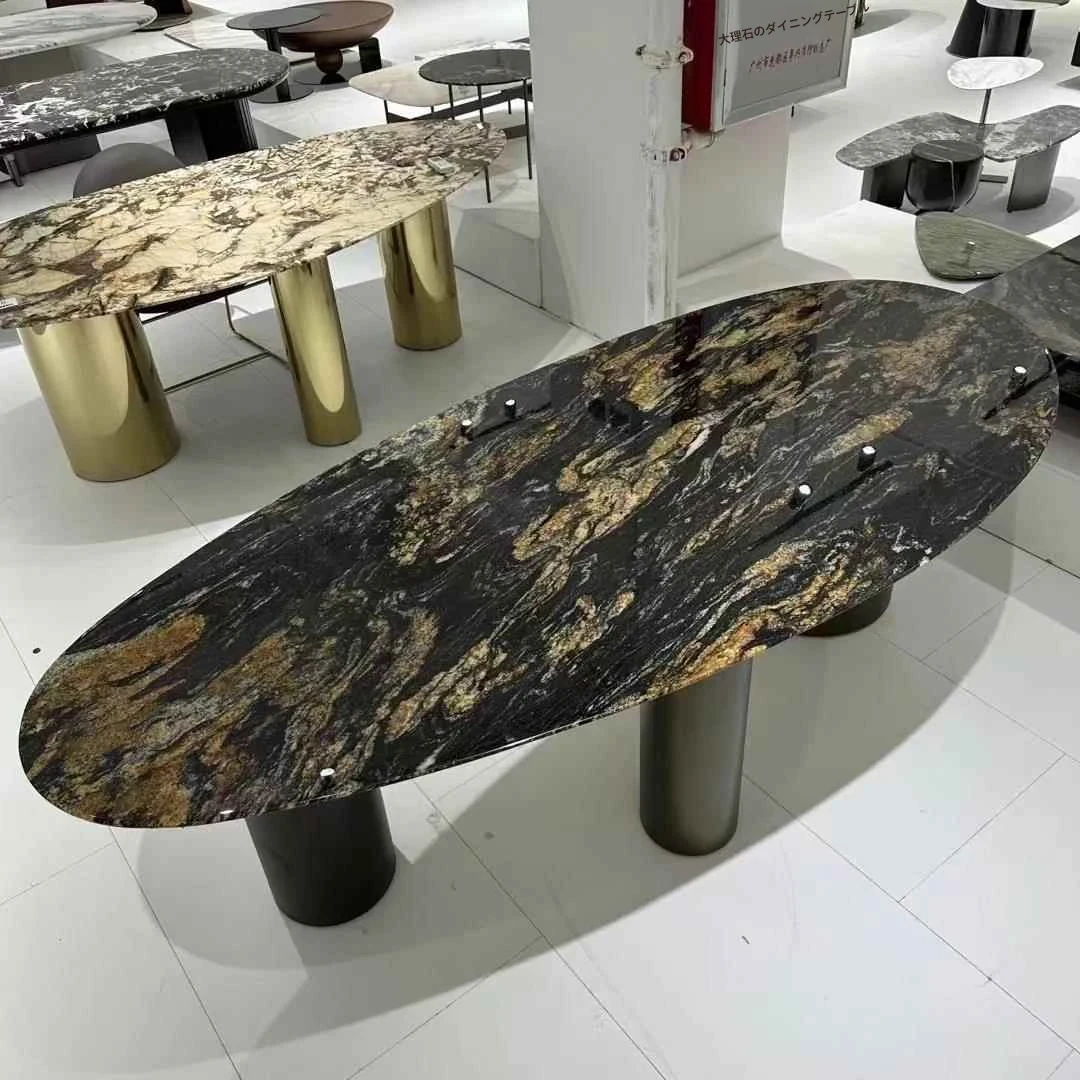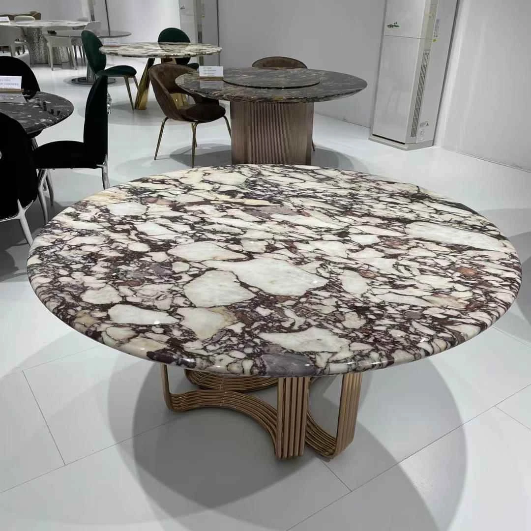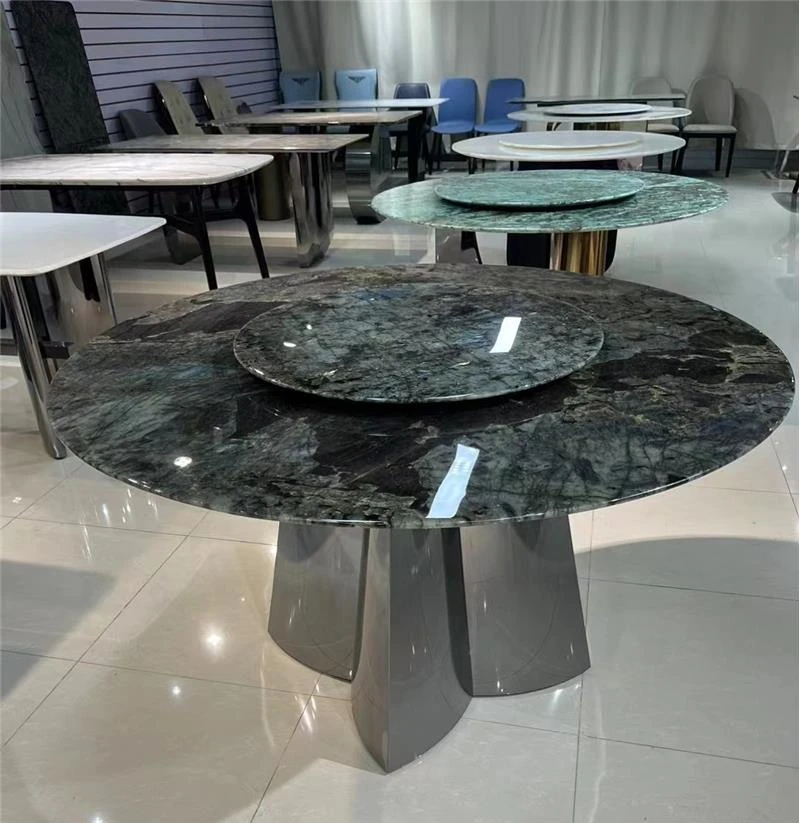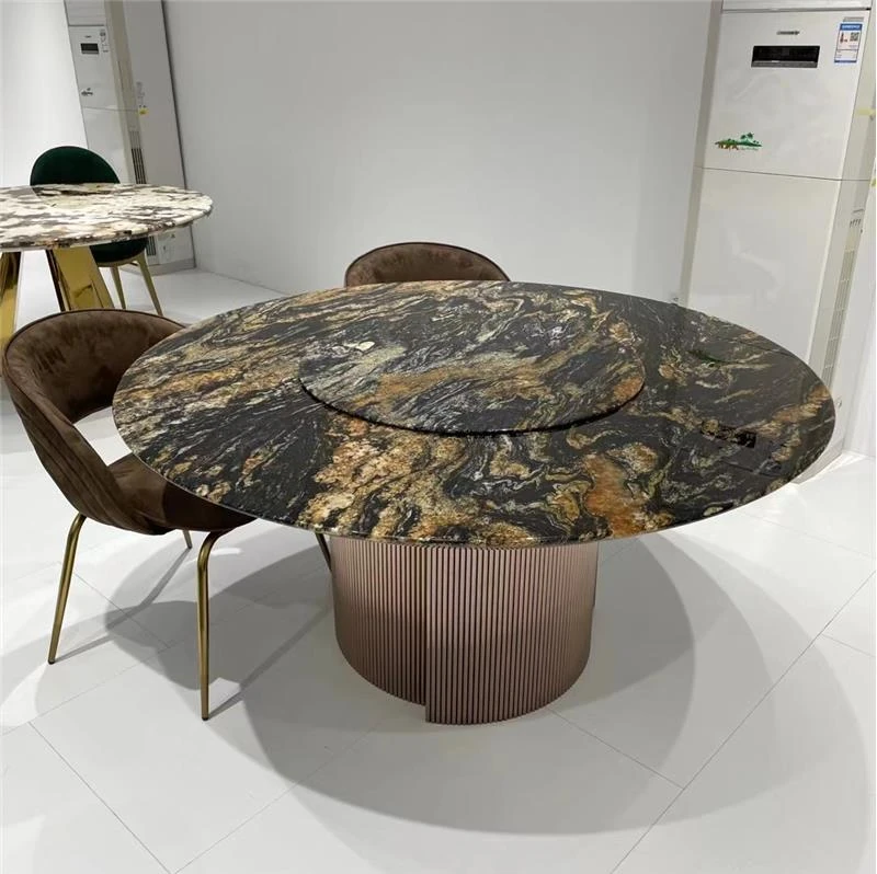 天然大理石製のラウンドダイニングテーブル - 高級感あふれるモダンデザイン、リビングや豪華な家にぴったりの上質な食卓。大人数でも楽しめる贅沢なひとときをお届けします。