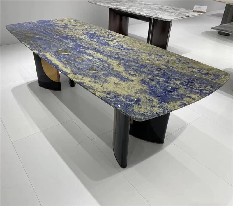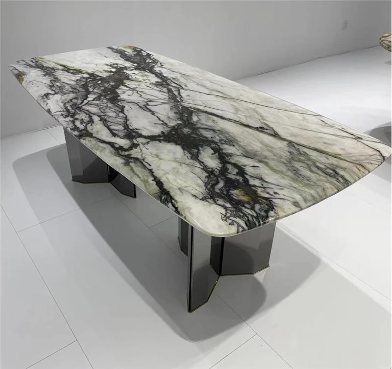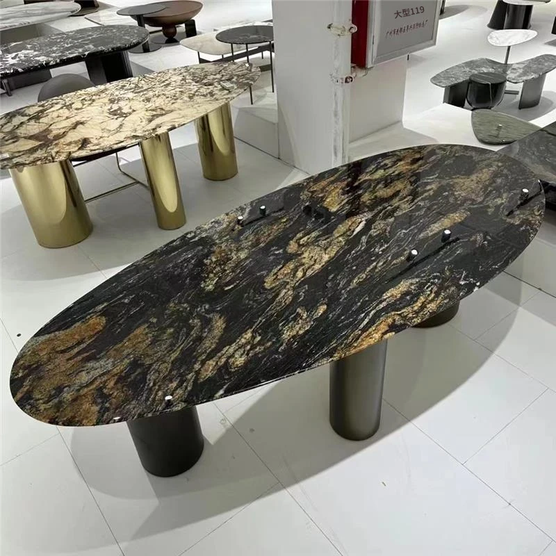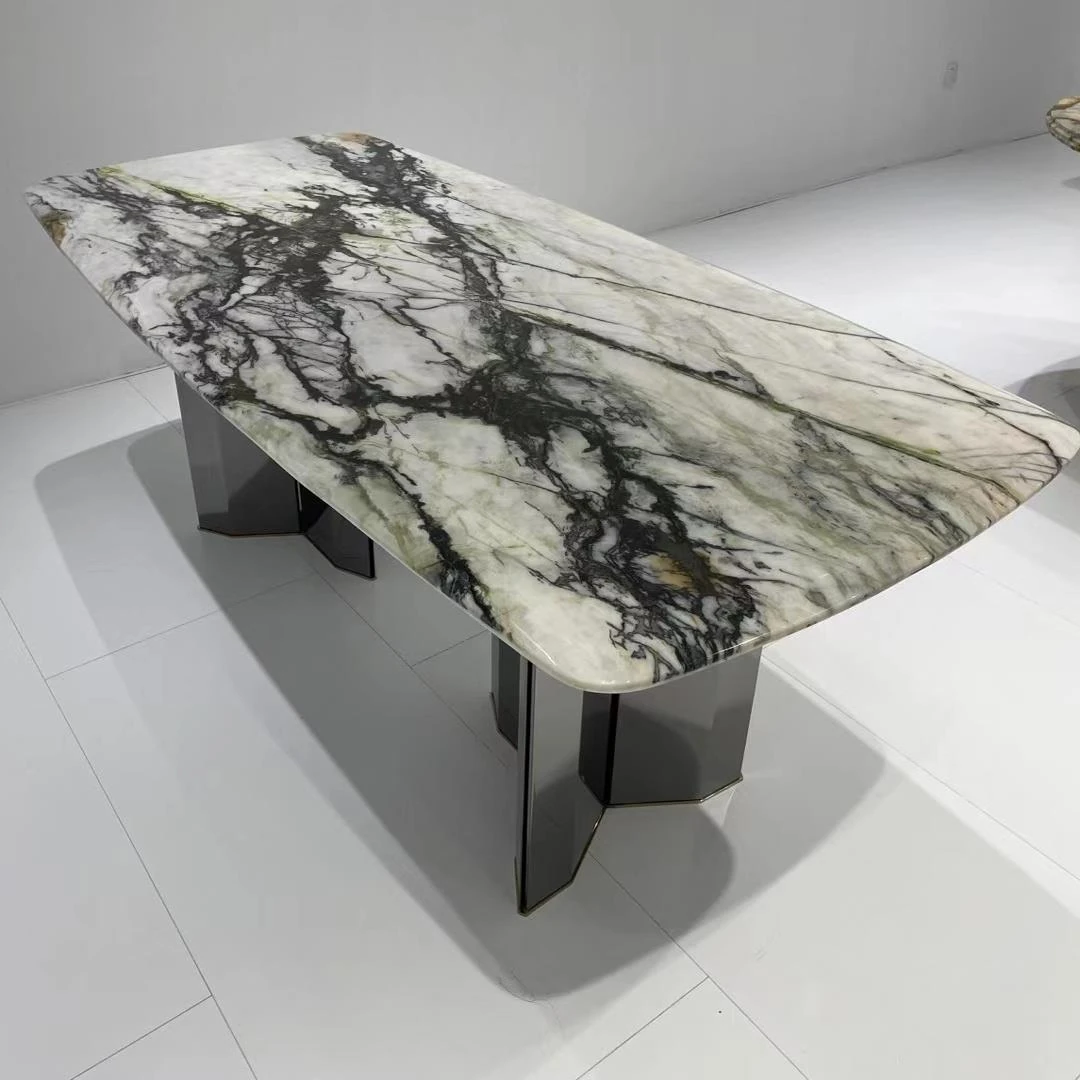 天然大理石製のラウンドダイニングテーブル - 高級感あふれるモダンデザイン、リビングや豪華な家にぴったりの上質な食卓。大人数でも楽しめる贅沢なひとときをお届けします。