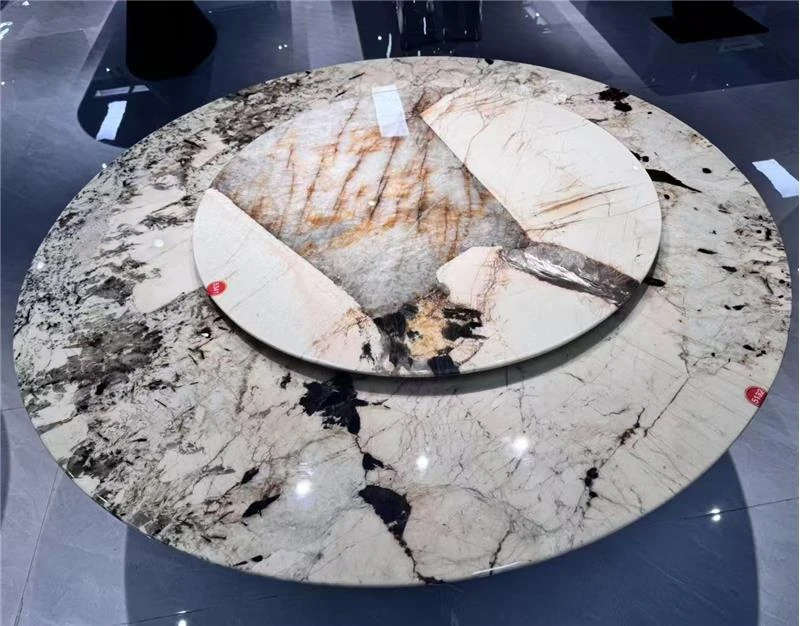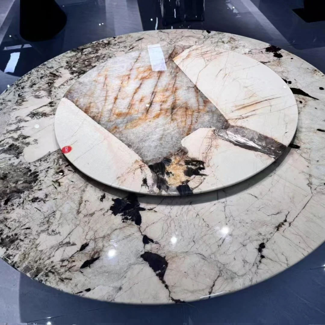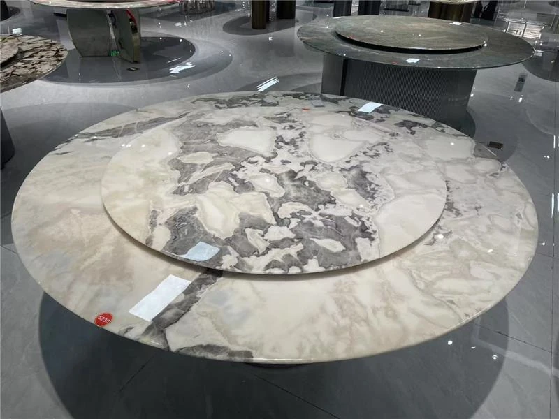 天然大理石のラウンドダイニングテーブル|モダンでラグジュアリーな贅沢空間を演出|高級住宅や広々としたリビングにぴったり!家族団らんや特別なひとときを過ごすための理想的な選択。