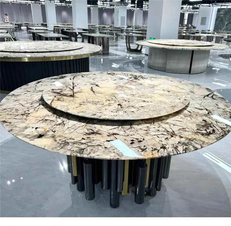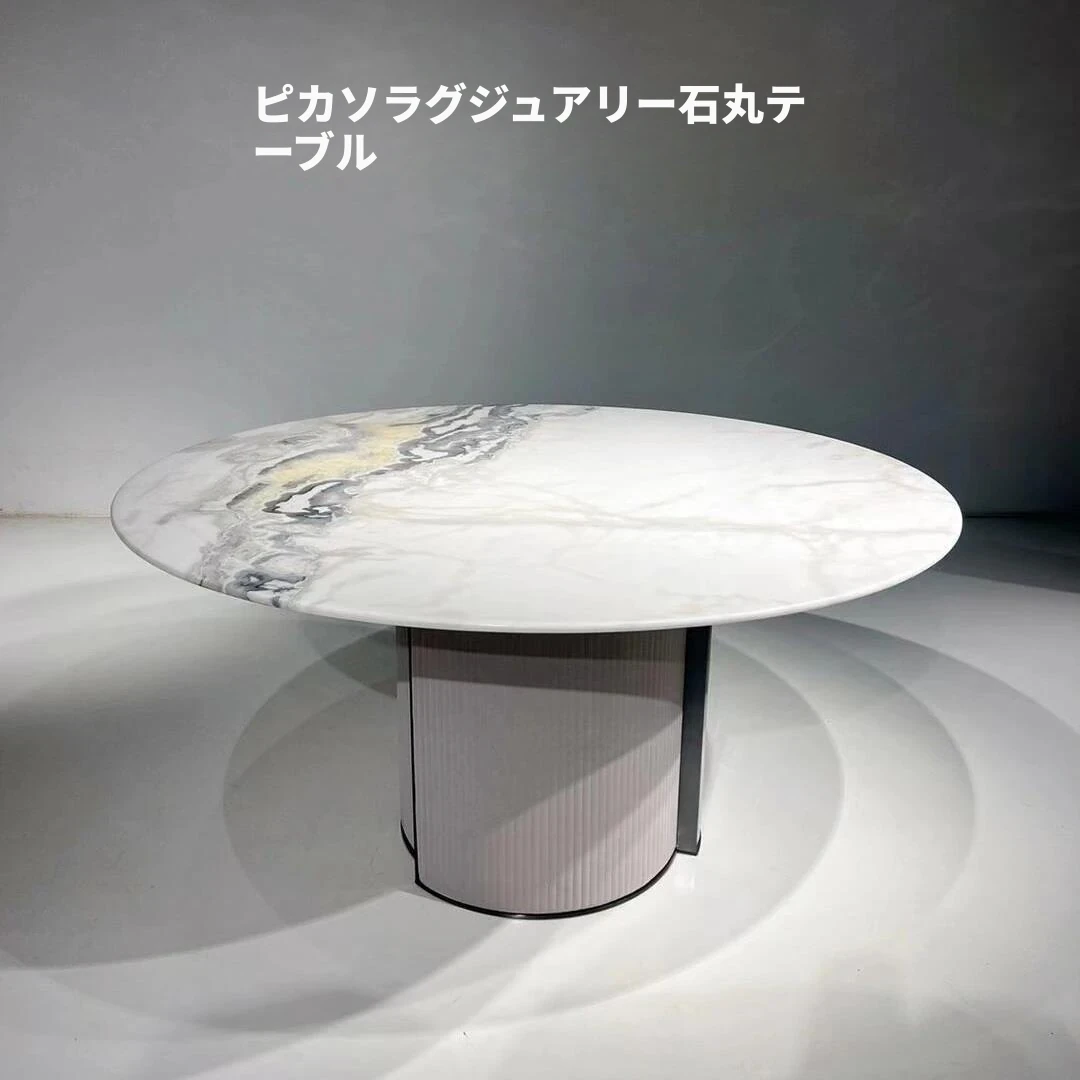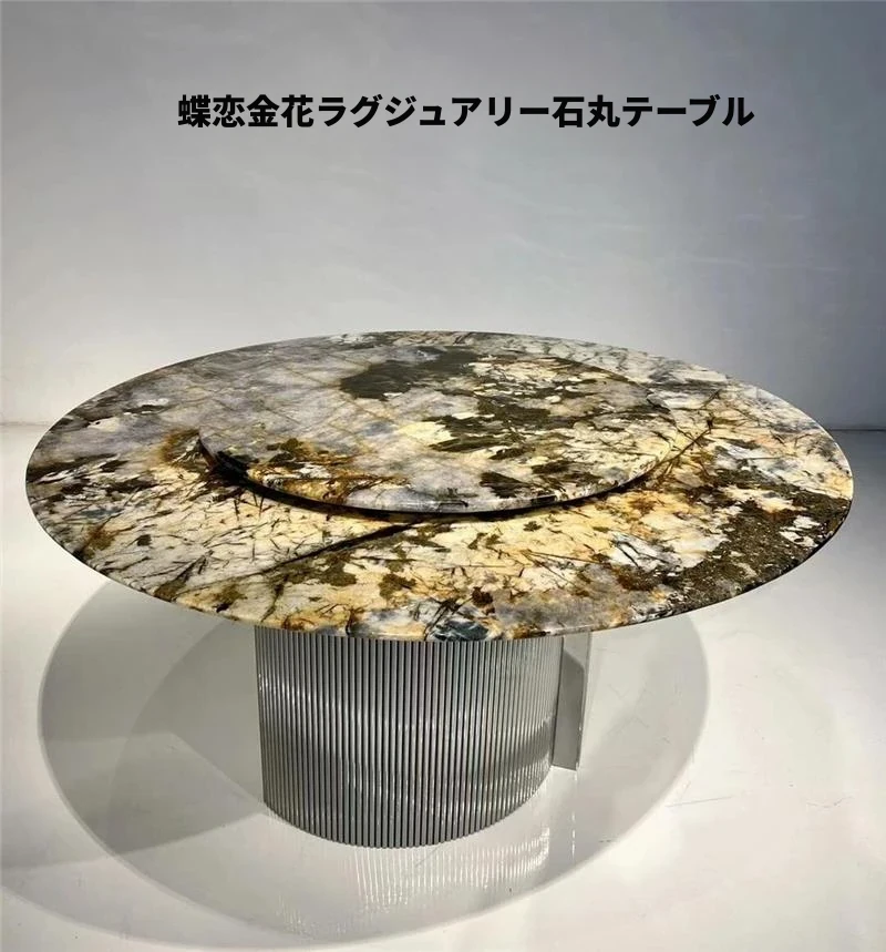 Luxury Stone Butterfly Love Gold Italian Round Dining Table Set - Elegant Natural Marble Dining Table and Chair Combo for Spacious Modern Homes and Clubs