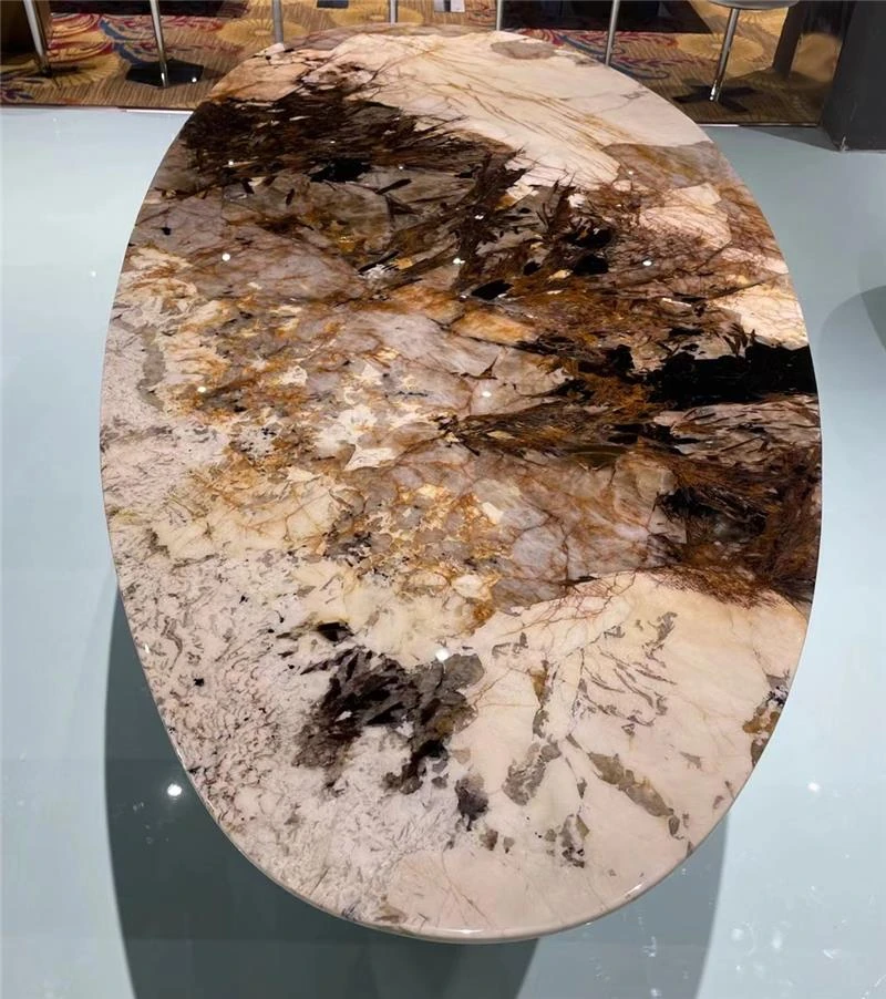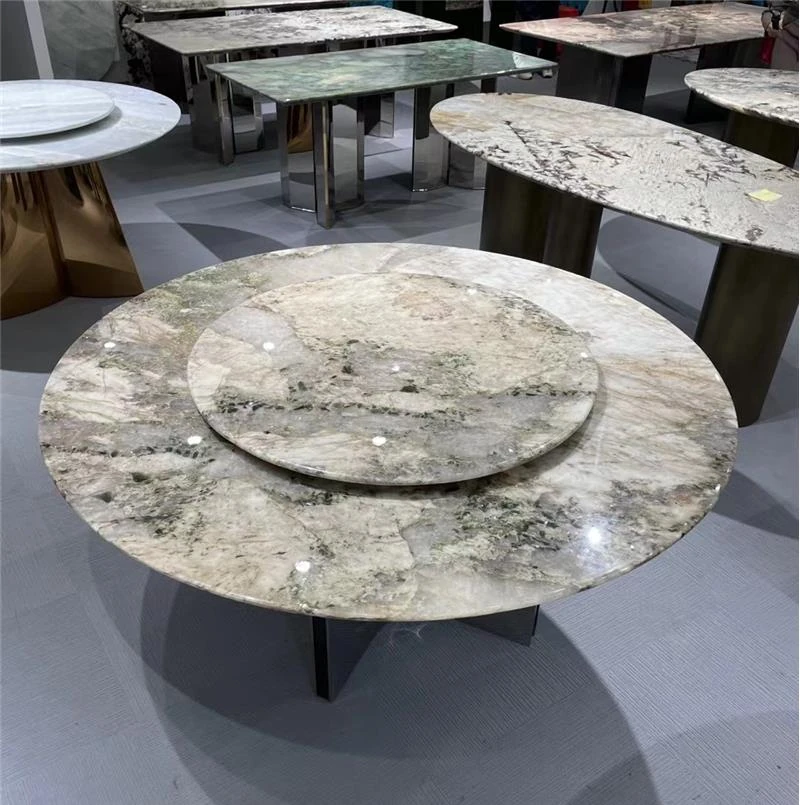 高級感溢れる天然大理石製ラウンドダイニングテーブル - 豪華な平面デザイン、イタリアンスタイルで、ビラや広い住居に最適!あなたの生活空間を格上げする逸品。