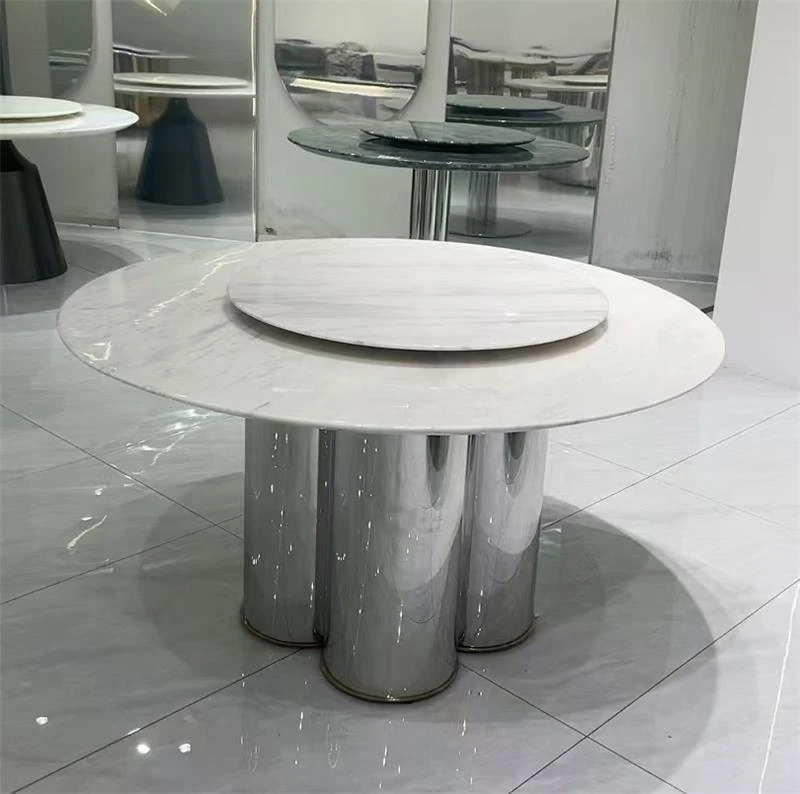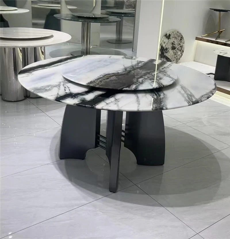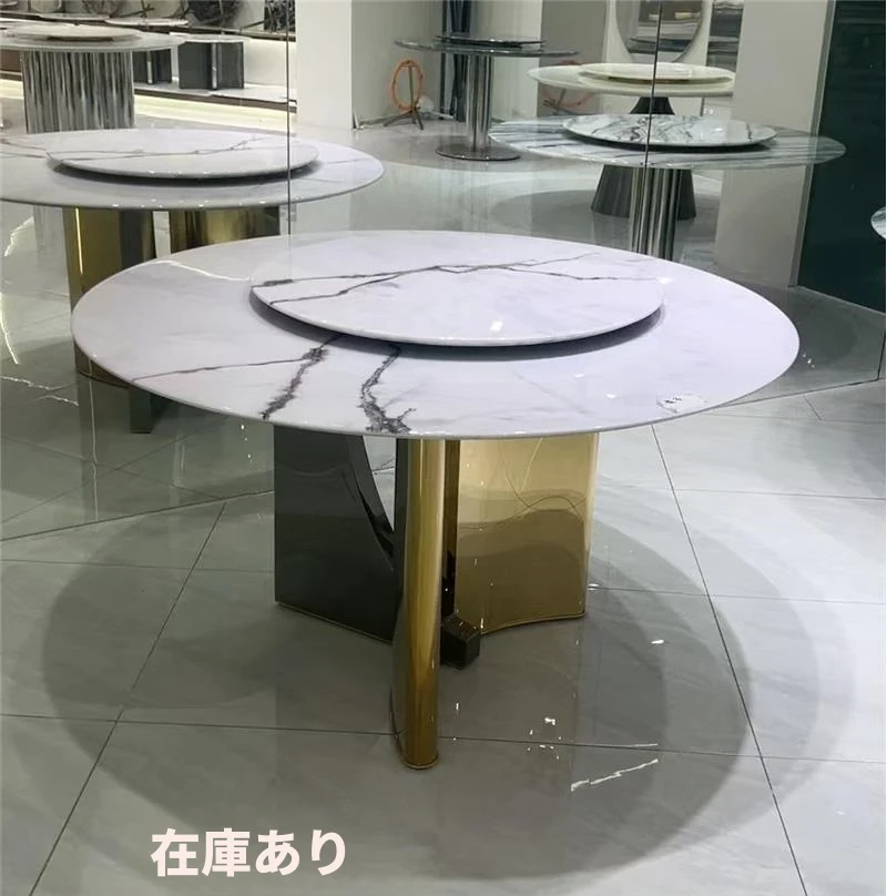 ラグジュアリー天然大理石製サークルダイニングテーブル - イタリアンスタイルのハイエンドな別荘向け、ターンテーブル付きの贅沢な食卓。大空間にぴったりな上質なデザインで、特別なひとときを演出します。
