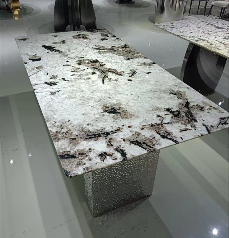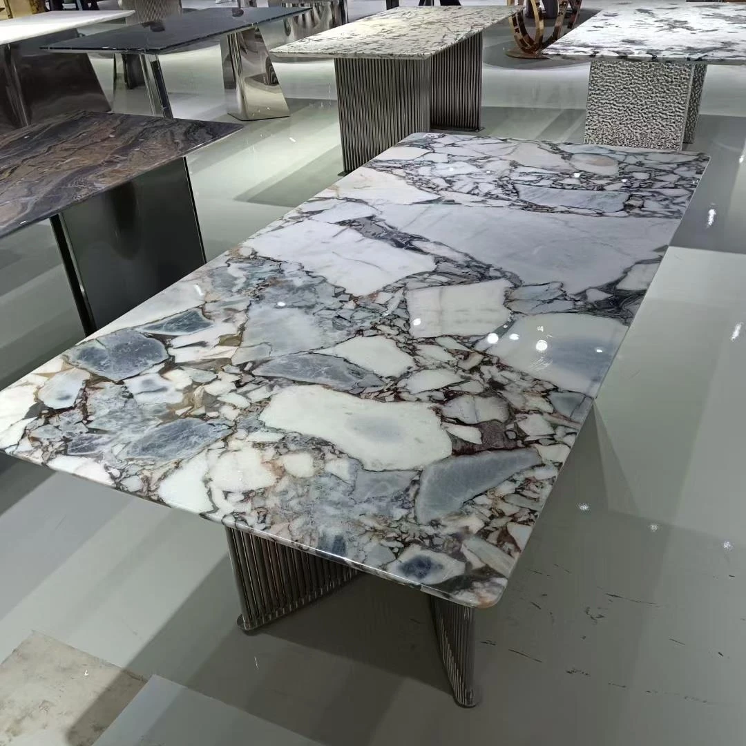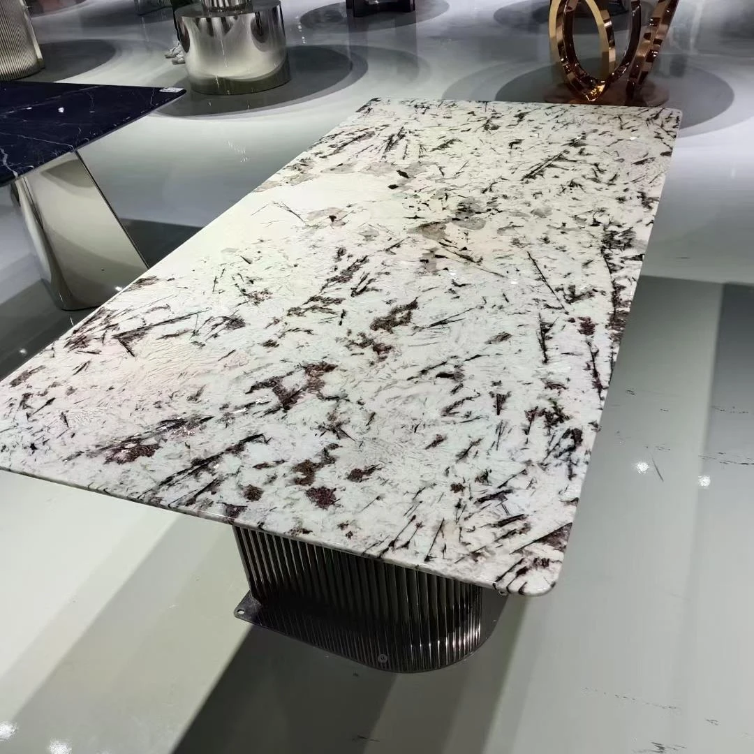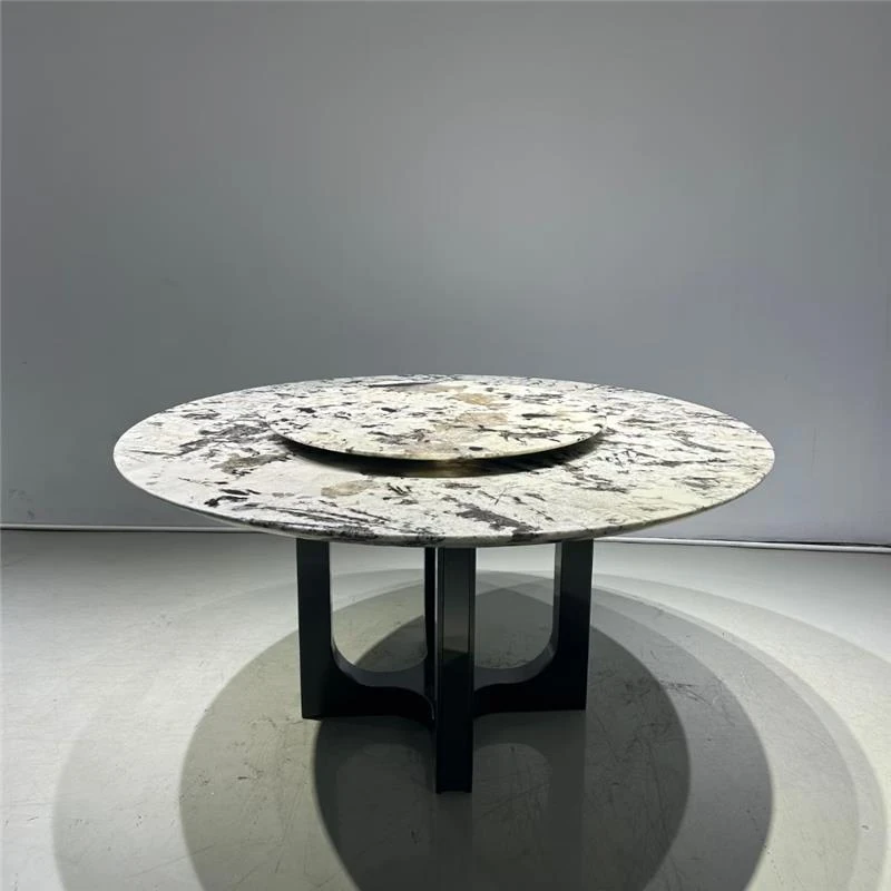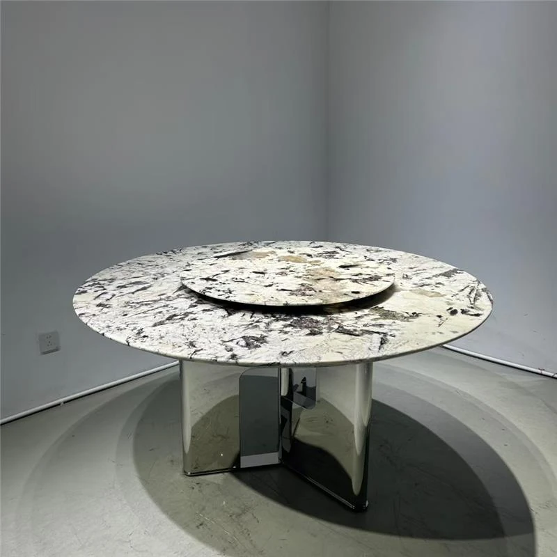 高級感溢れる天然大理石製のラウンドダイニングテーブル - イタリアンスタイルの贅沢な家用テーブル、回転式プレート付きで広々とした別荘や大サイズのリビングに最適!