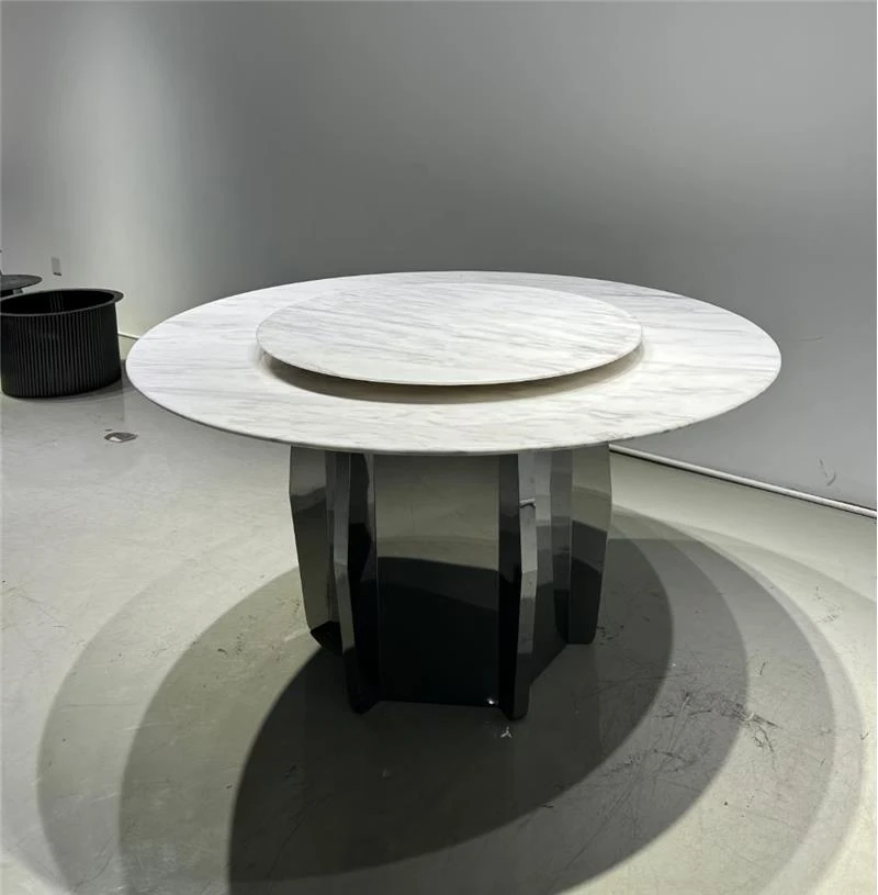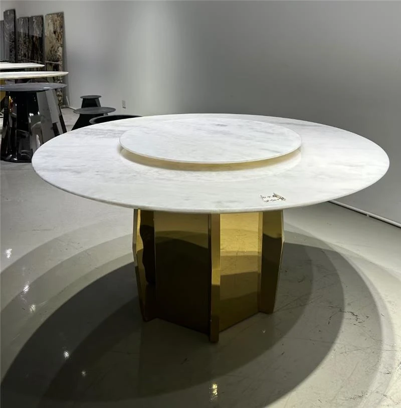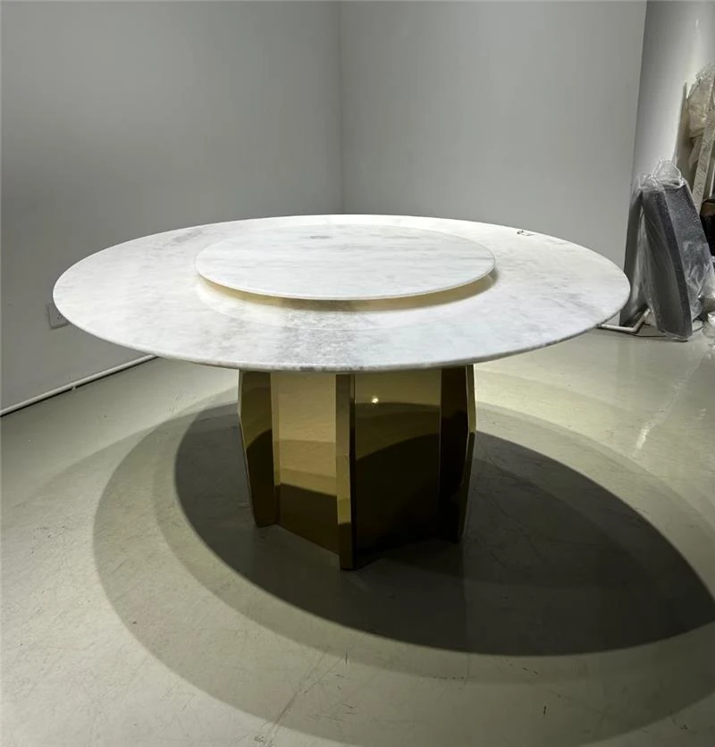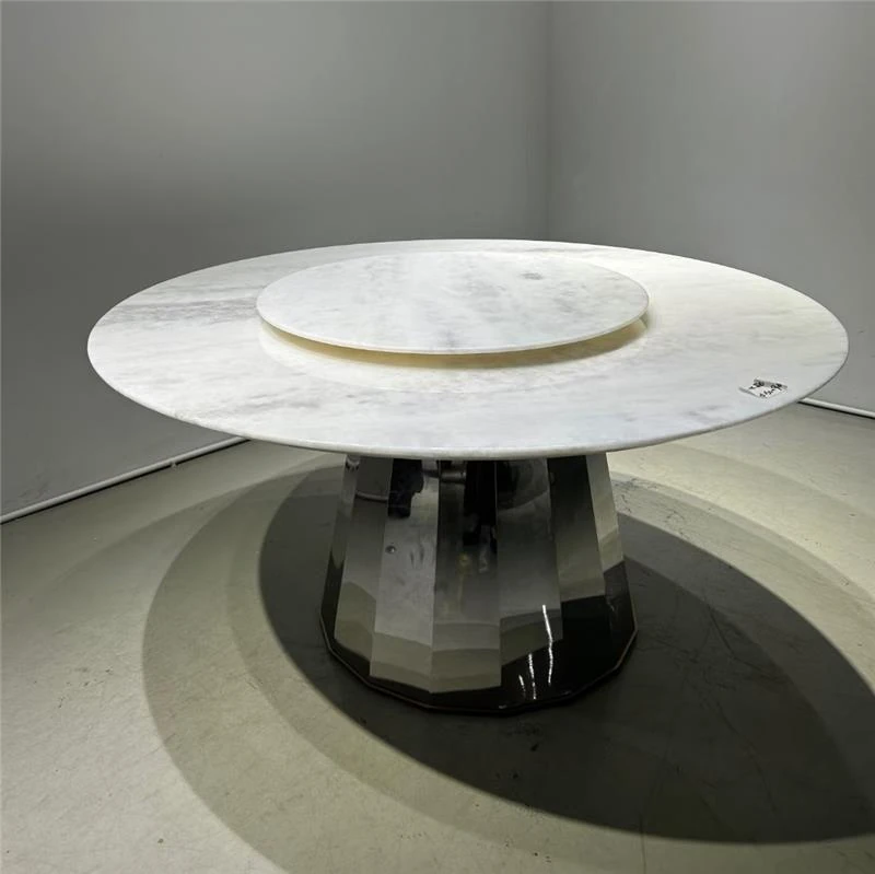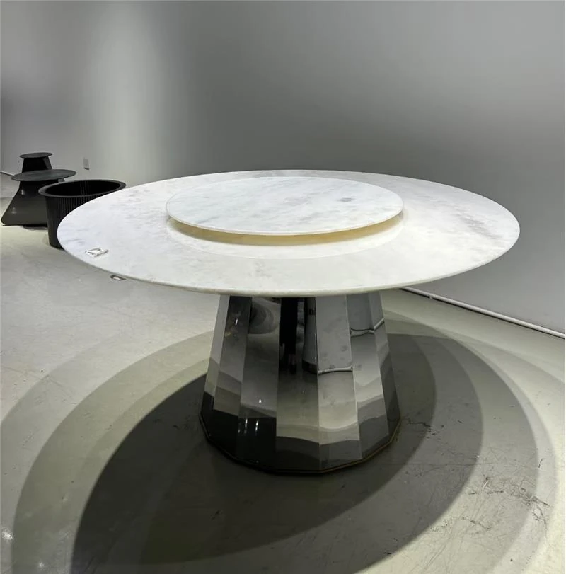 ラグジュアリー石材ホテルの天然大理石円形ダイニングテーブル - 家庭用イタリアン軽奢華スタイル、高級別荘向け大サイズ、回転式の食卓で特別なひとときを演出!