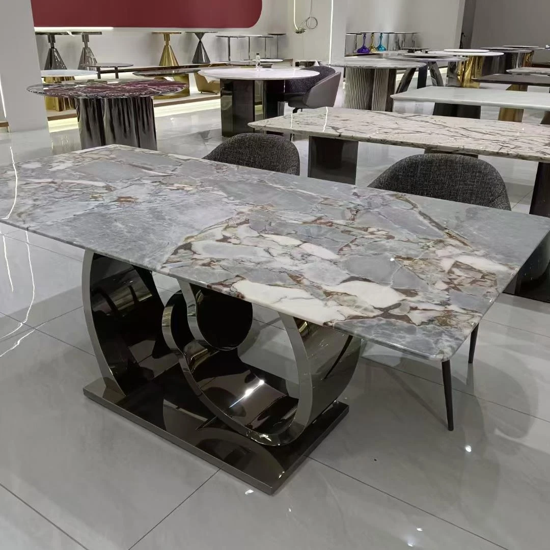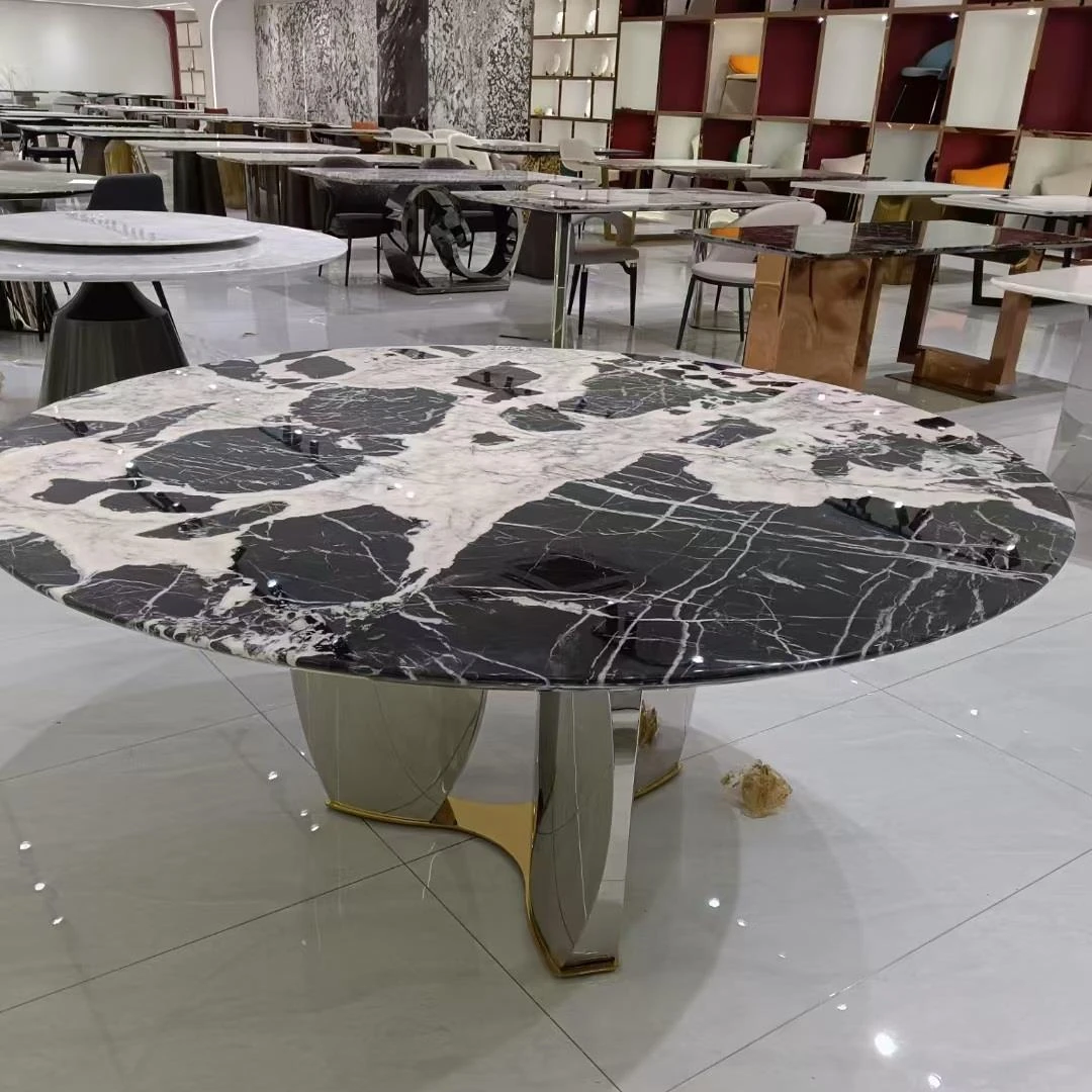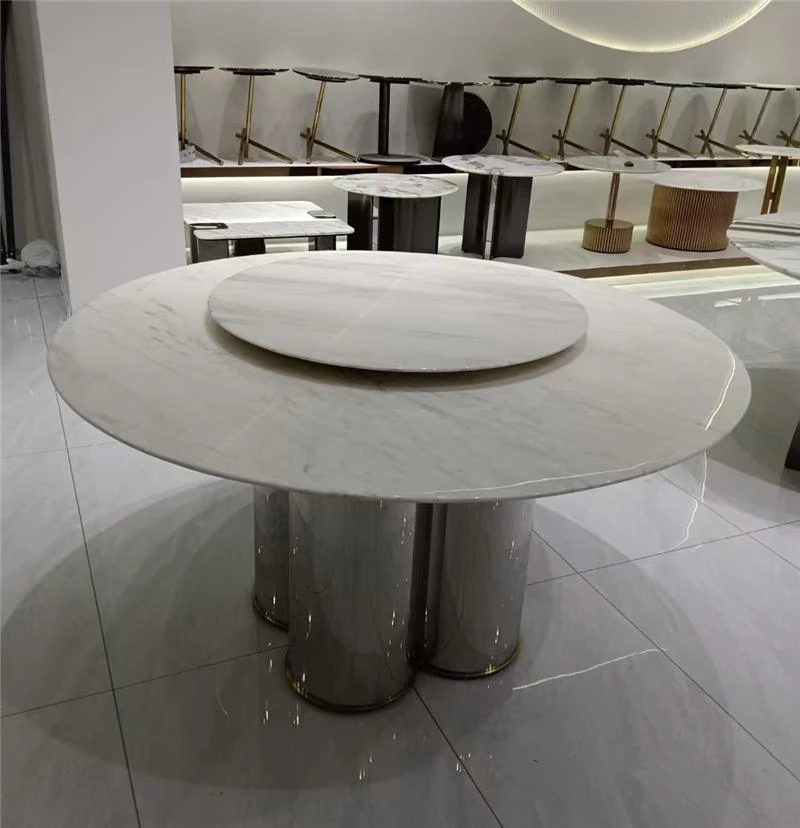 ラグジュアリーな天然大理石の円形ダイニングテーブル - 家庭用・イタリアンスタイル・高級感あふれる別荘向け・大サイズ・回転式プレート付きで、特別な食事体験を提供します。