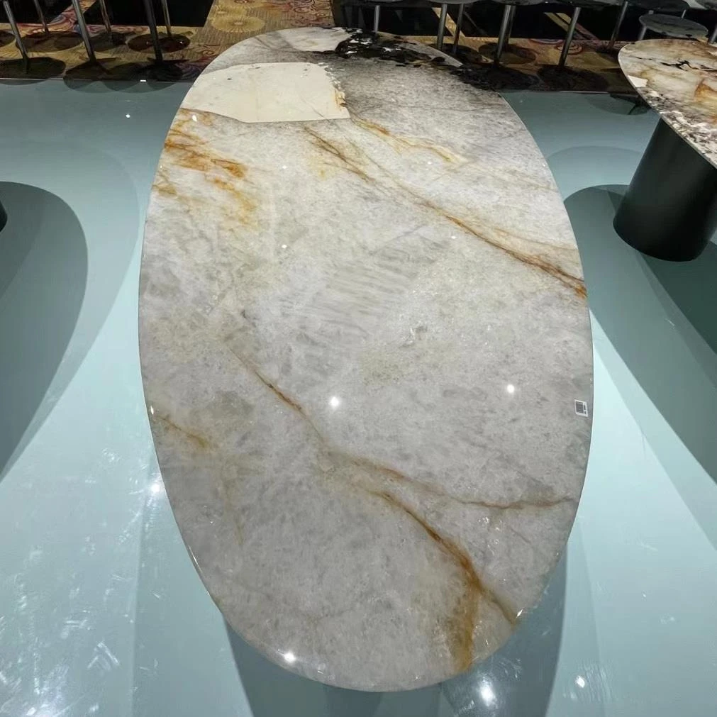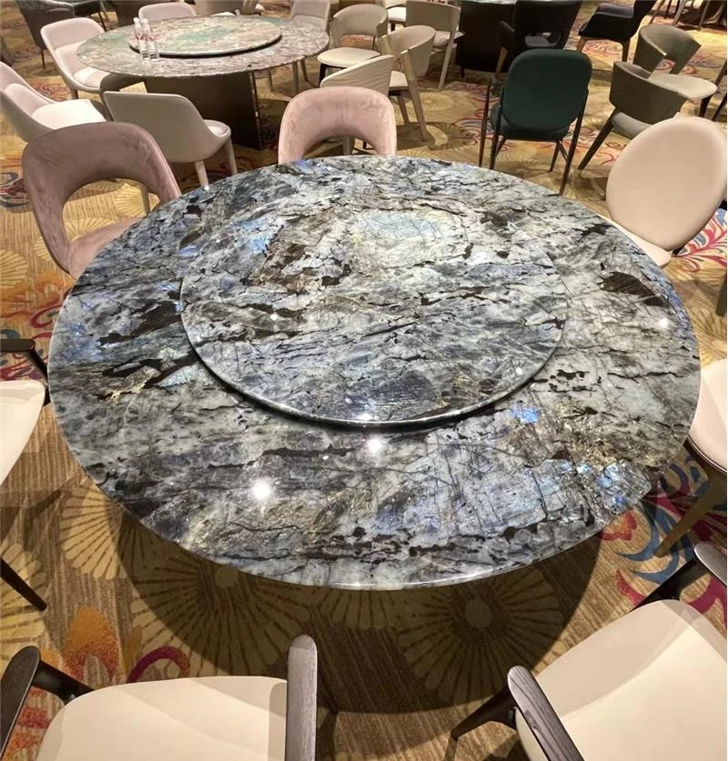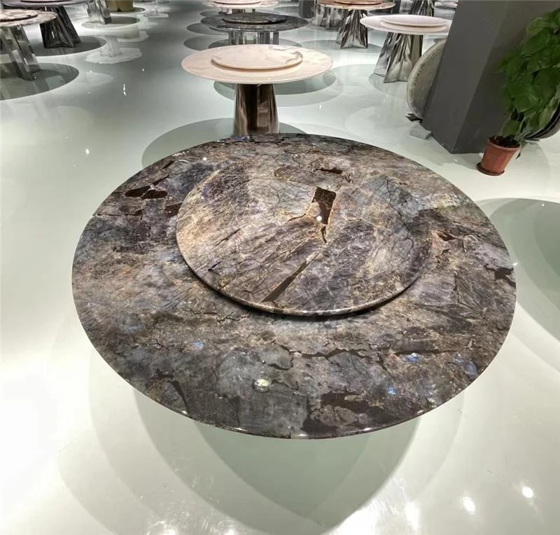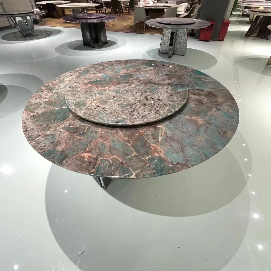 ラグジュアリー石材ホテルの天然大理石丸型ダイニングテーブル - 自宅用イタリアン軽奢高級ヴィラ向け大サイズ、回転式テーブル付き。