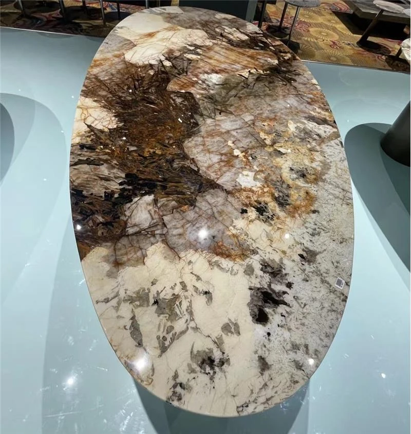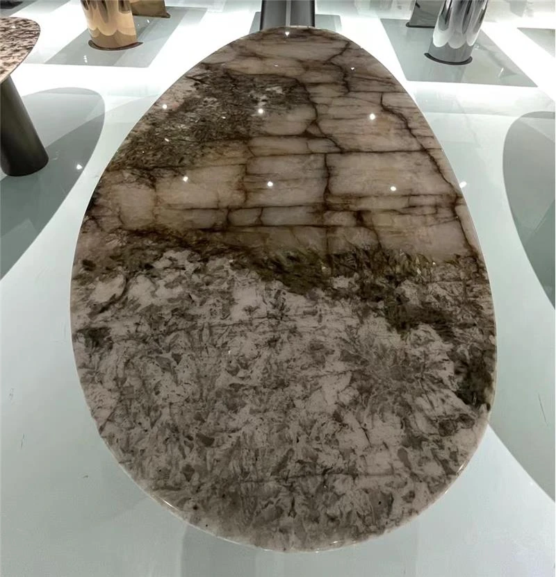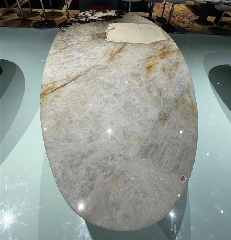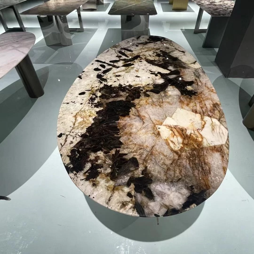 ラグジュアリー石材ホテルの天然大理石丸型ダイニングテーブル - 自宅用イタリアン軽奢高級ヴィラ向け大サイズ、回転式テーブル付き。