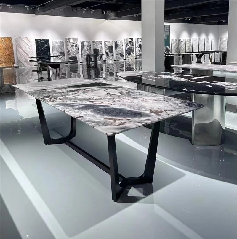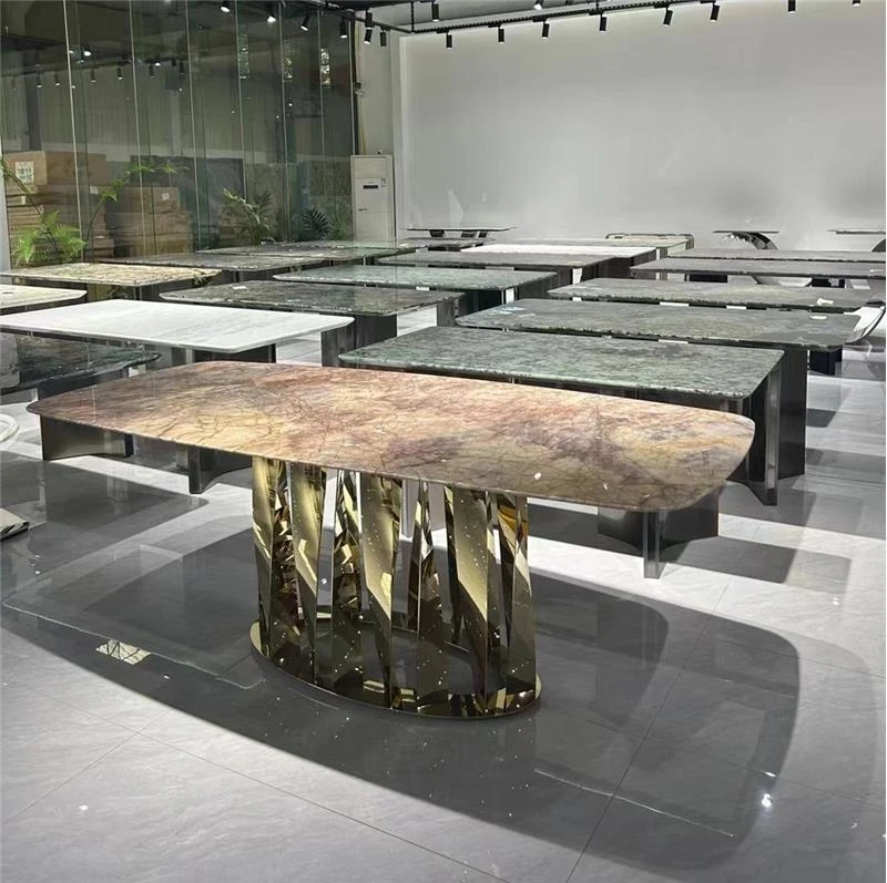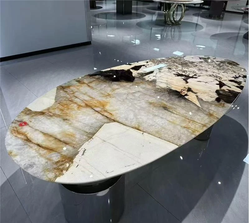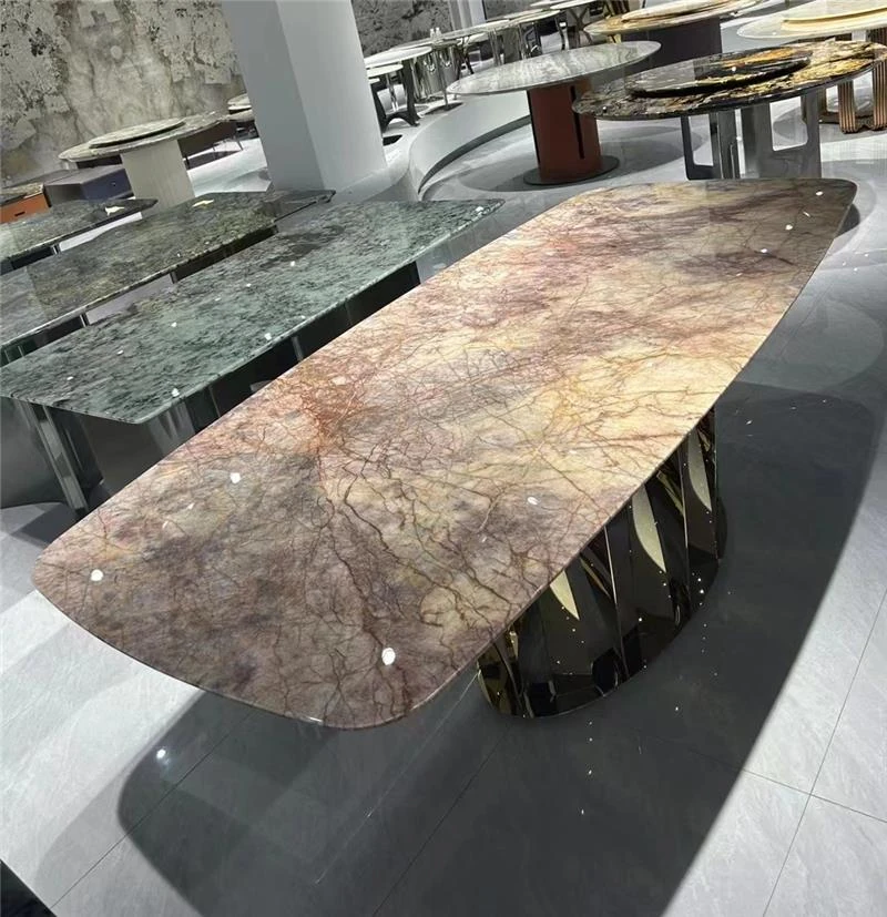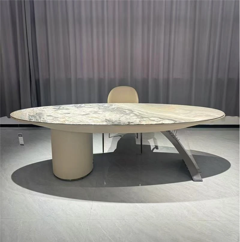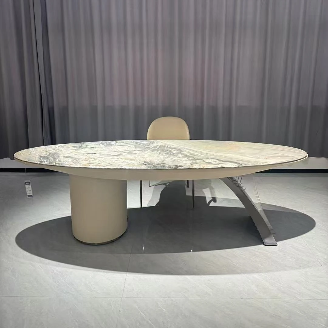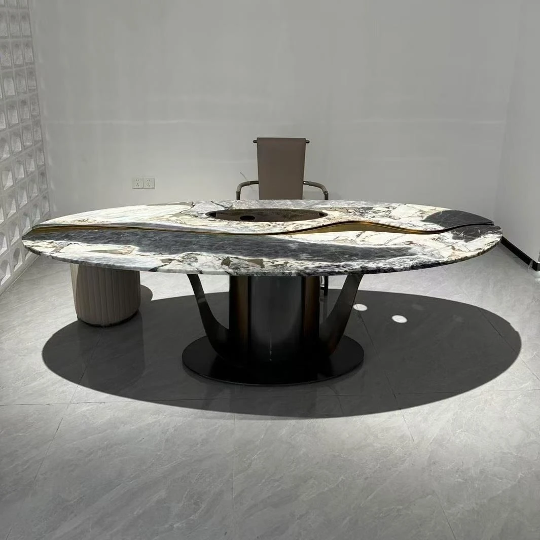 ラグジュアリーな天然大理石の円形ダイニングテーブル - 家庭用、イタリアンスタイルの上質な高級ヴィラ向け、大型リビングに最適な回転式テーブル。贅沢な食事体験をお楽しみください!