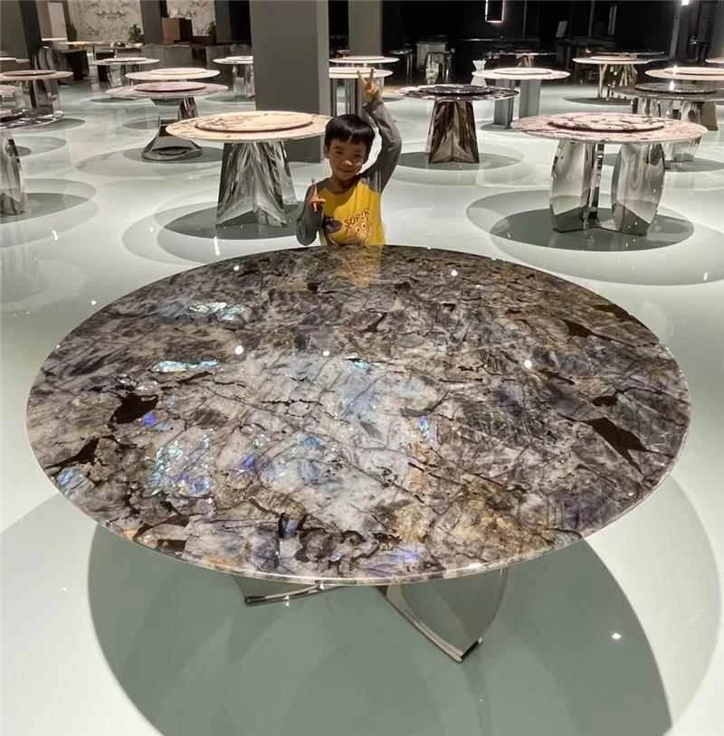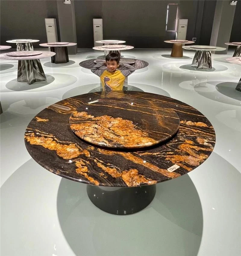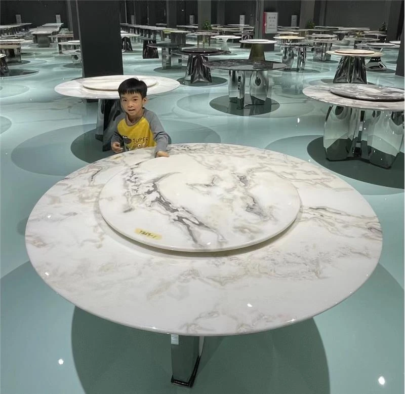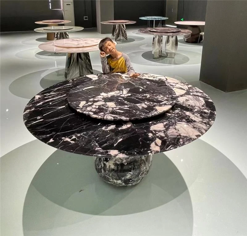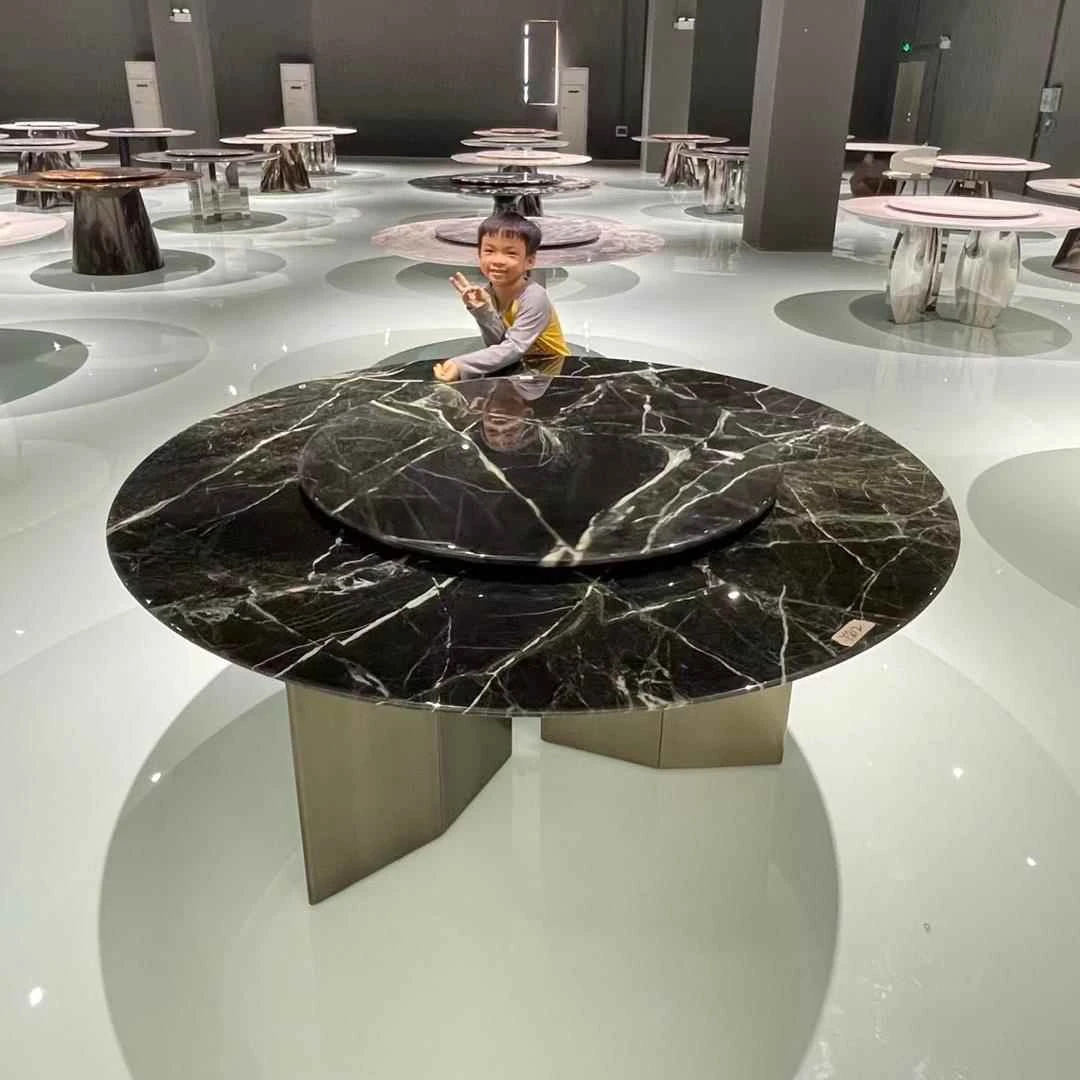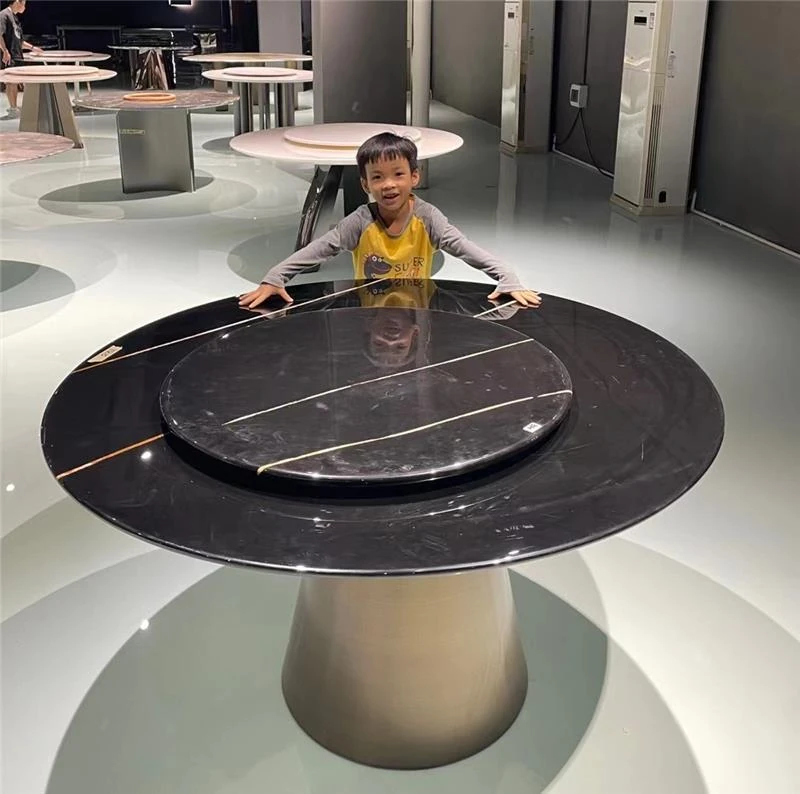 ラグジュアリーな天然大理石製サークルダイニングテーブル - 家庭用のイタリアンスタイル、軽やかで高級感溢れるデザイン。大邸宅にぴったりの回転式ダイニングテーブルで、特別な食事の時間を演出します!