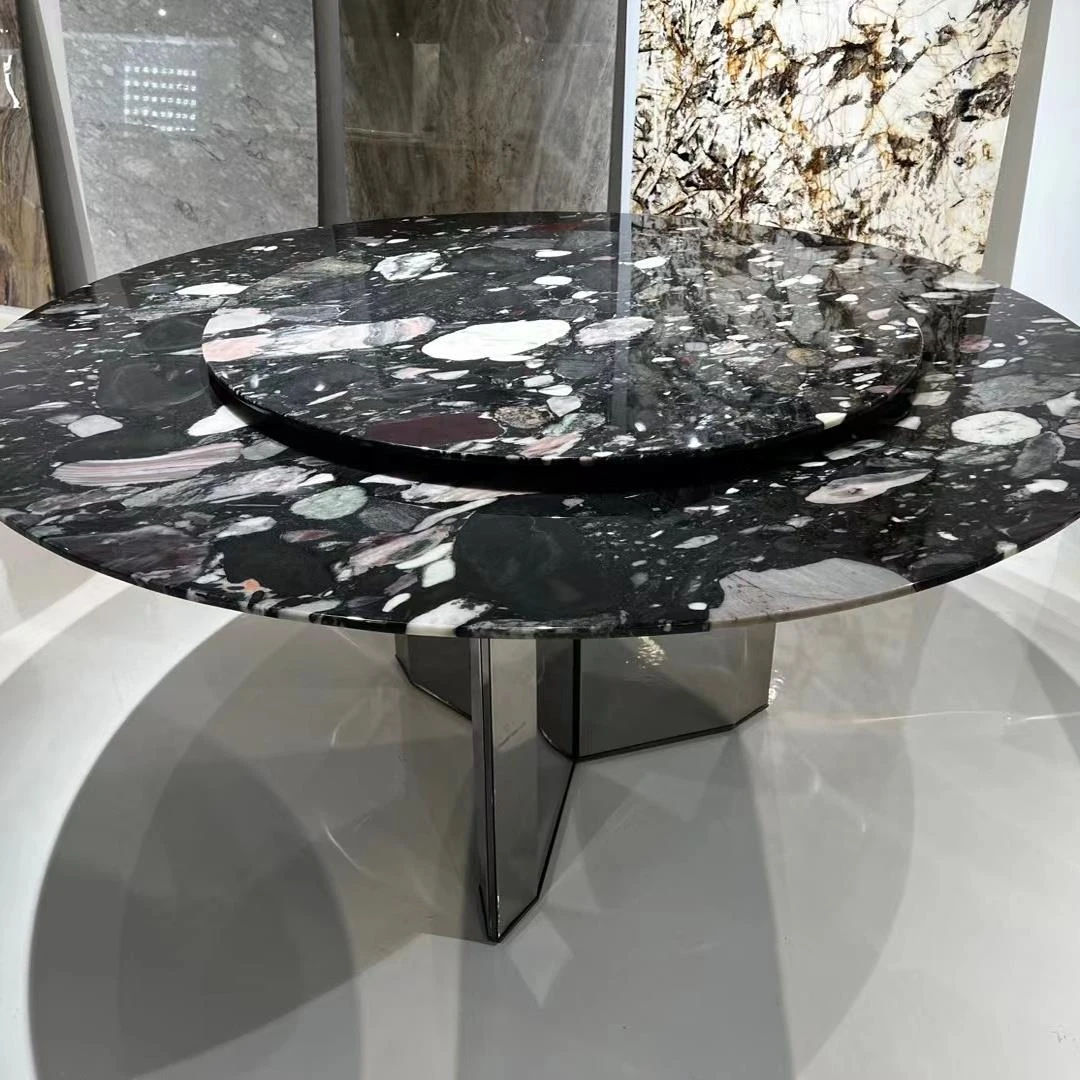 Modern Italian Luxury Marble Dining Table and Chair Set - Elegant Rectangular Design with Rotating Plate for a High-End Dining Experience in Hotels