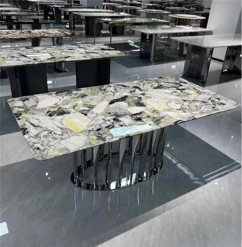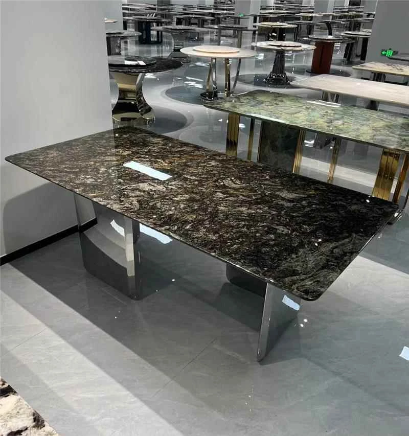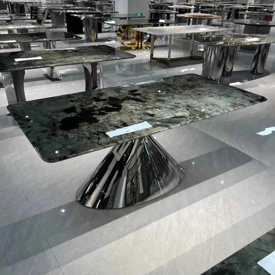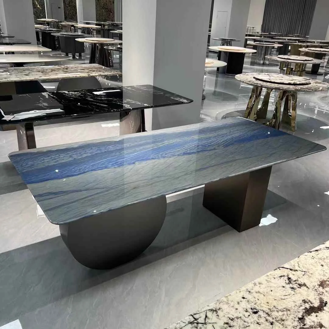 洗練されたイタリアンスタイルの大理石ダイニングテーブル&椅子セット - モダンでシンプルな高級感溢れる長方形テーブル、回転盤付き!あなたのダイニング空間を格上げします。