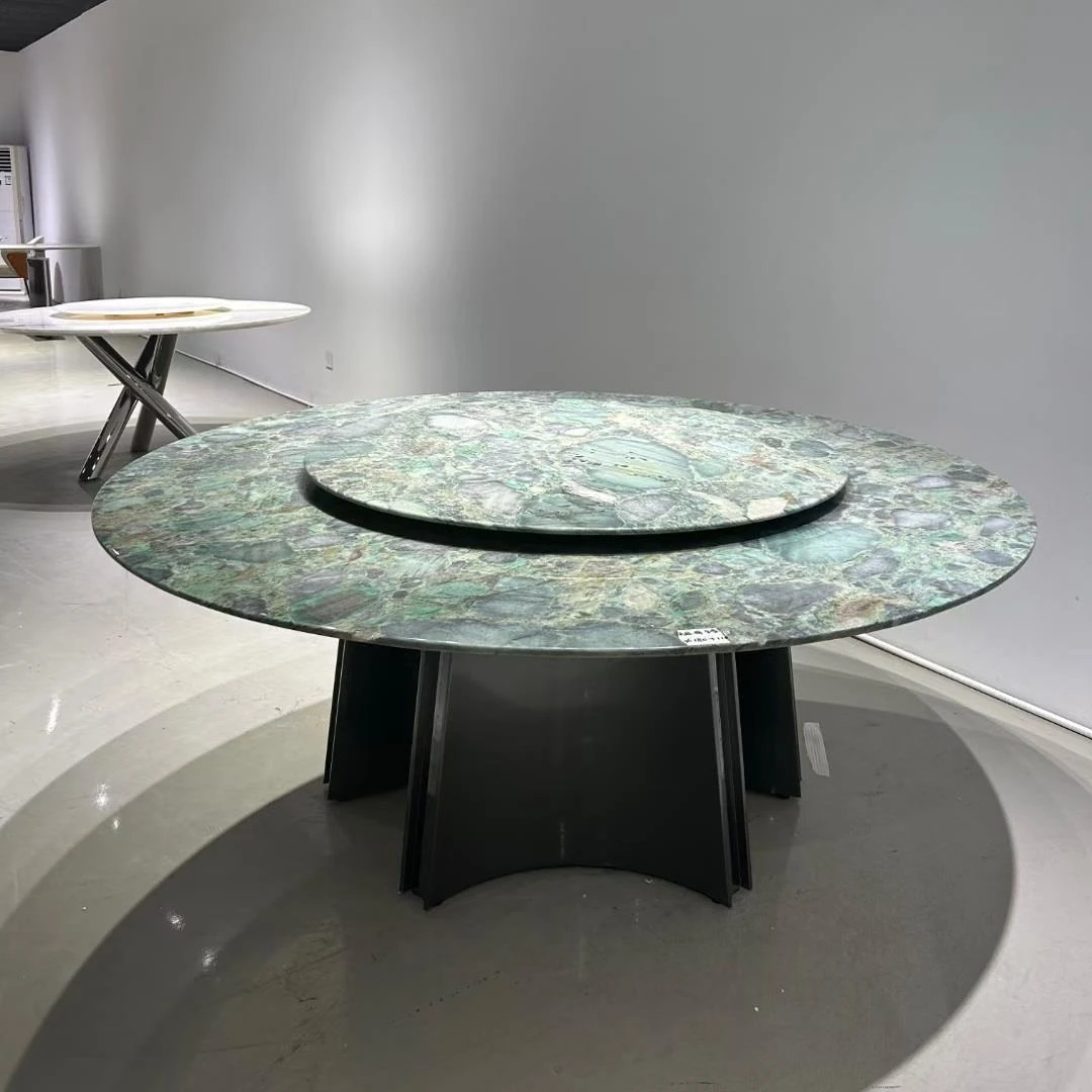 高級感溢れるイタリアンスタイルの大理石ダイニングテーブルセット!モダンでシンプルなデザイン、回転式の円形テーブルが特徴。家族や友人との特別なひとときを演出します。