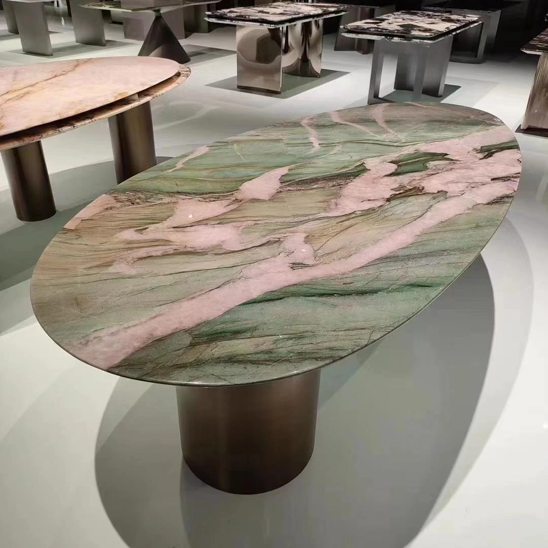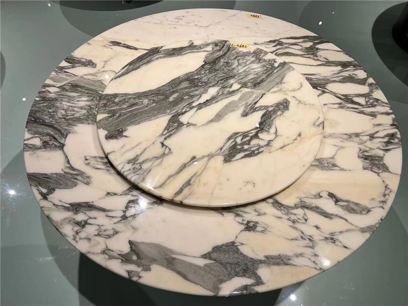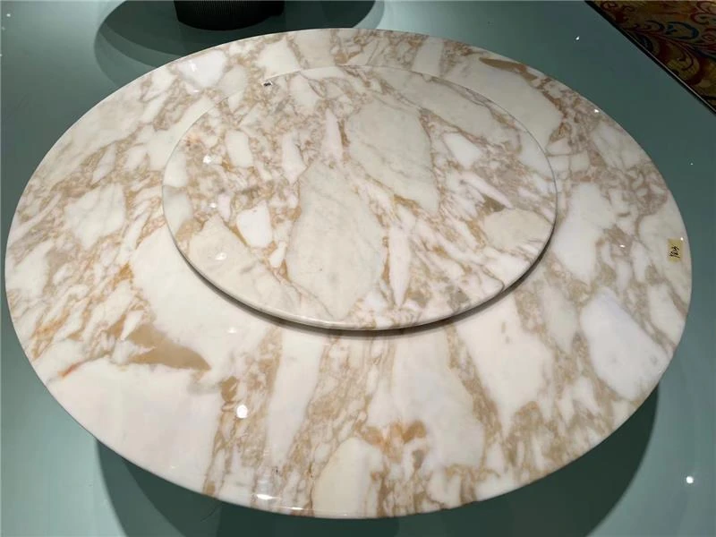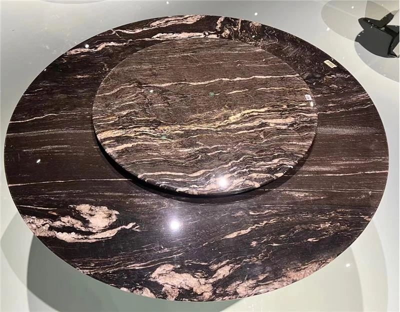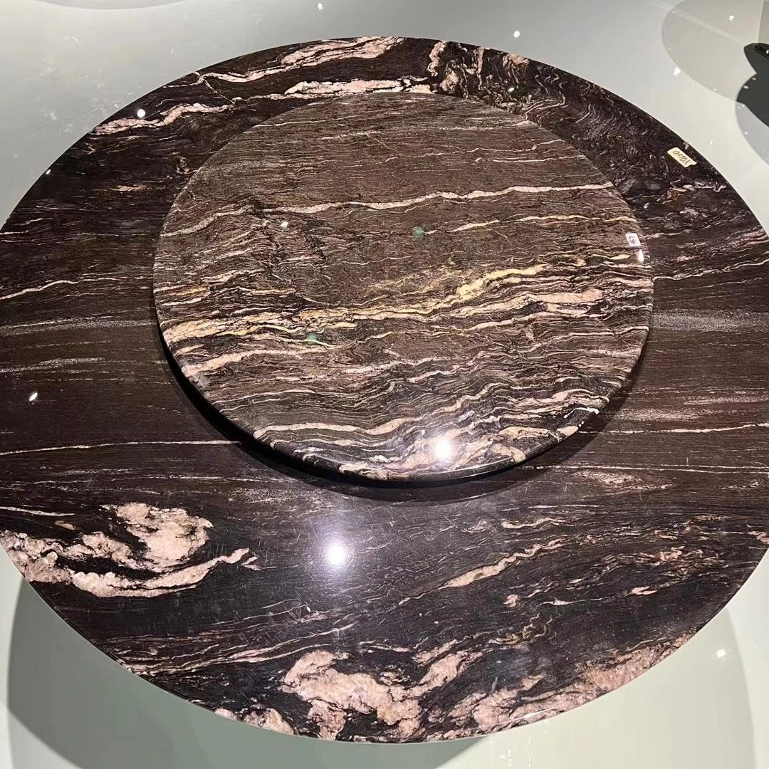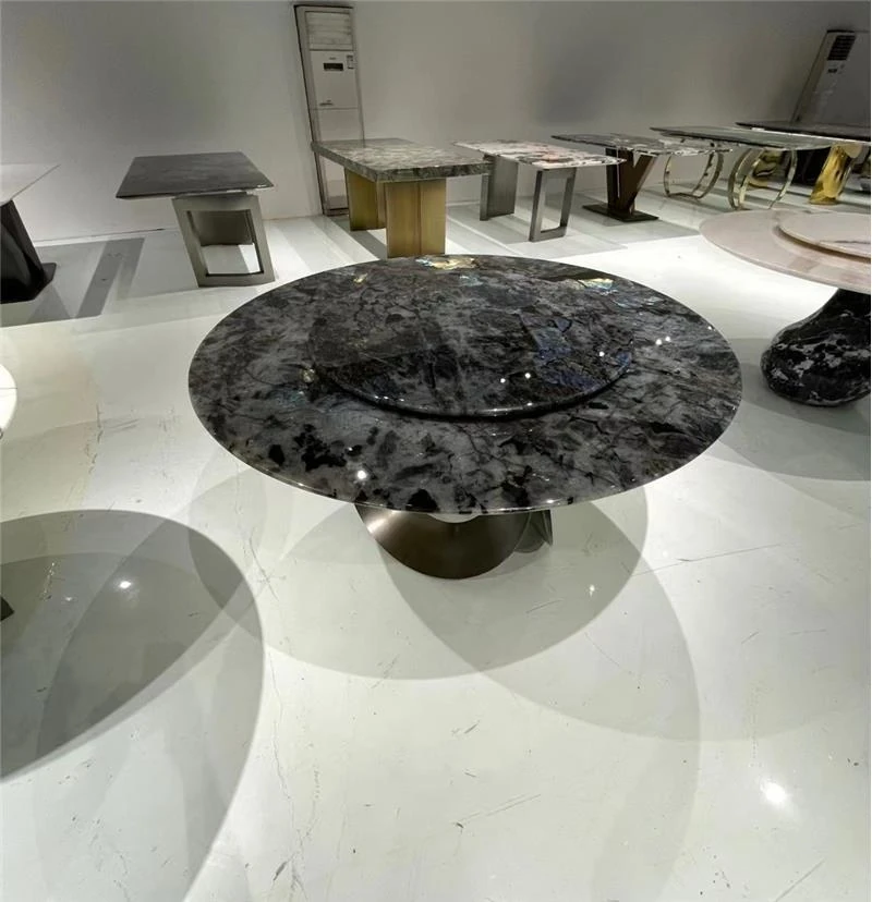 ホテル用イタリアンラグジュアリー大理石ダイニングテーブルセット - モダンでシンプル、高級感あふれる円形テーブルと回転プレート付き。家庭用に最適なスタイリッシュなデザインで、食卓を華やかに演出します。