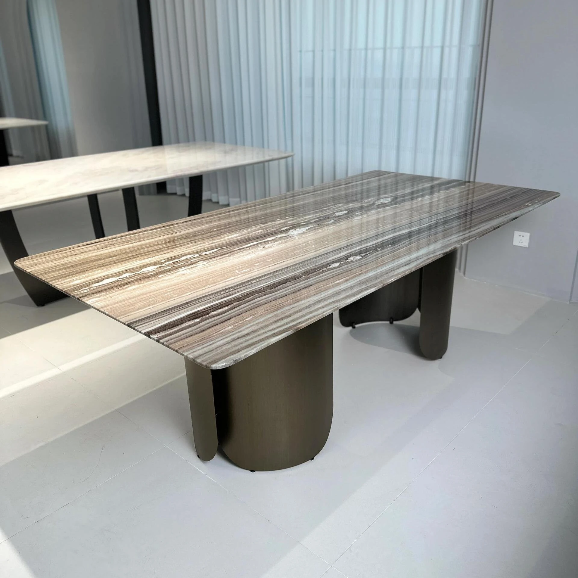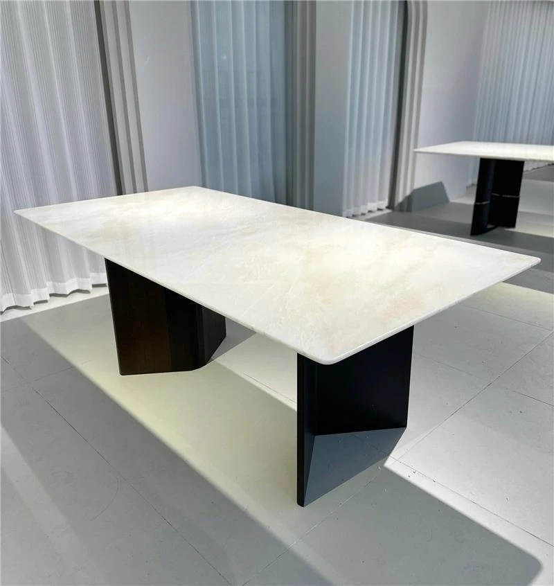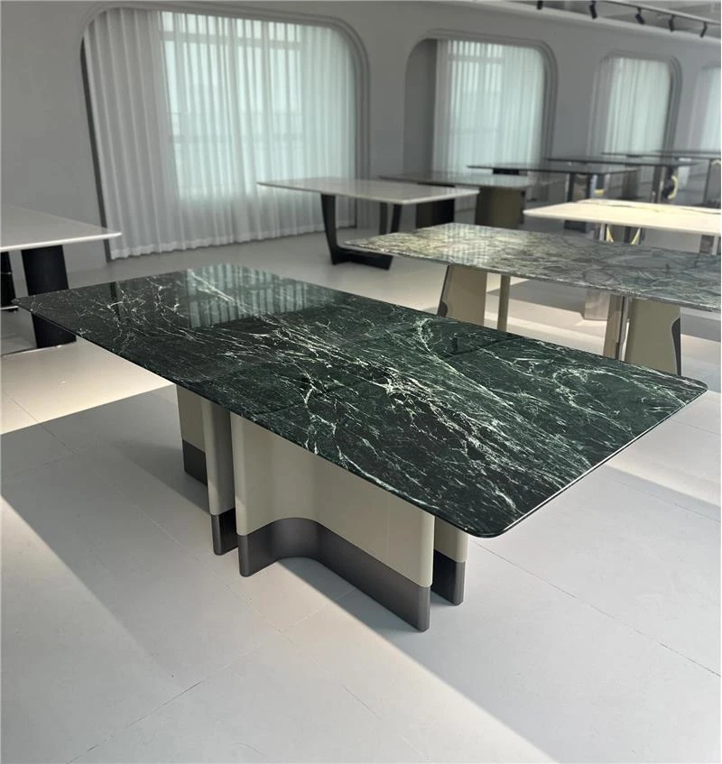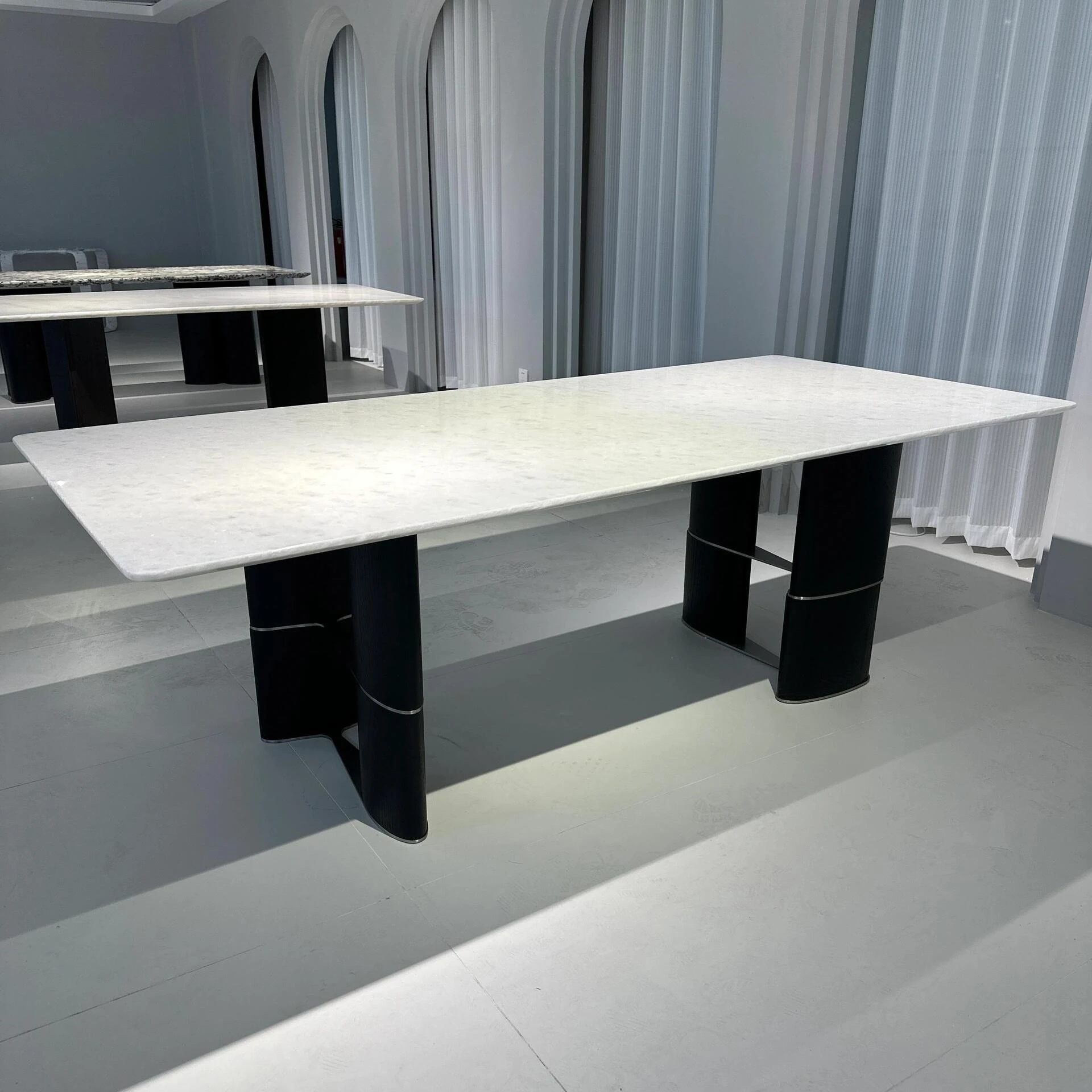 イタリアンスタイルのラグジュアリー大理石ダイニングテーブルセット - モダンでシンプルなデザイン、高級感溢れる長方形テーブルに回転プレート付き!あなたの食卓を特別な空間に演出します。