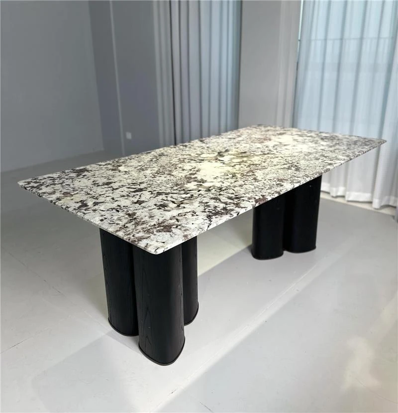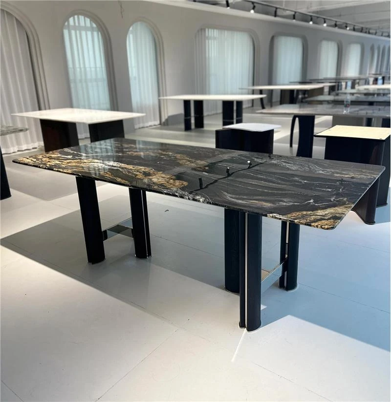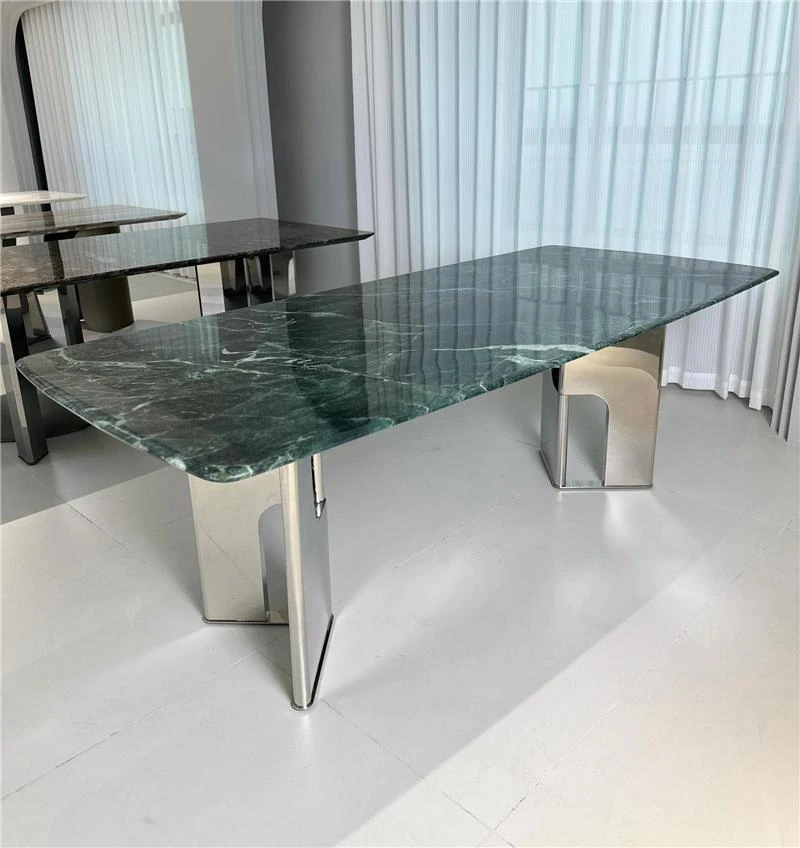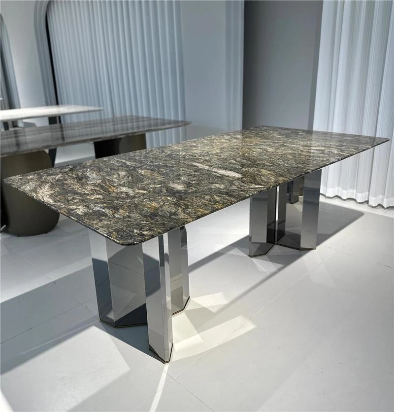イタリアンスタイルのラグジュアリー大理石ダイニングテーブルセット - モダンでシンプルなデザイン、高級感溢れる長方形テーブルに回転プレート付き!あなたの食卓を特別な空間に演出します。