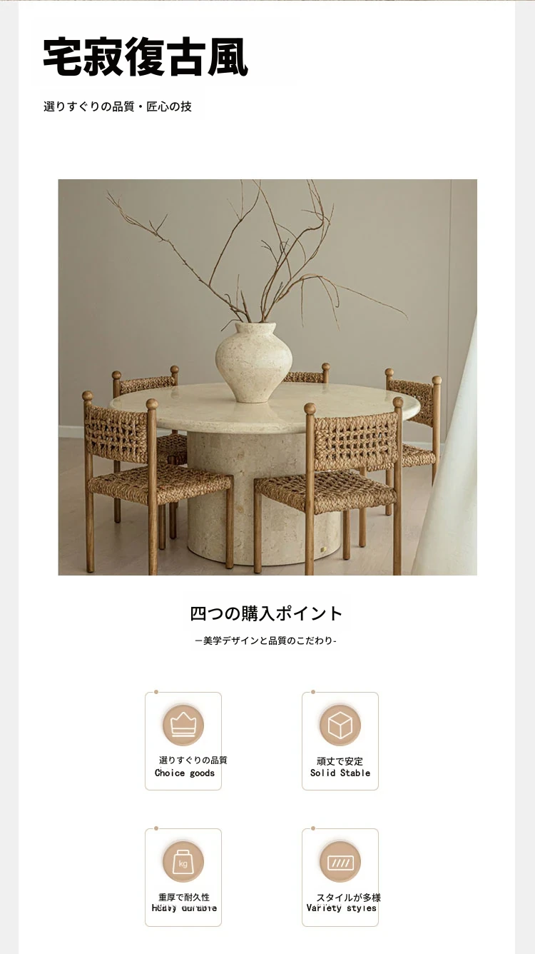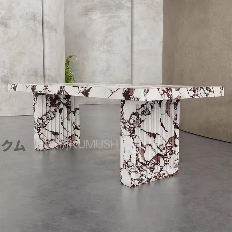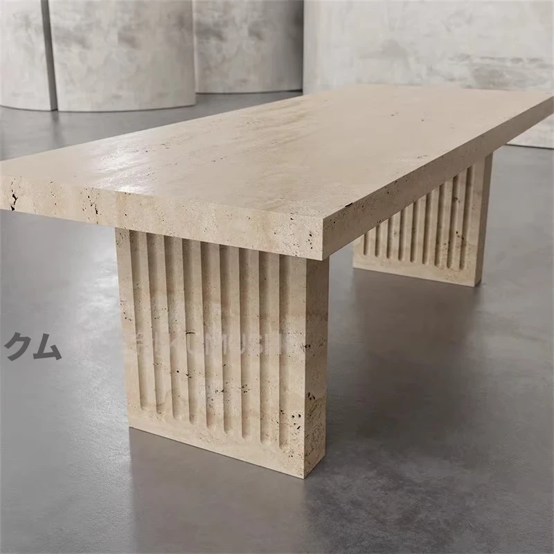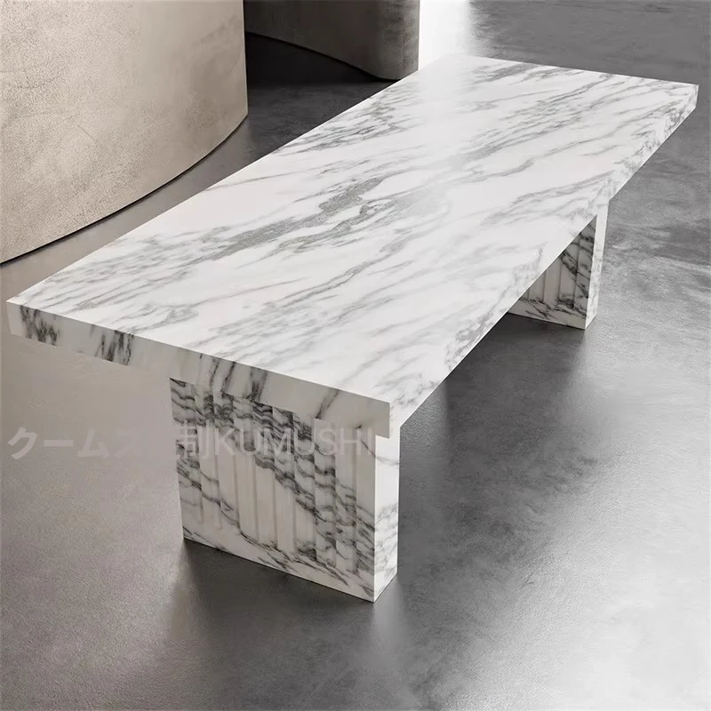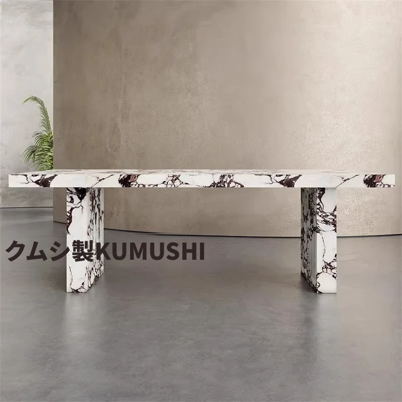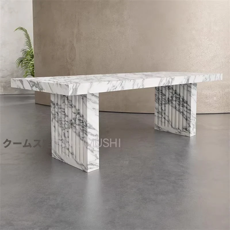 天然大理石のモダンでシンプルな長方形ダイニングテーブル&チェアセット - 高級感溢れる家用食卓で、特別なひとときを演出!