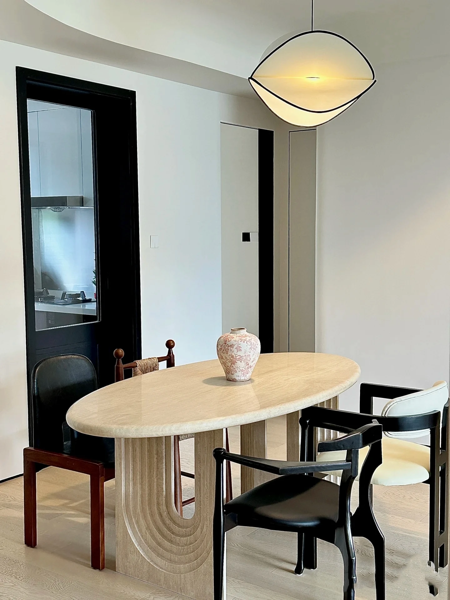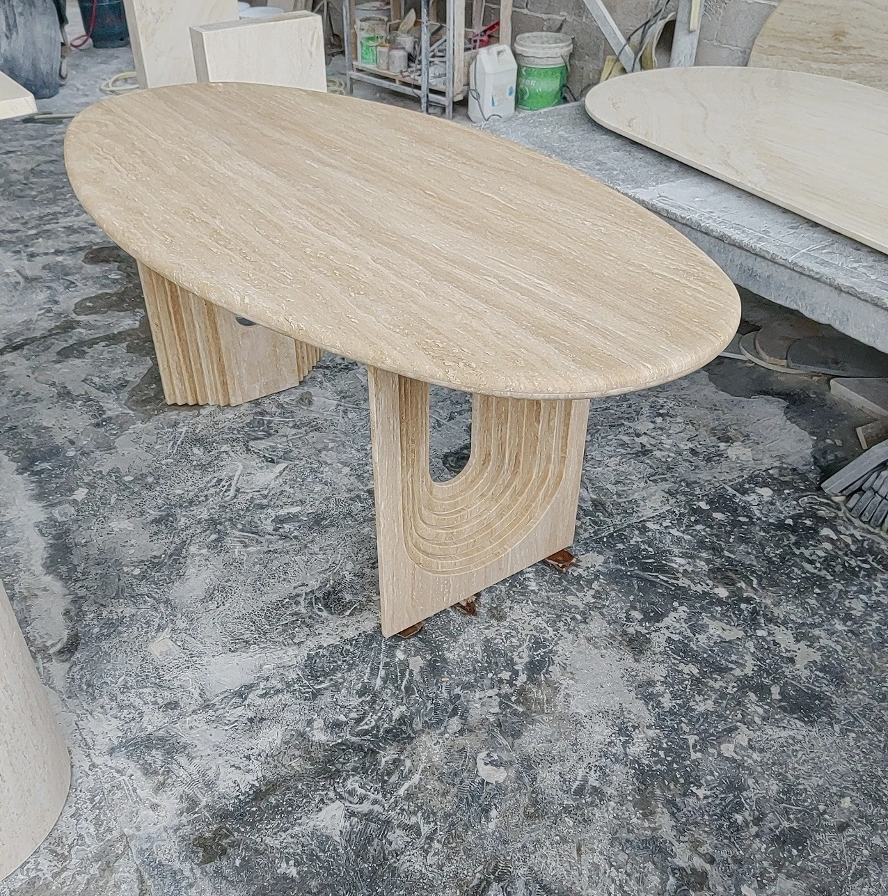 天然の超白いドーナツ型石のフレンチヴィンテージスタイルのオーバルダイニングテーブル。モダンなイタリアンデザインと自然の大理石の美しさを融合させた、洗練された食卓をあなたの空間に。