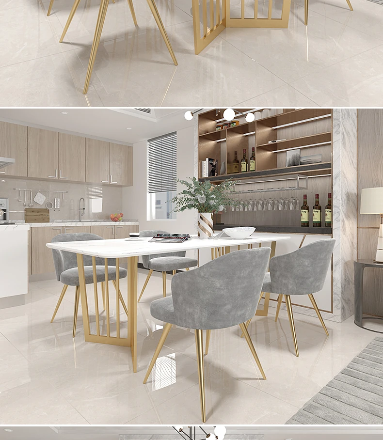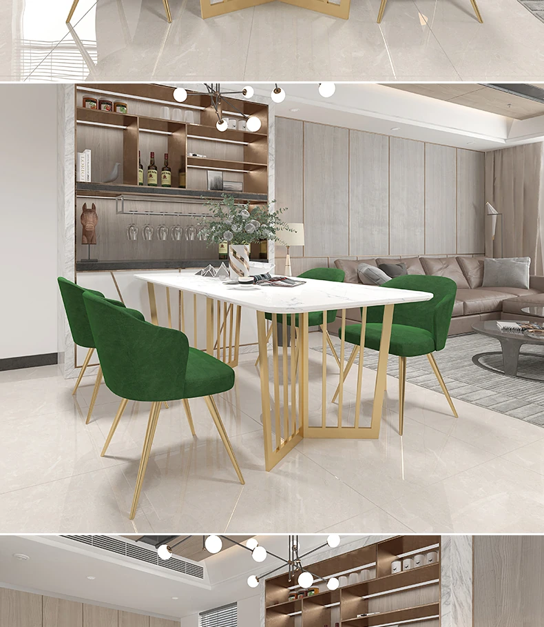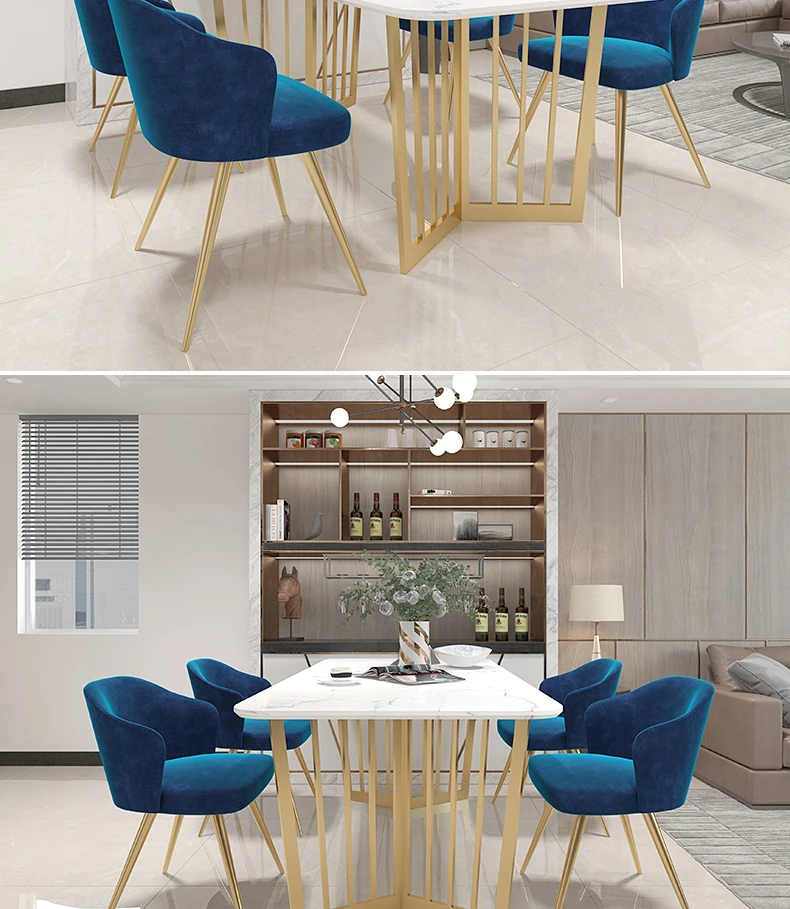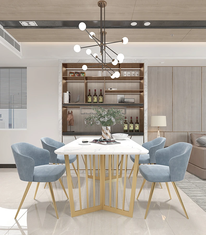 北欧風のラグジュアリー大理石ダイニングテーブルセット|小さな家にぴったりなモダンでシンプルな長方形テーブル&チェア|スタイリッシュな食卓を演出!