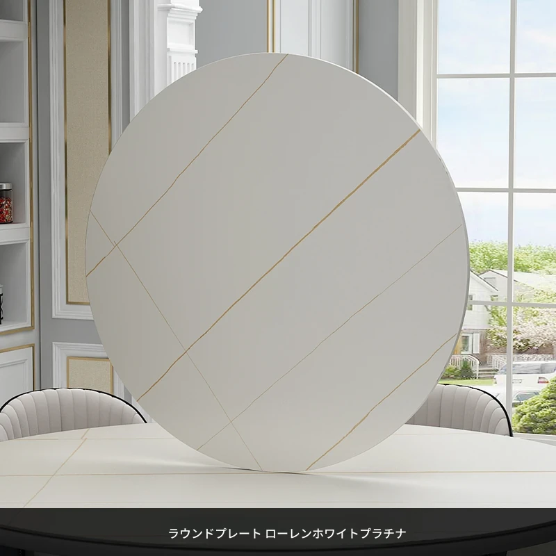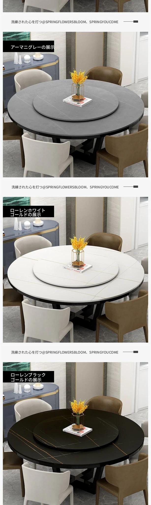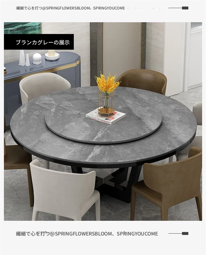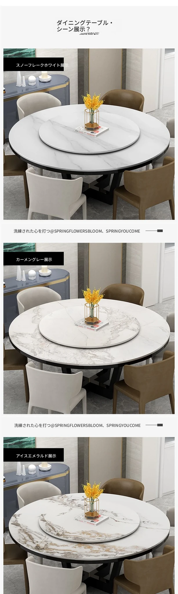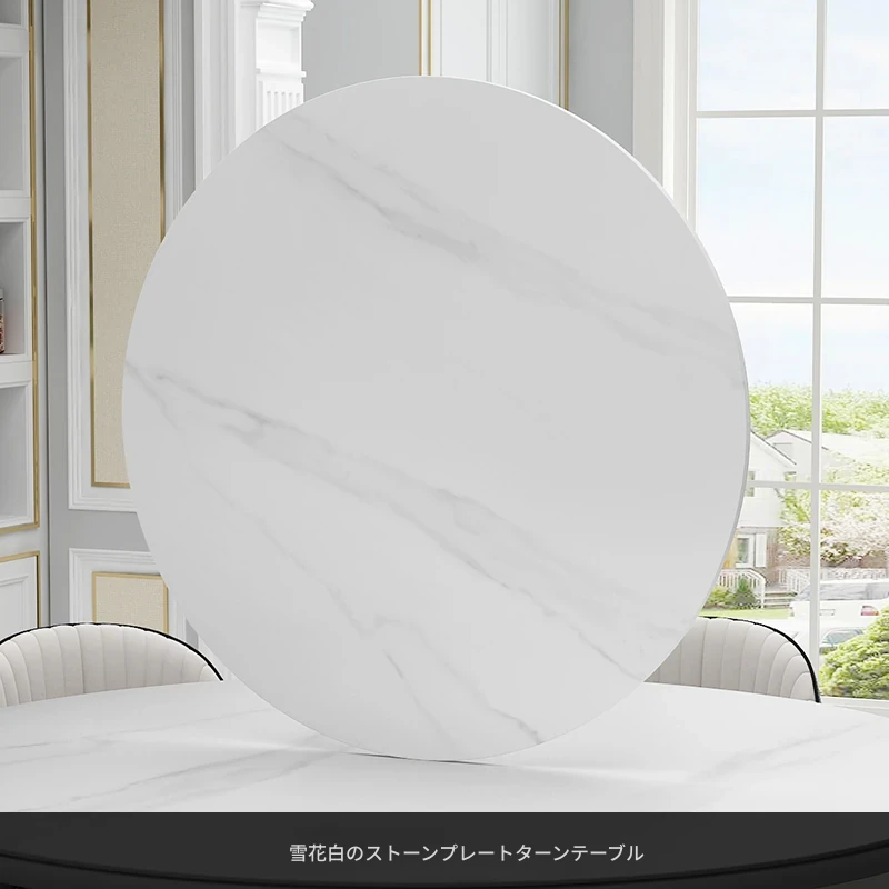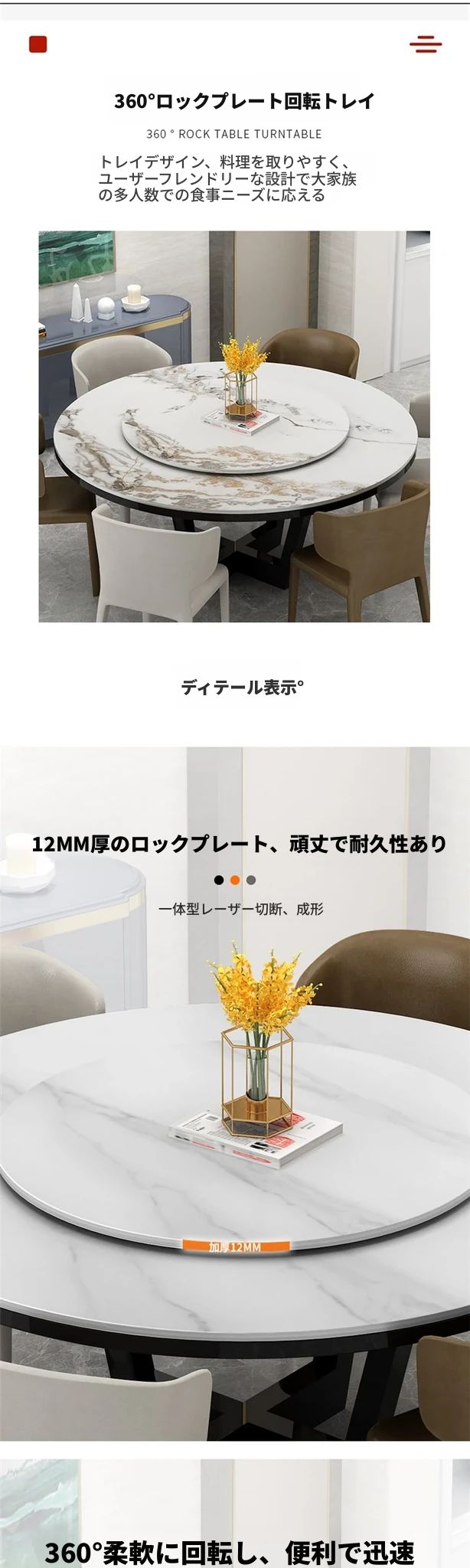 北欧スタイルのラグジュアリーな大理石製ローテーブル - 家庭用回転式円形ダイニングテーブル、強化ガラスの美しいデザインで、食事の楽しさを倍増させます。