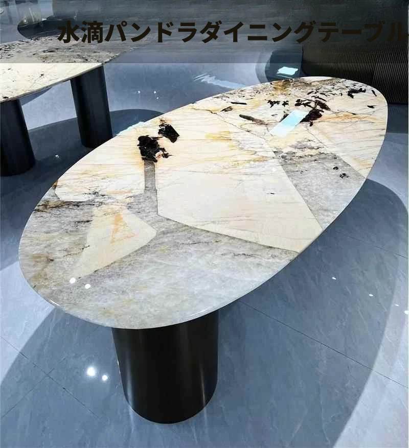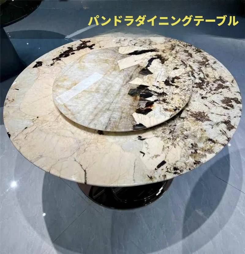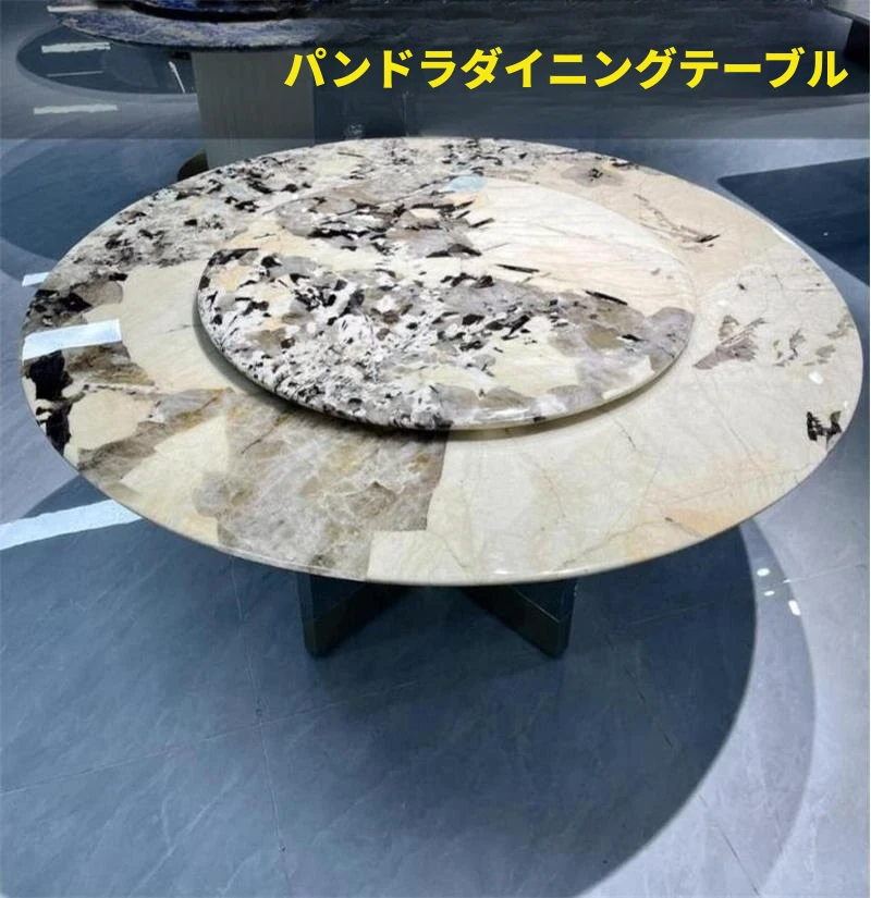 パンドラ イタリアン ラグジュアリー ダイニングテーブル&チェアセット ヴィラ用 天然大理石 エレガントなラウンドテーブル デザイナー高級仕上げ - 特別なひとときを演出する贅沢な食卓を。
